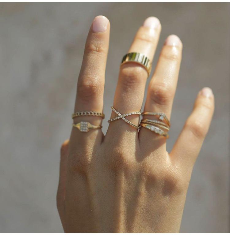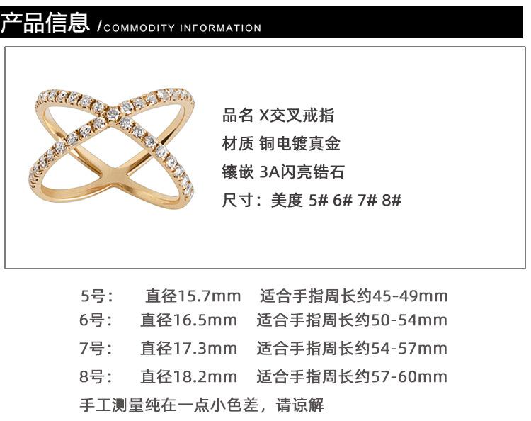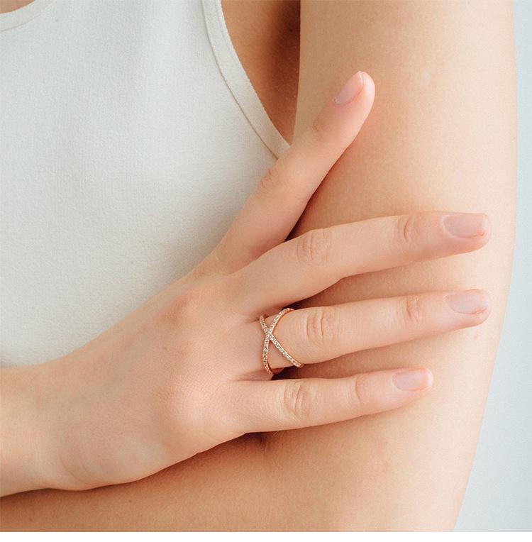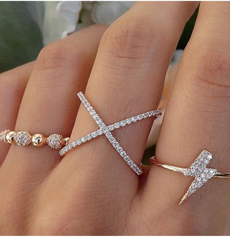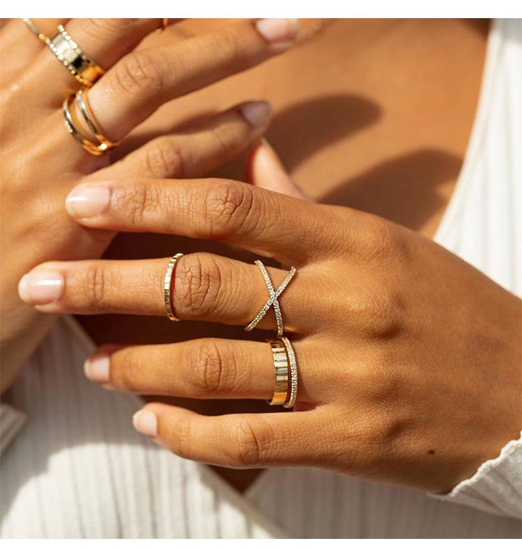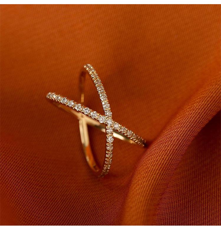 Joyería transfronteriza Anillo de cruz geométrica europea y americana Anillo de dedo índice de moda simple con incrustaciones de circonita para mujer Accesorios de pulsera
