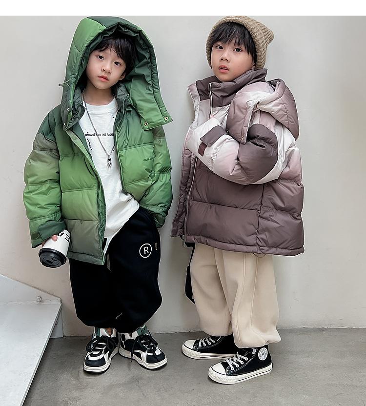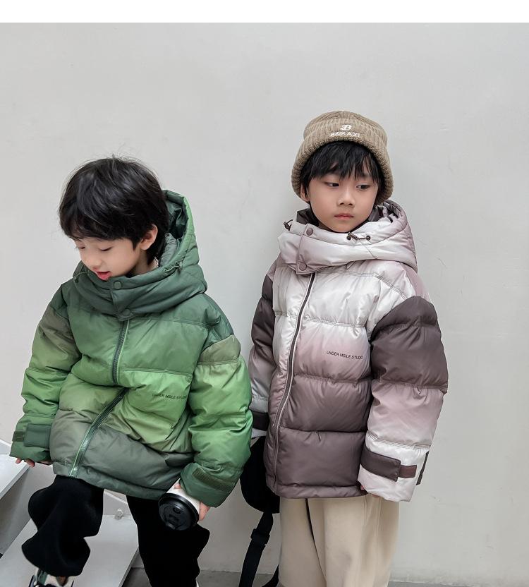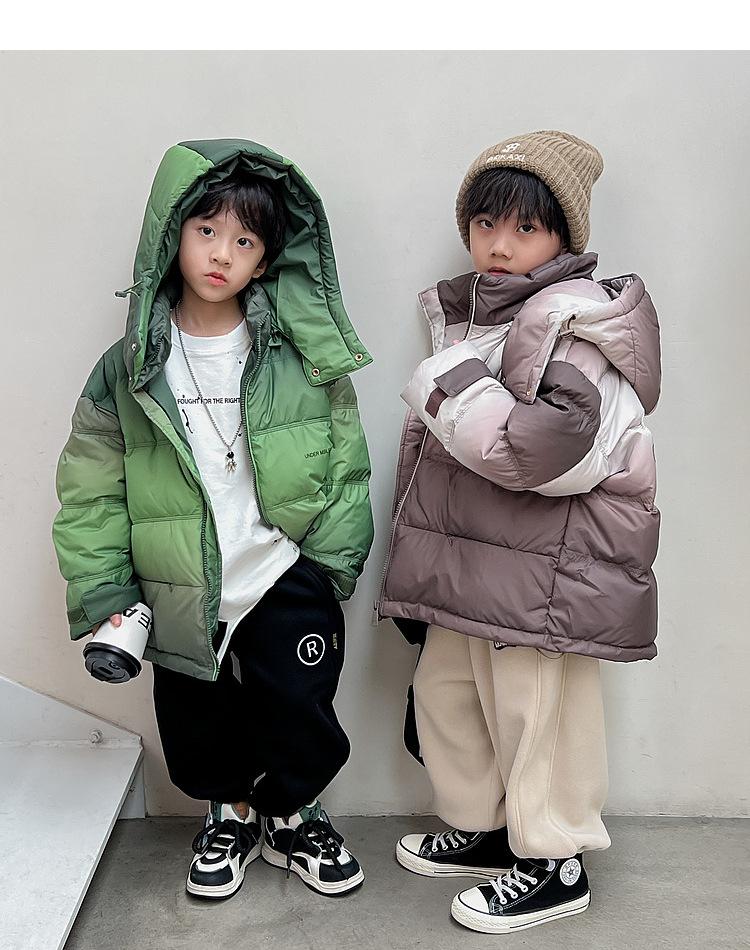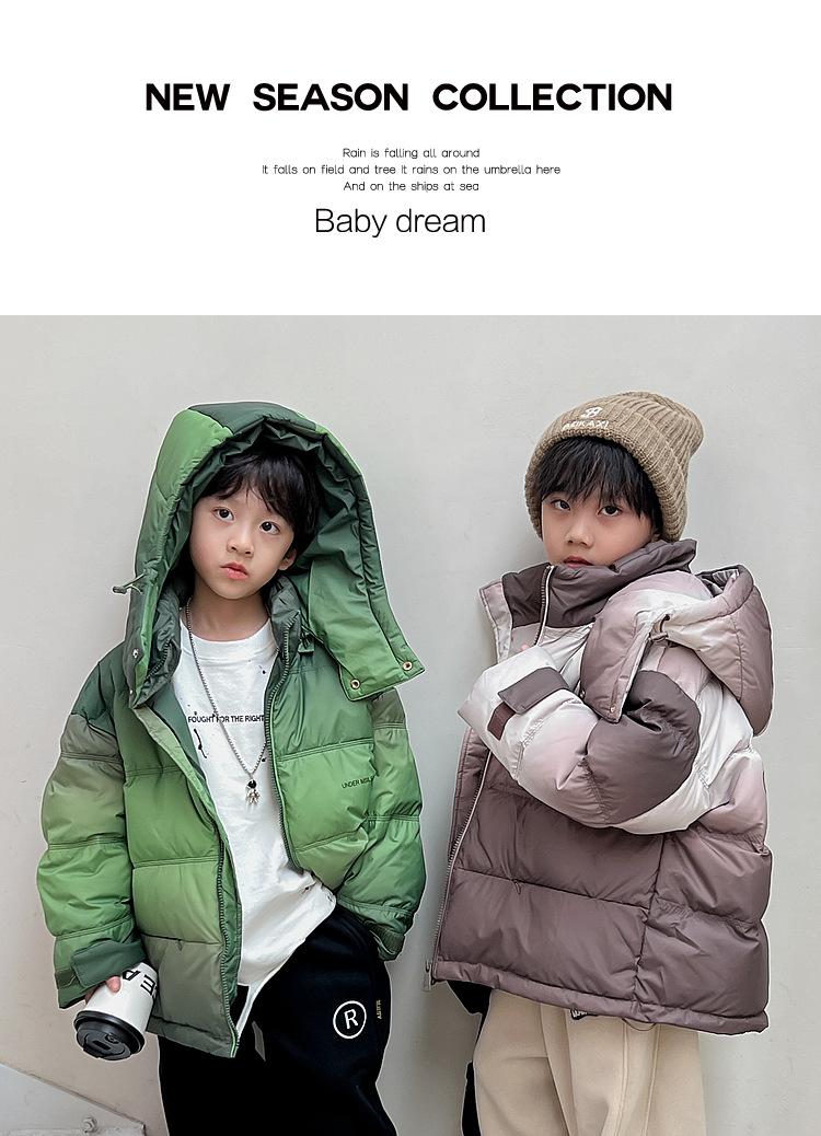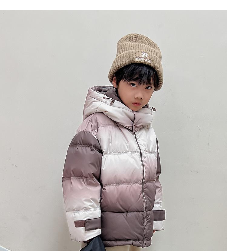 Chaqueta de plumón para niños y adolescentes, abrigo corto de plumón de pato blanco, chaqueta de plumón de color degradado cálido de estilo occidental de longitud media para niños