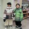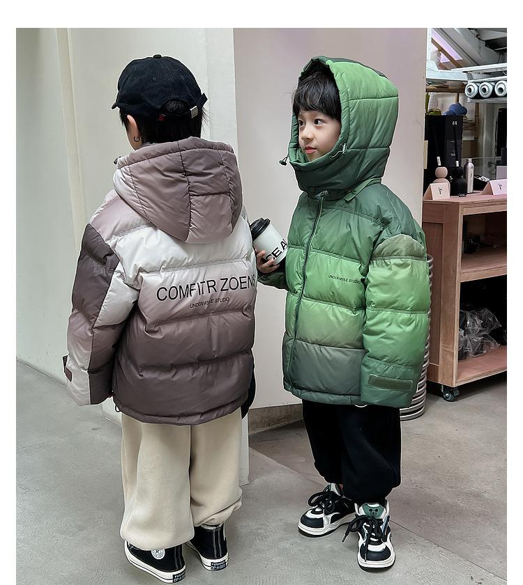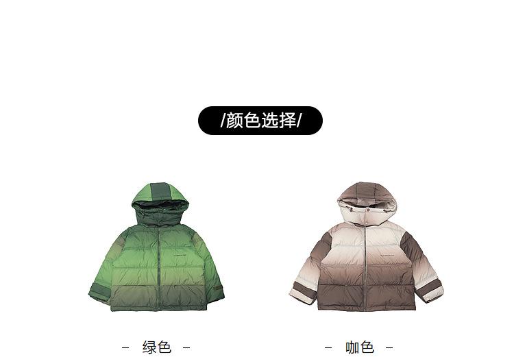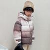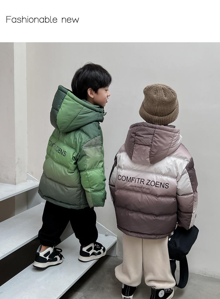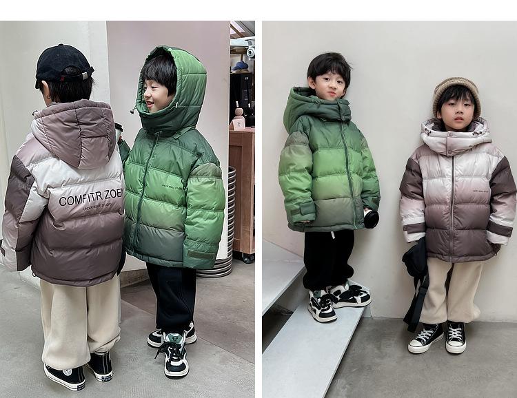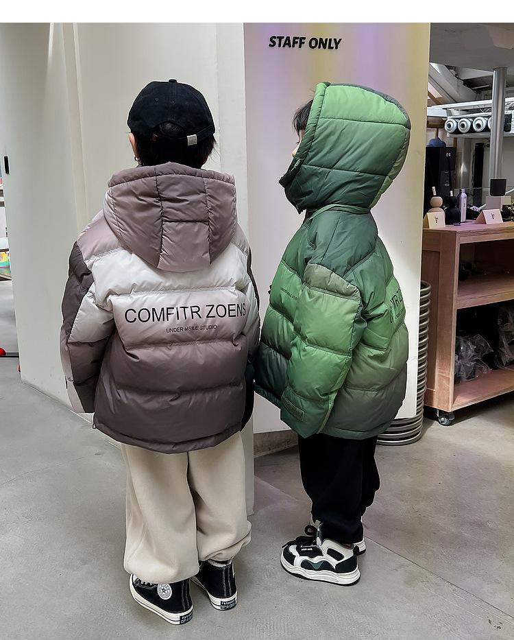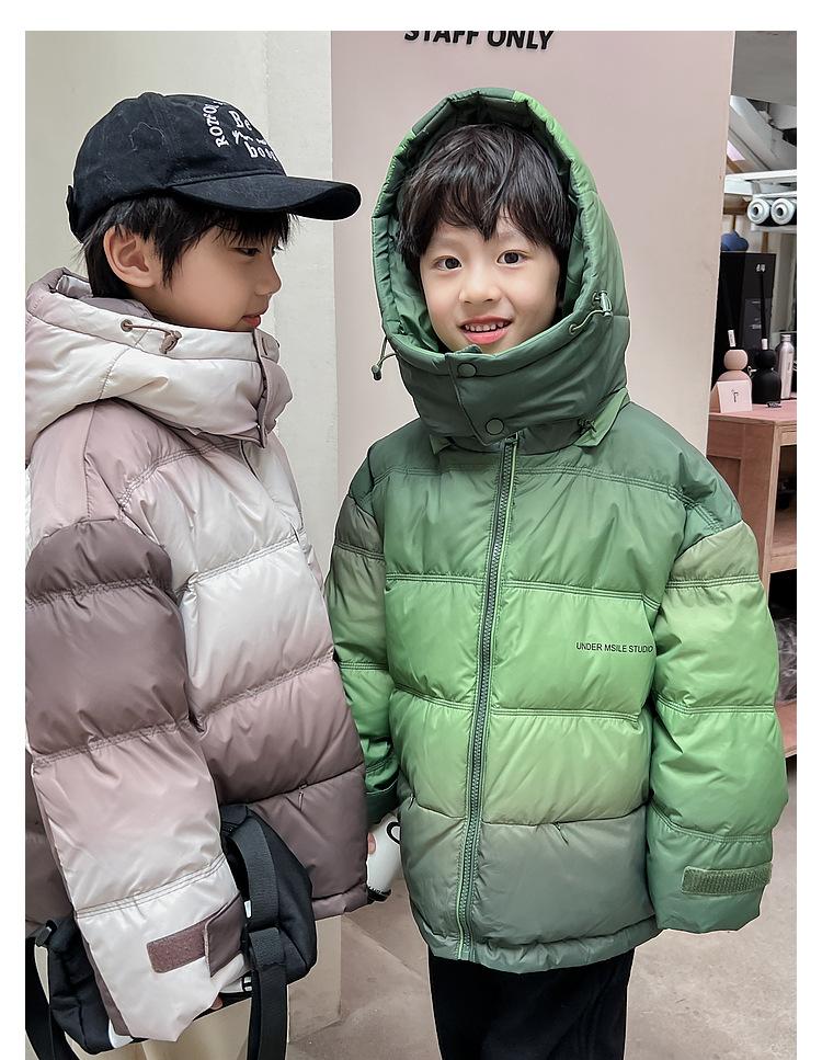 Chaqueta de plumón para niños y adolescentes, abrigo corto de plumón de pato blanco, chaqueta de plumón de color degradado cálido de estilo occidental de longitud media para niños