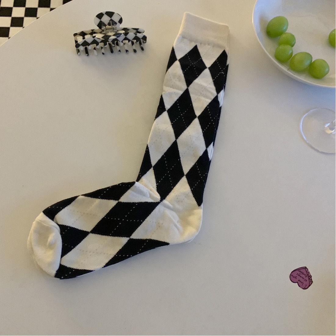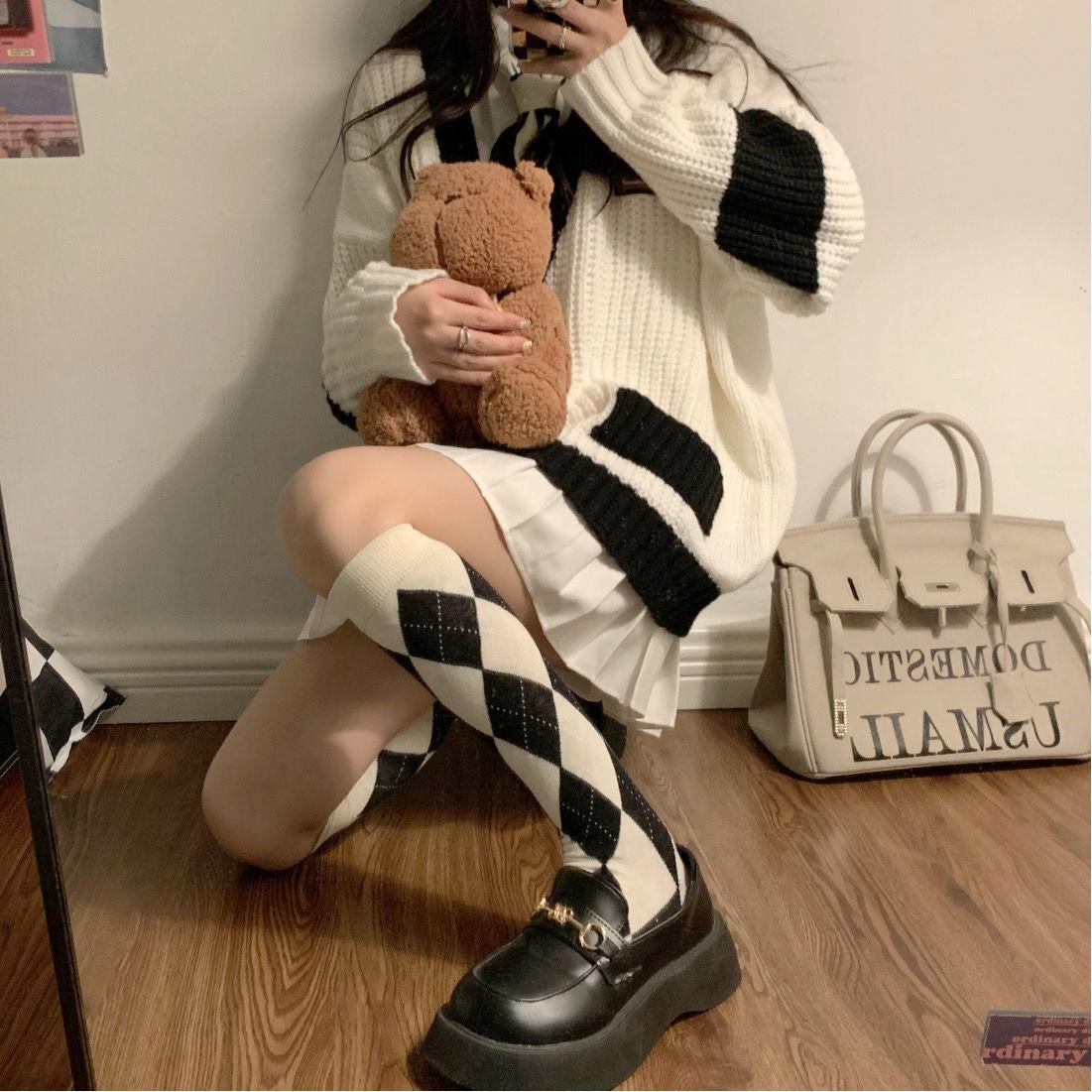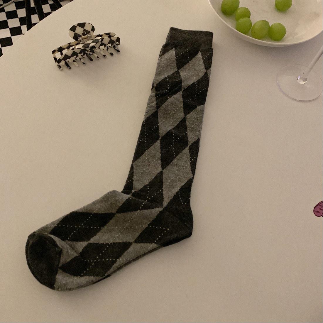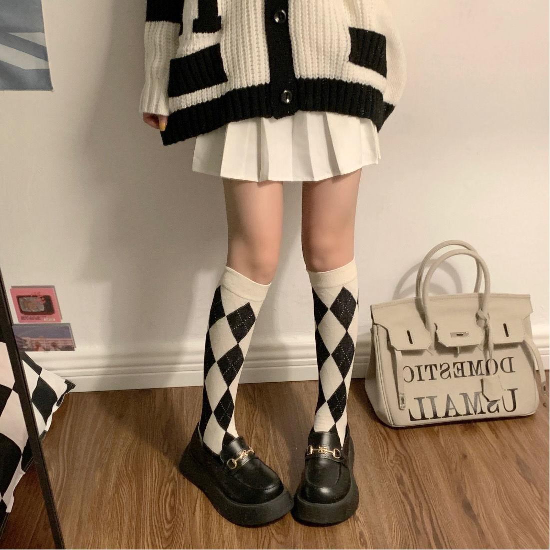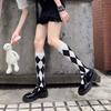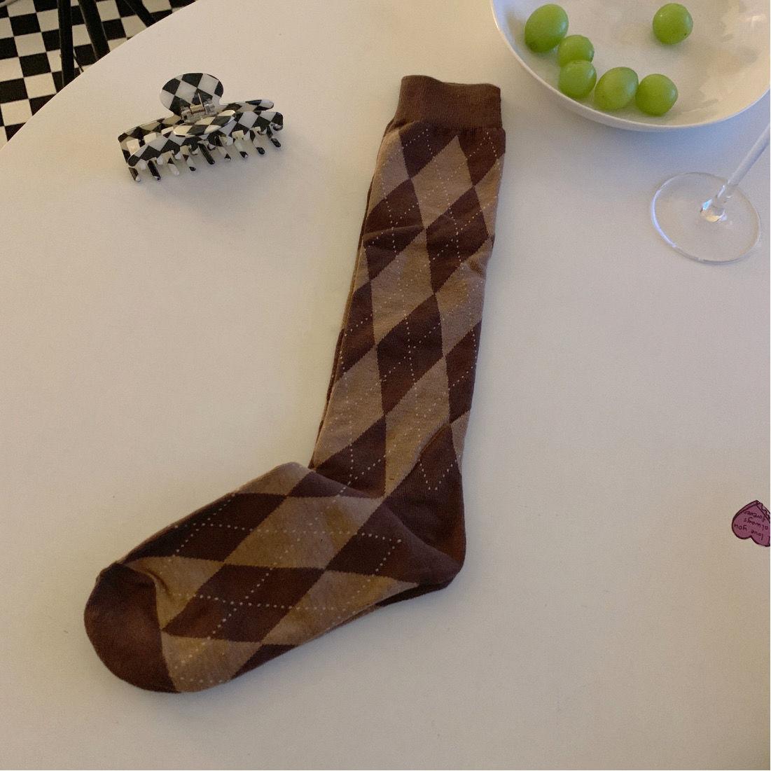 Calcetines hasta la rodilla de tubo largo marrón vintage calcetines para pantorrilla romboidal para mujer calcetines estilo universitario calcetines de moda cosplay