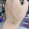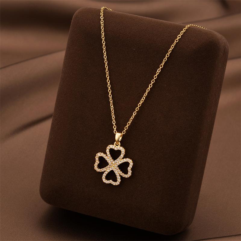 Moda Transfronteriza Corazón a Corazón Trébol de Cuatro Hojas Cadena para Clavícula Diseño Nicho Lujo Ligero Temperamento Collar Cadena para Clavícula de Acero de Titanio