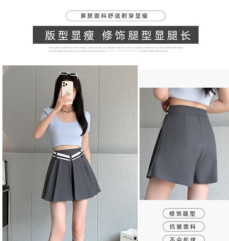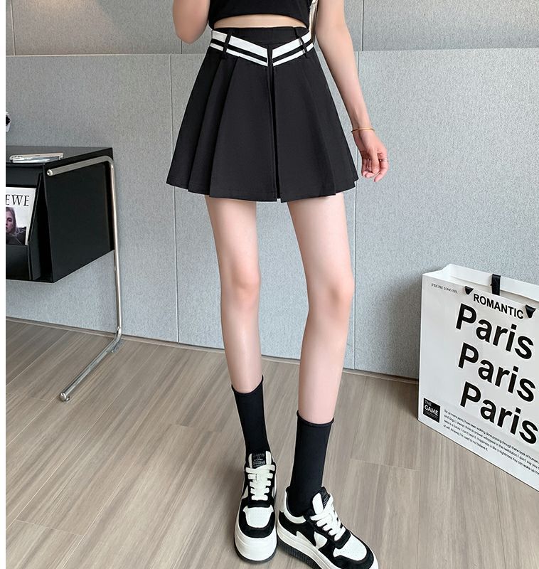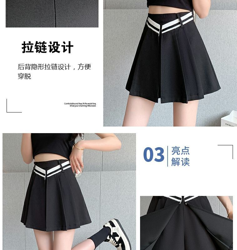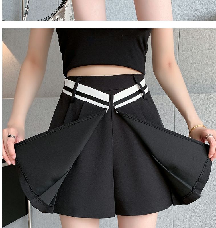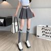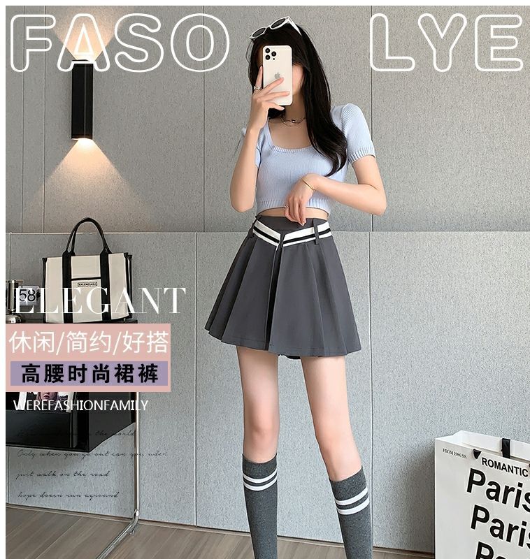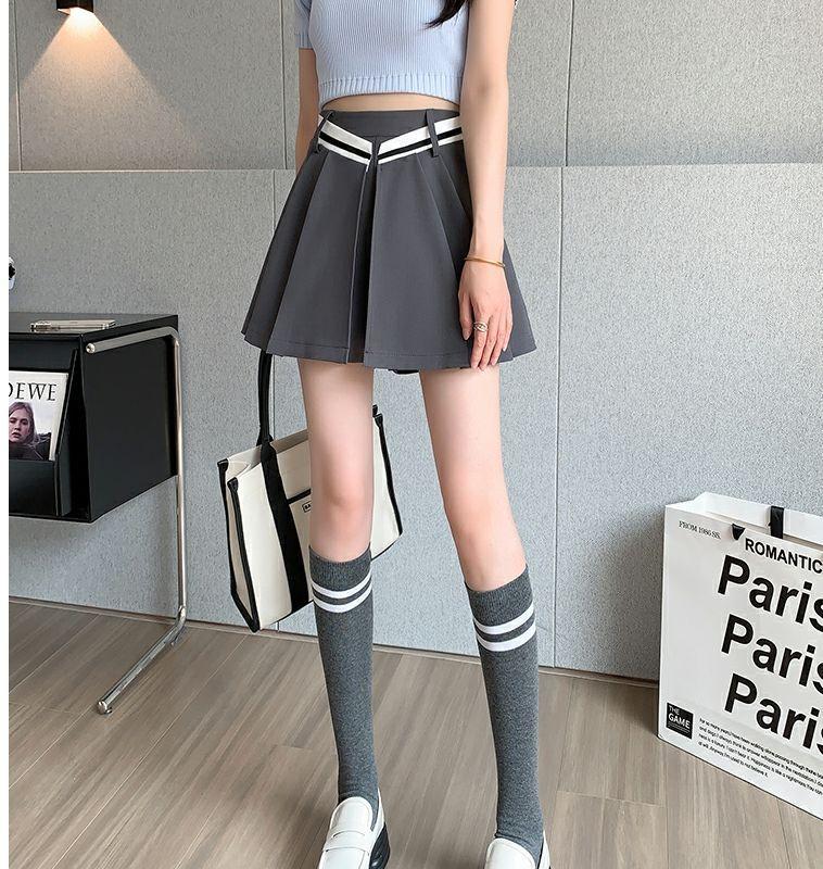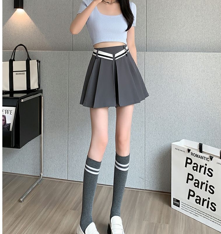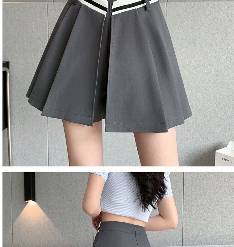 Falda corta plisada informal para mujer, otoño 2023, nueva, a rayas, cintura en V, diseño adelgazante, traje de estudiante, pantalones de pierna ancha
