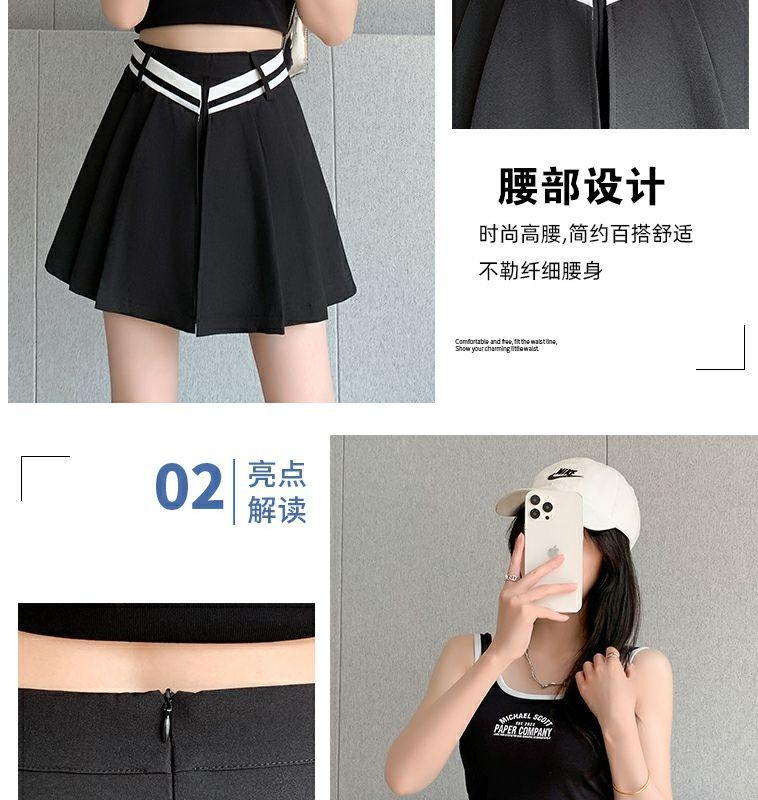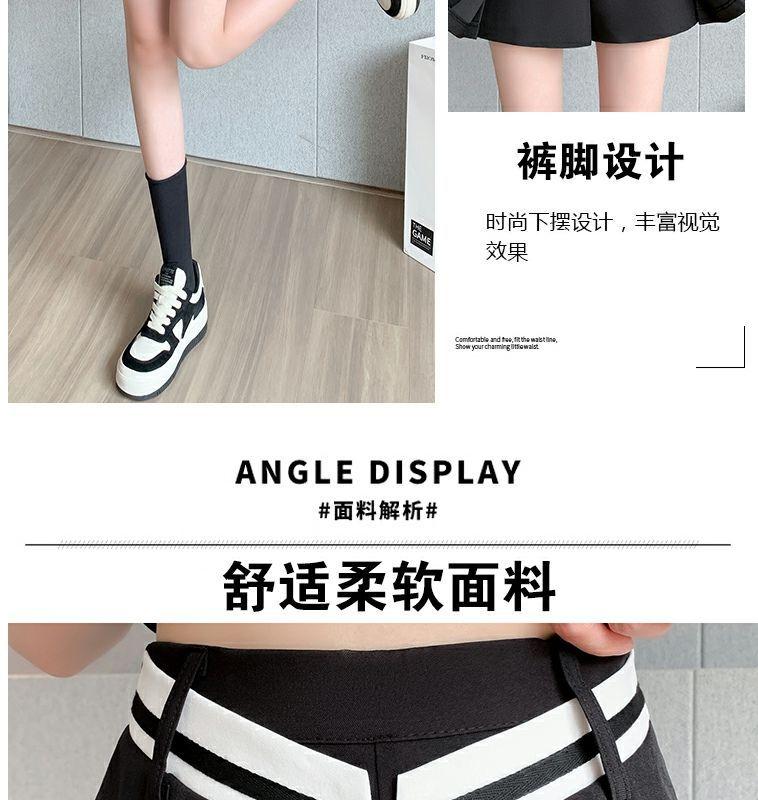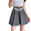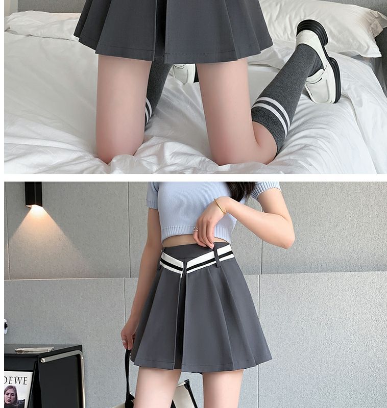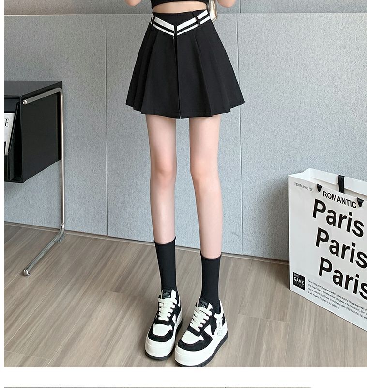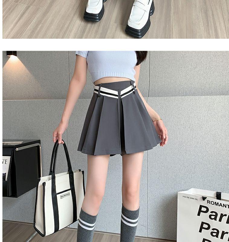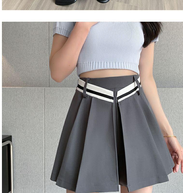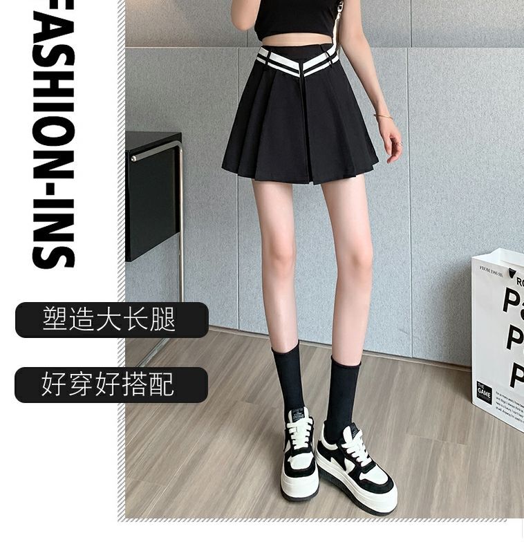 Falda corta plisada informal para mujer, otoño 2023, nueva, a rayas, cintura en V, diseño adelgazante, traje de estudiante, pantalones de pierna ancha
