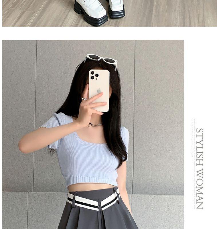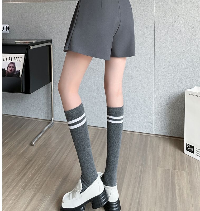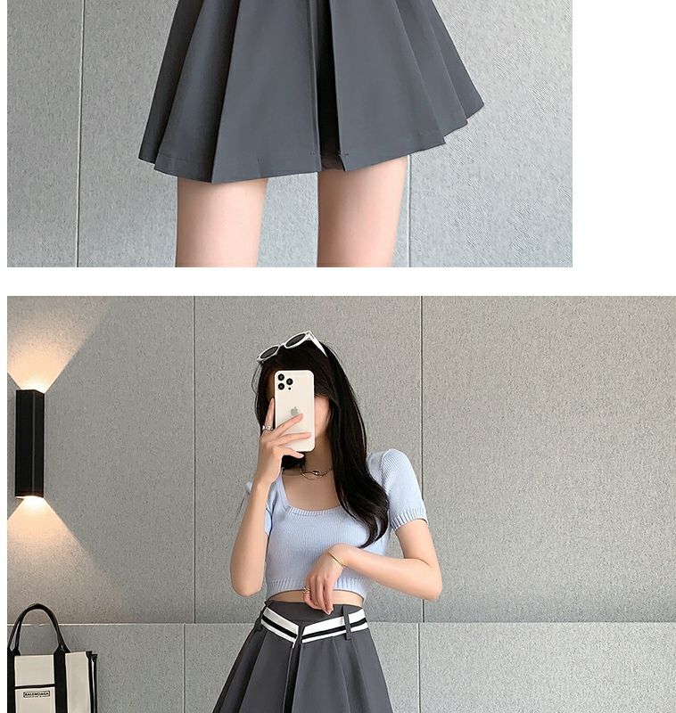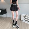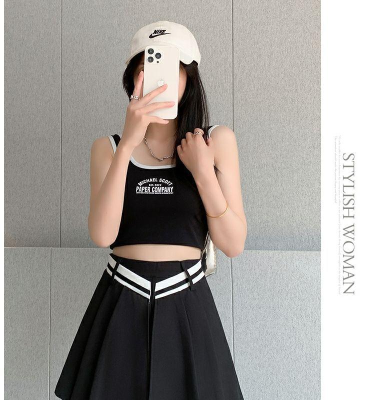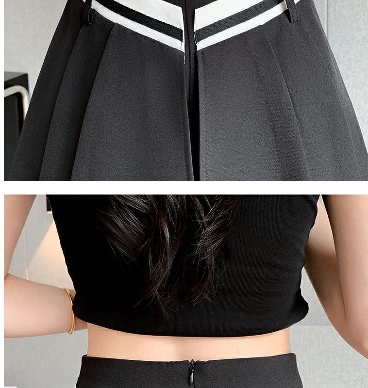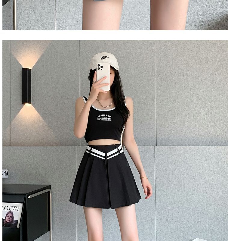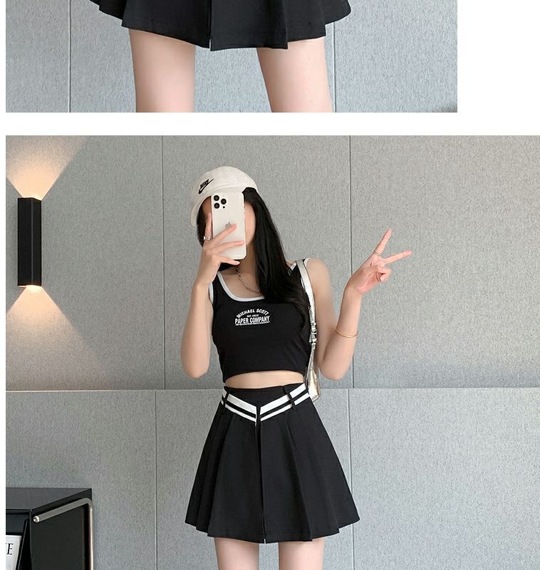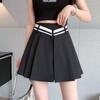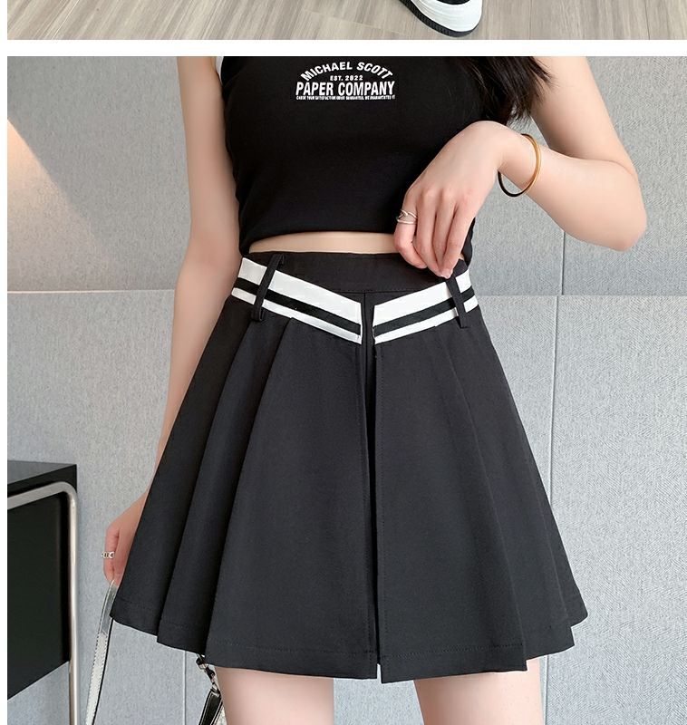Falda corta plisada informal para mujer, otoño 2023, nueva, a rayas, cintura en V, diseño adelgazante, traje de estudiante, pantalones de pierna ancha
