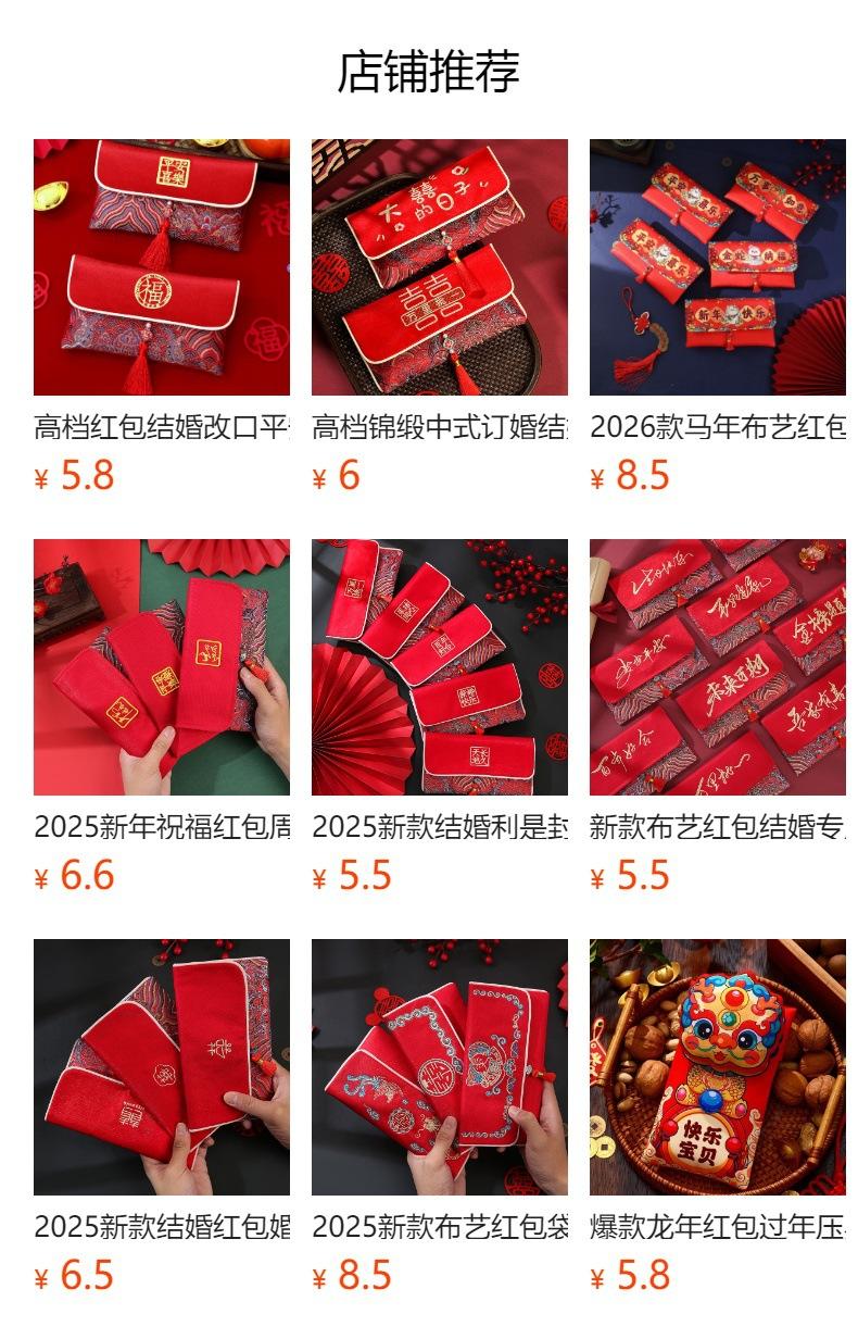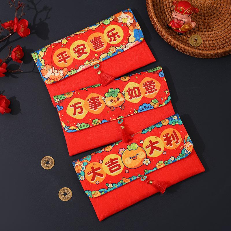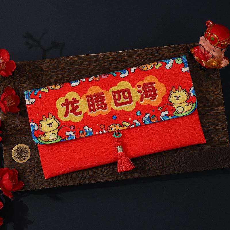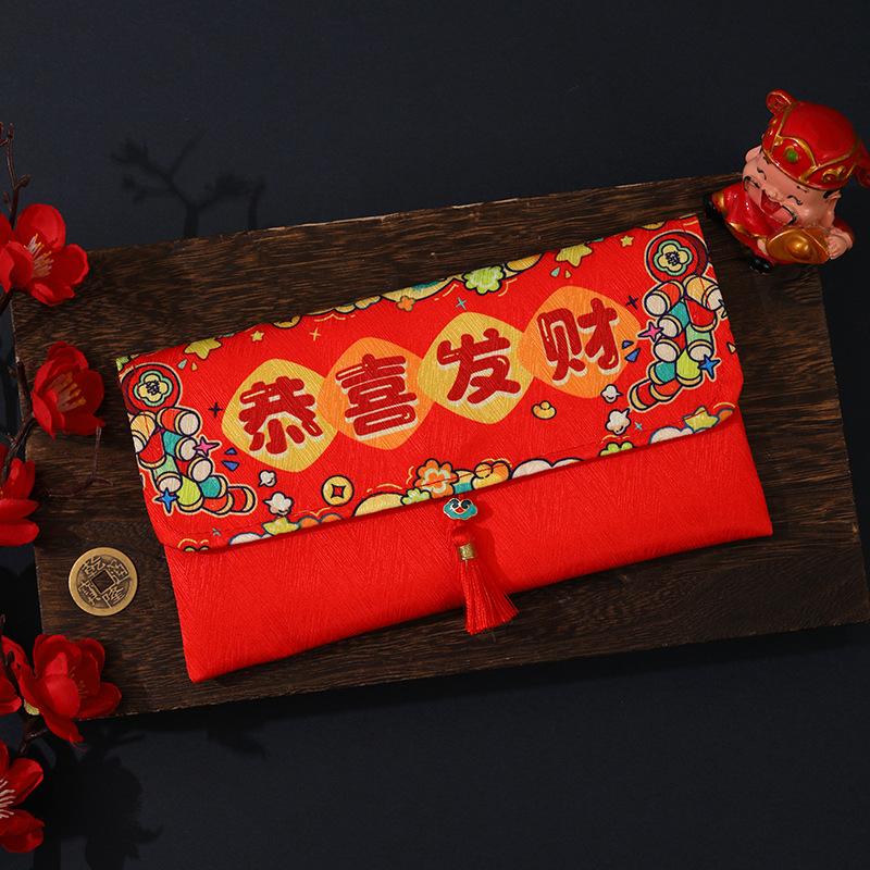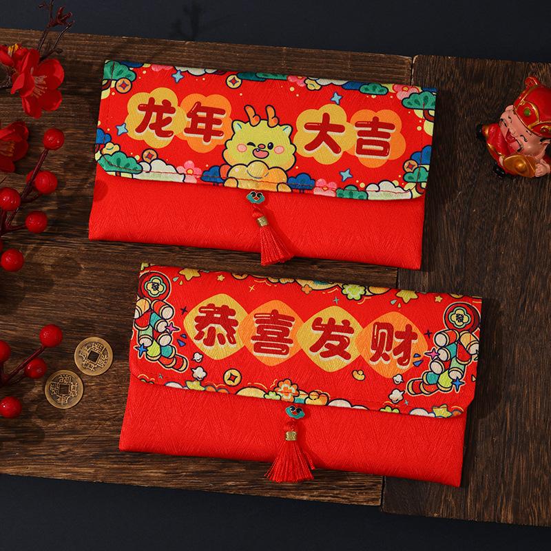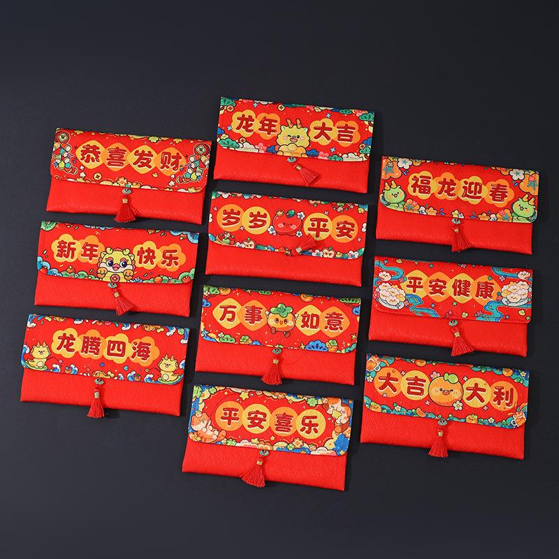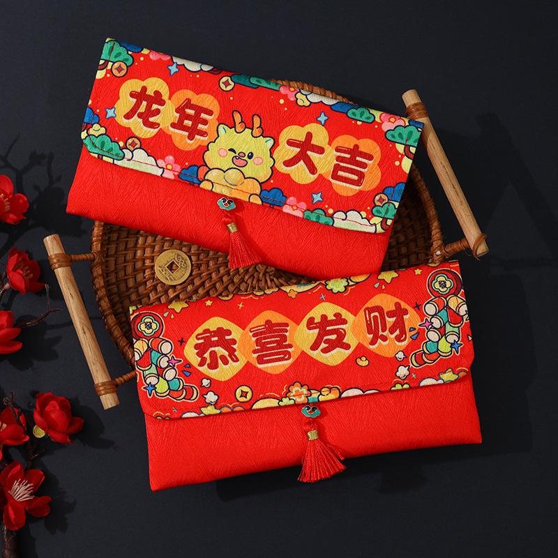 Sobres Rojos de Año Nuevo para el Año del Caballo, Creativos de Alta Gama de Tela de Dibujos Animados, Paquetes Rojos de Dinero de la Suerte de Año Nuevo al por Mayor