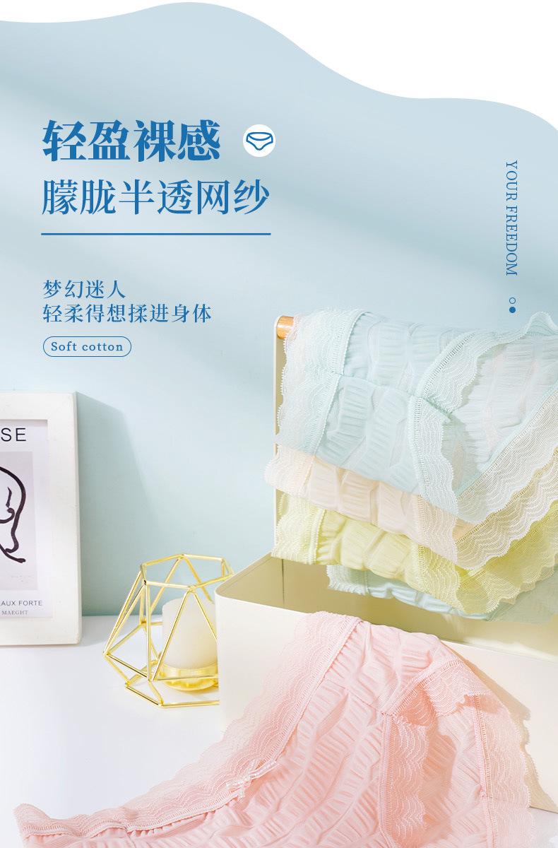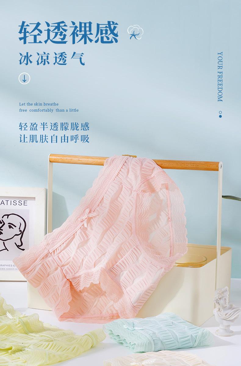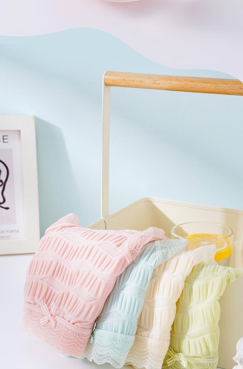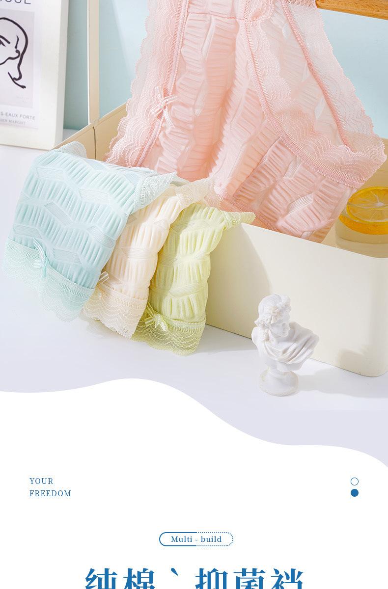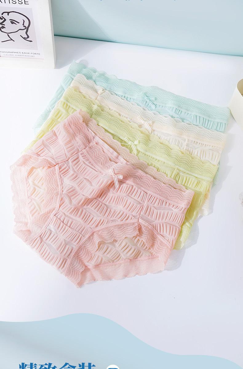 Ropa interior de seda helada Salt Bubble, cómoda y sin marcas para niñas, de algodón puro, de cintura media, con encaje sencillo y sexy.