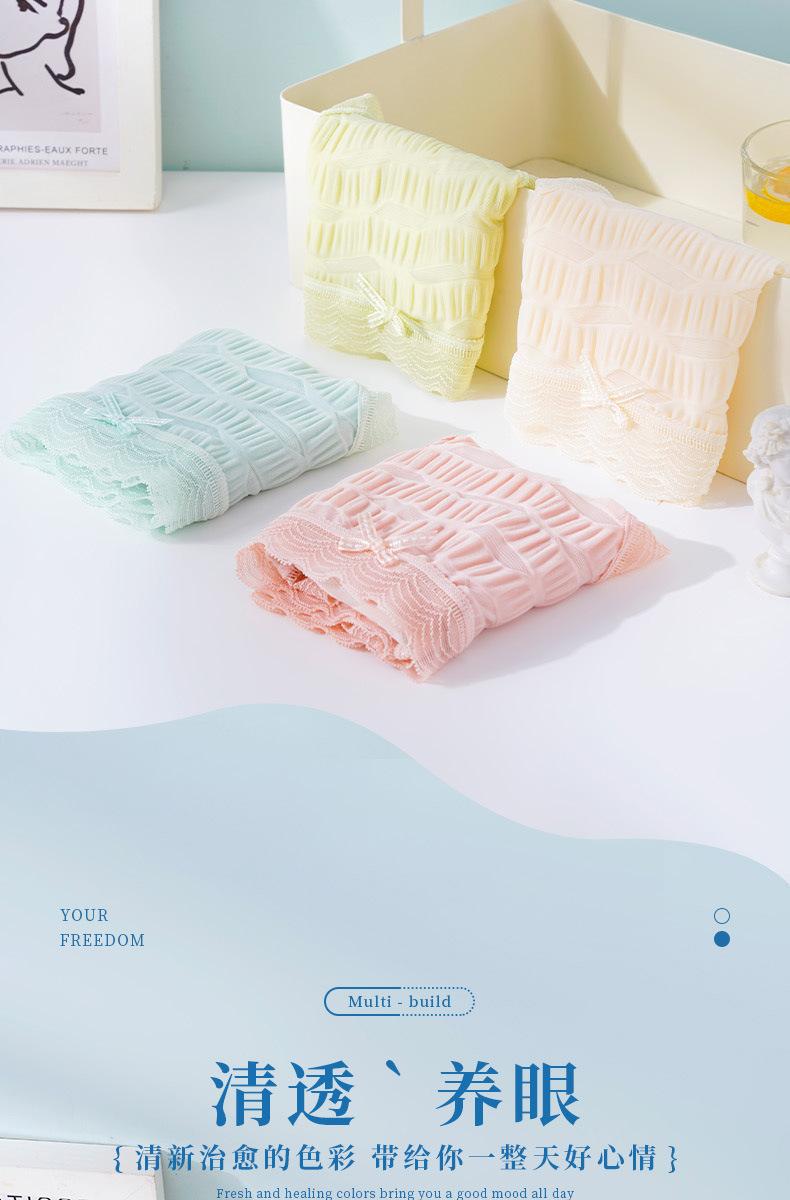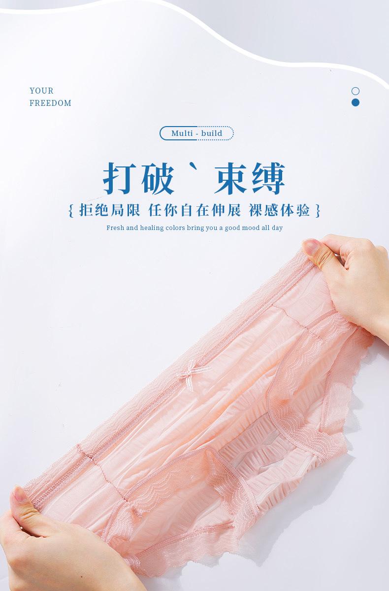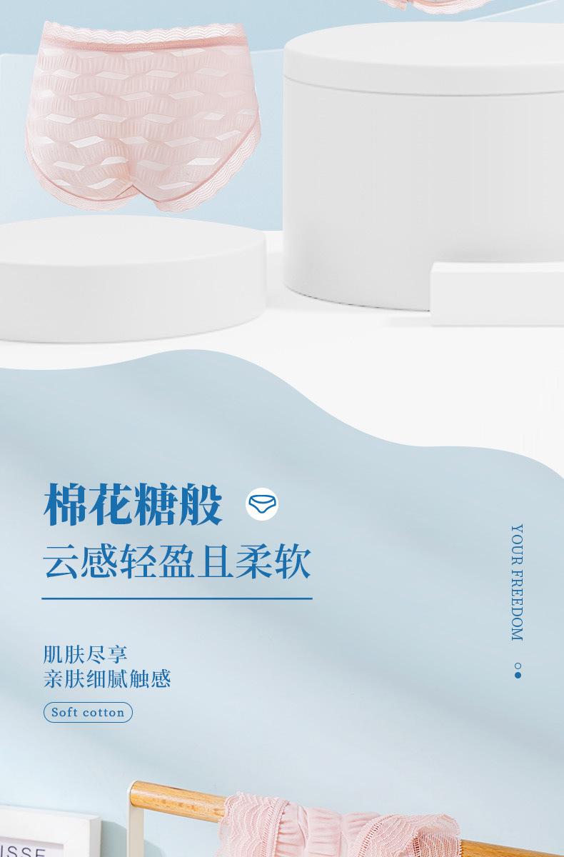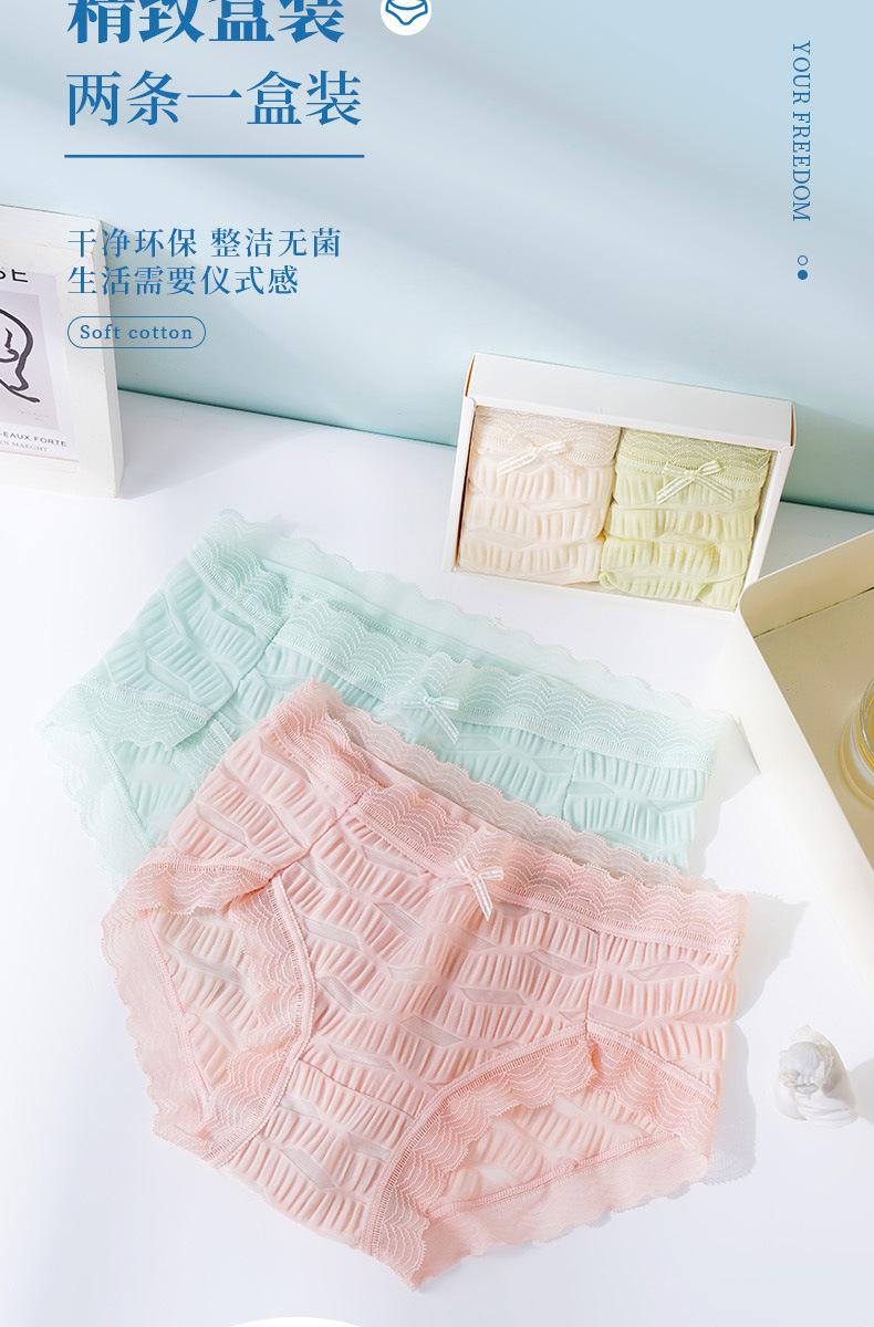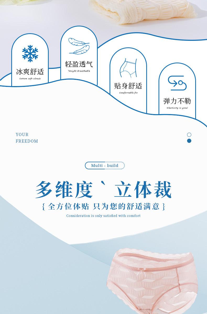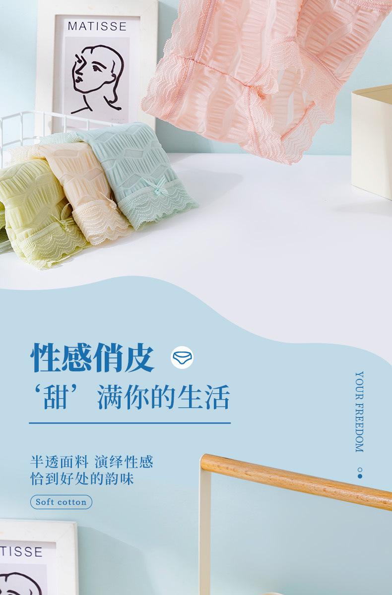 Ropa interior de seda helada Salt Bubble, cómoda y sin marcas para niñas, de algodón puro, de cintura media, con encaje sencillo y sexy.