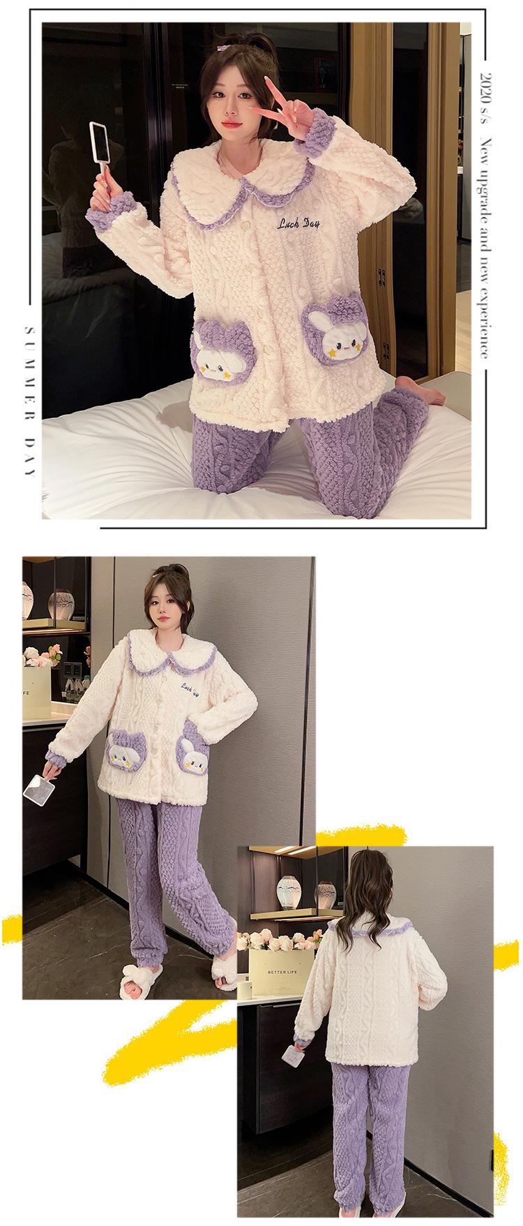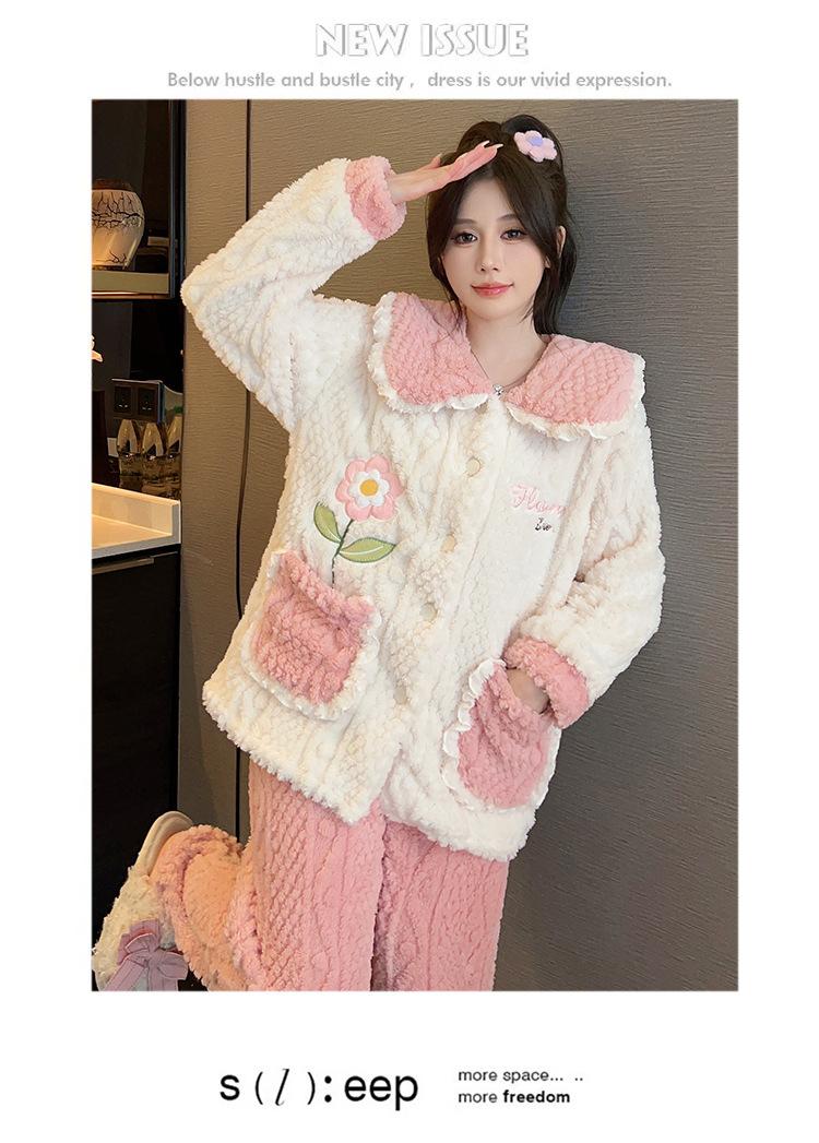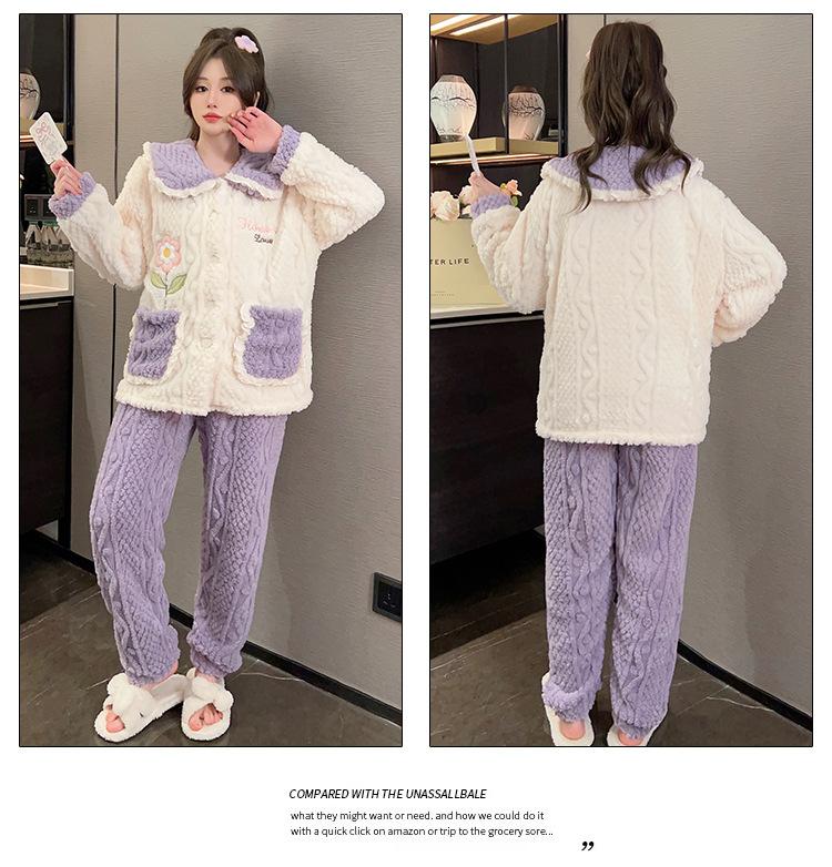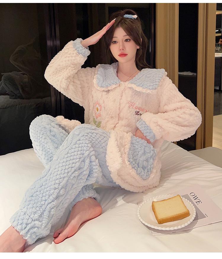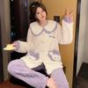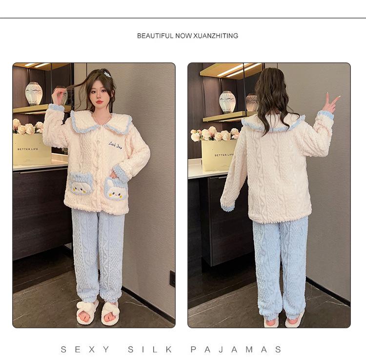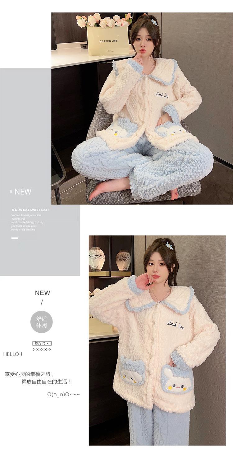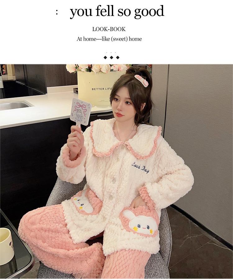 Pijamas para mujer otoño e invierno felpa lindo dulce cuello de muñeca cárdigan talla grande niña gordita cálido ropa de casa
