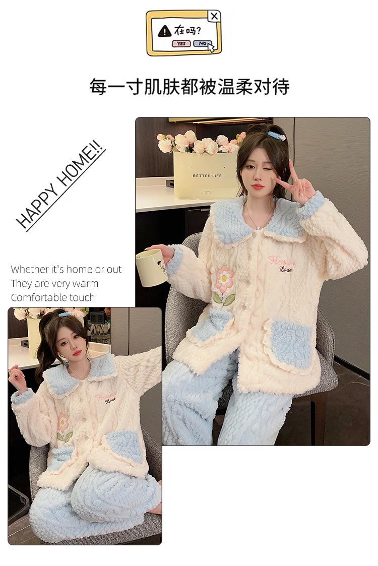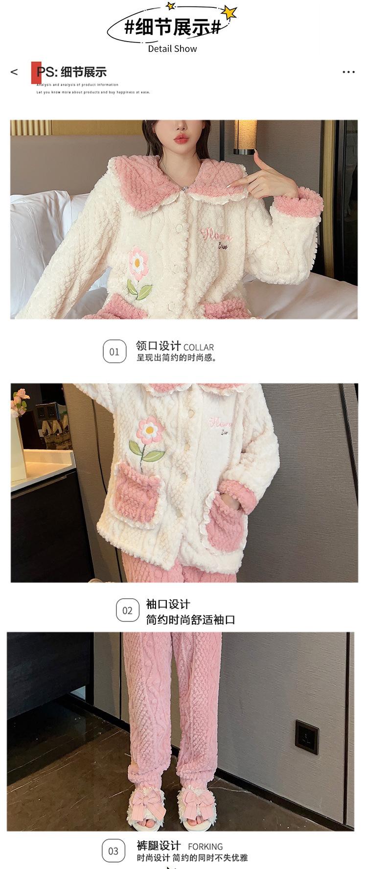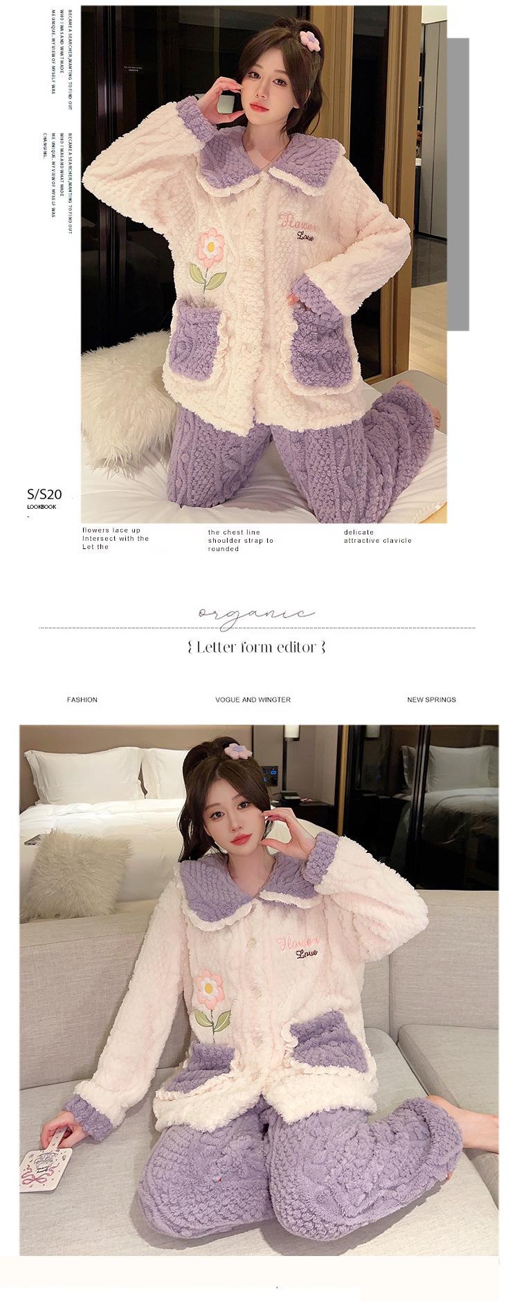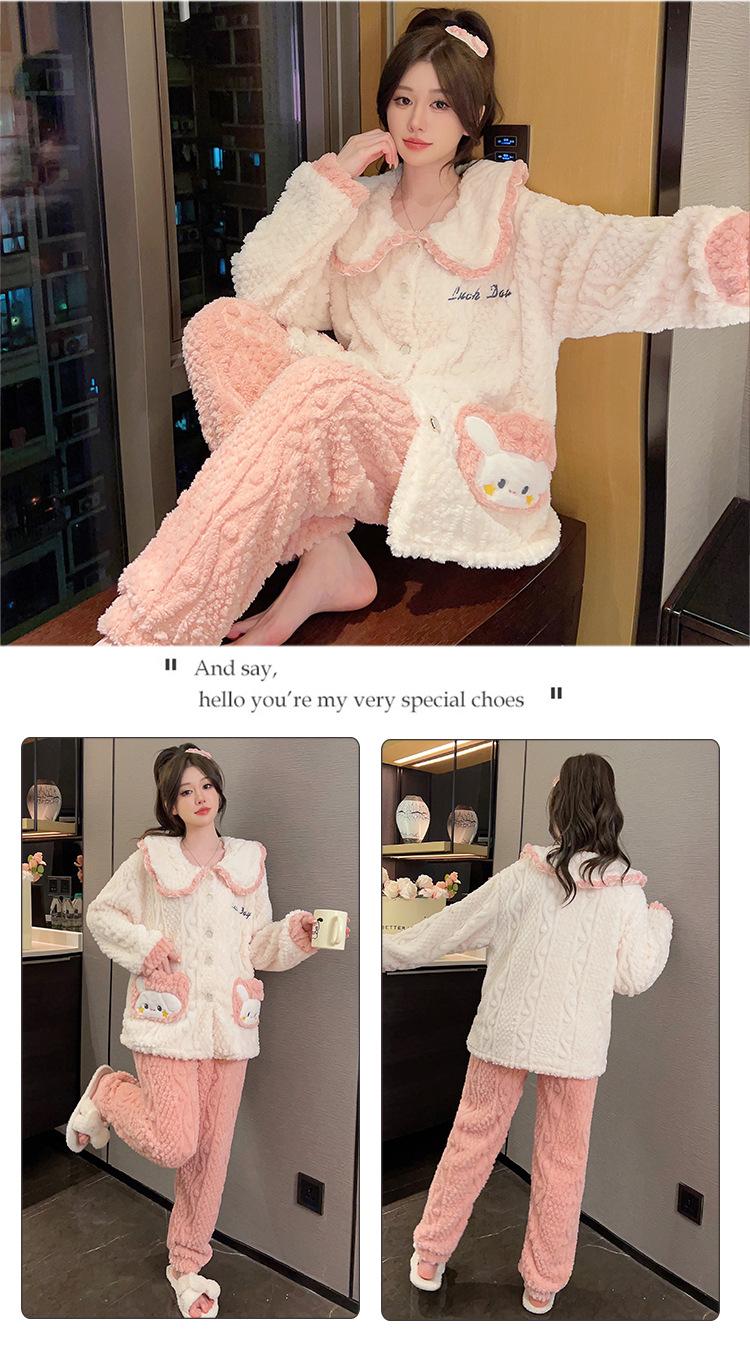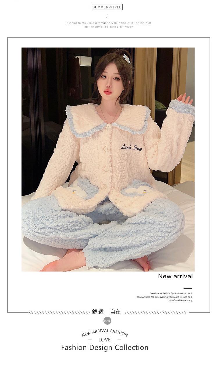 Pijamas para mujer otoño e invierno felpa lindo dulce cuello de muñeca cárdigan talla grande niña gordita cálido ropa de casa