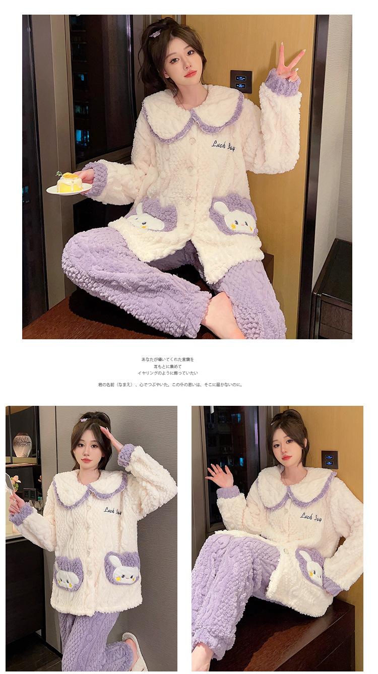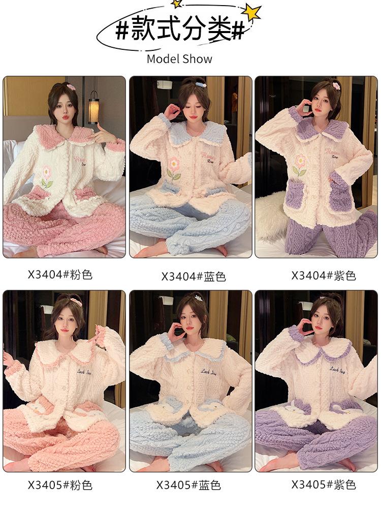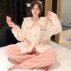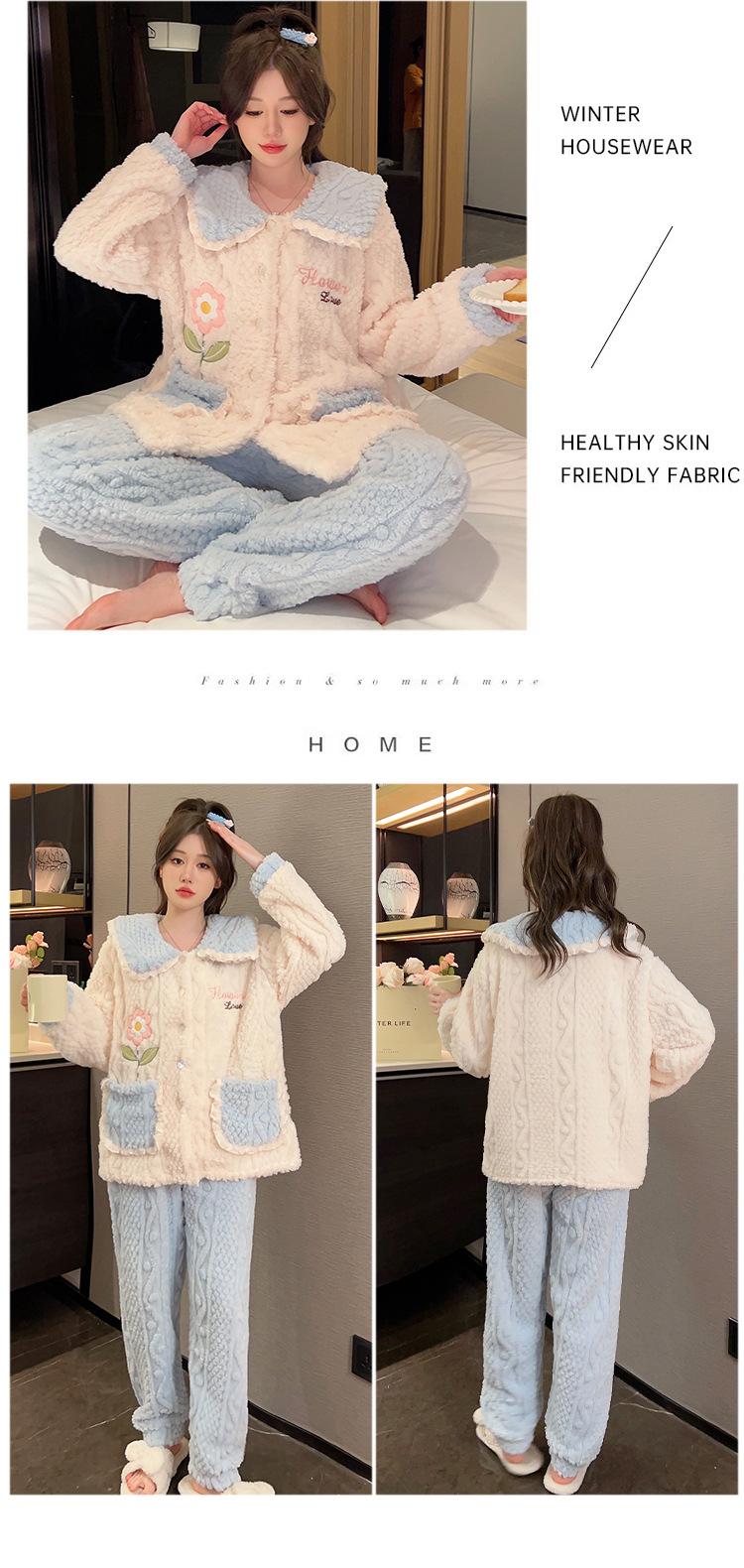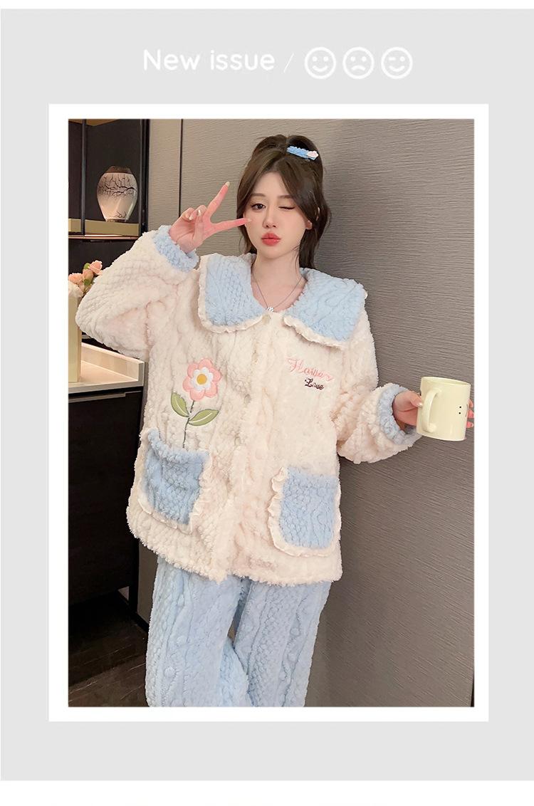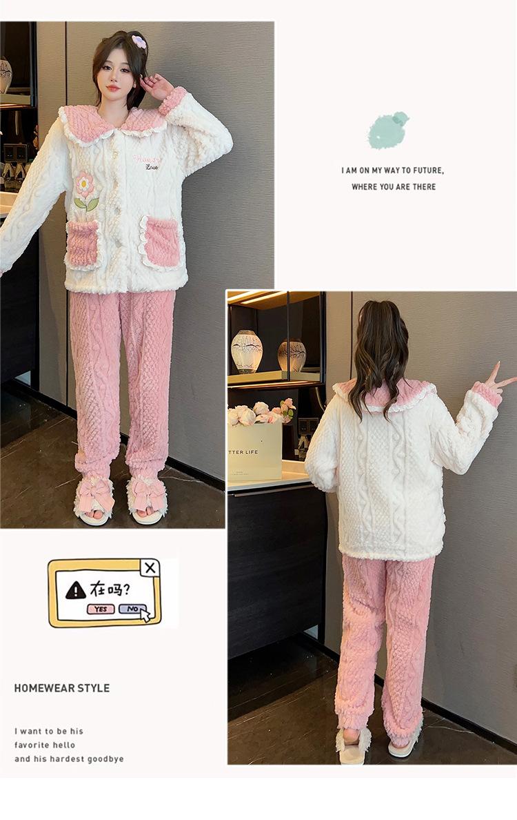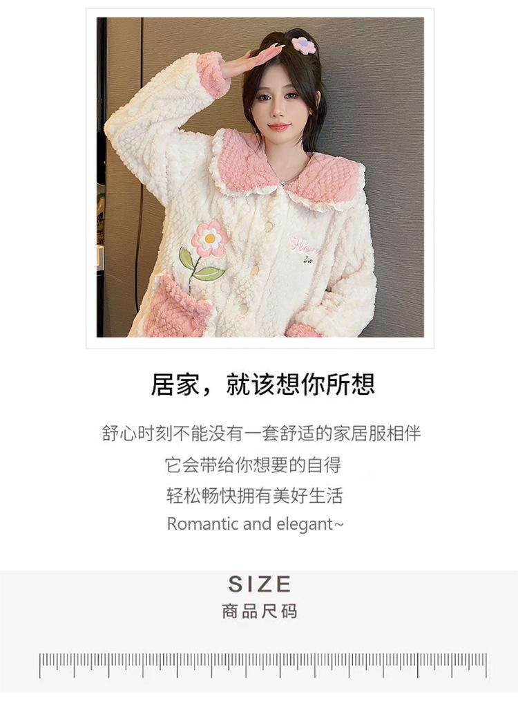 Pijamas para mujer otoño e invierno felpa lindo dulce cuello de muñeca cárdigan talla grande niña gordita cálido ropa de casa