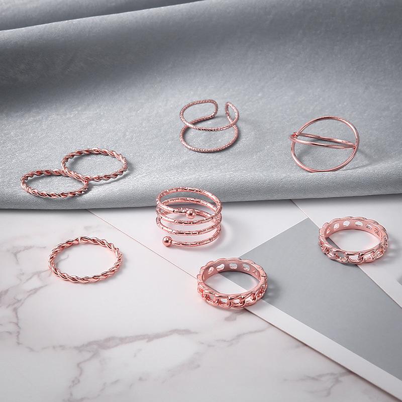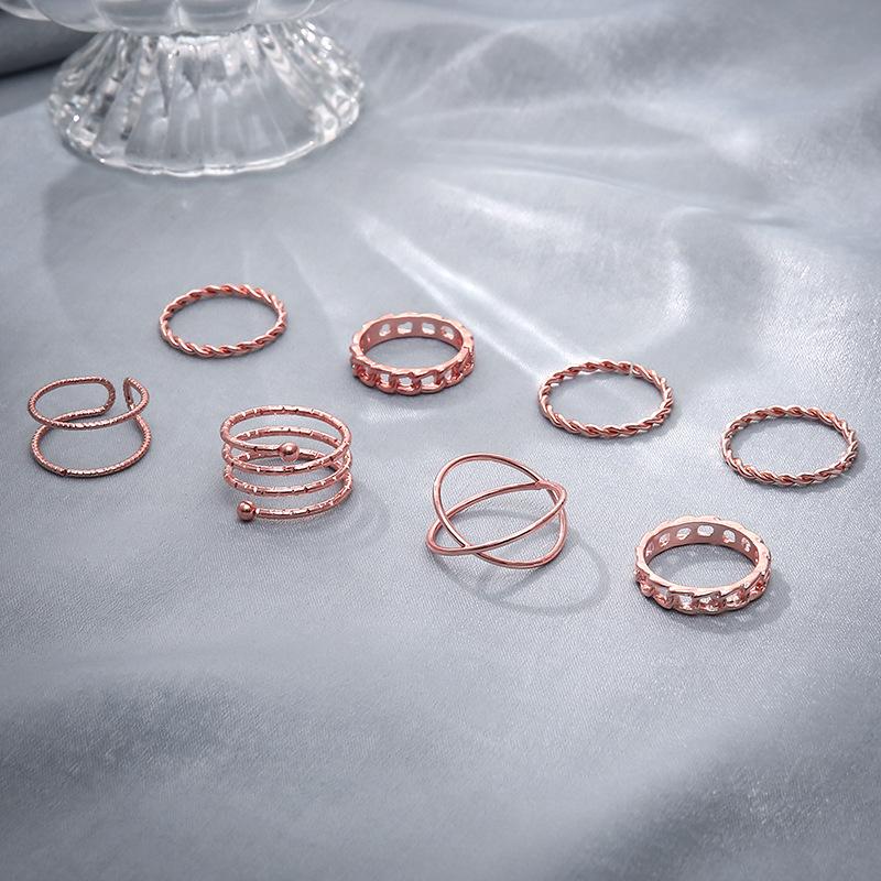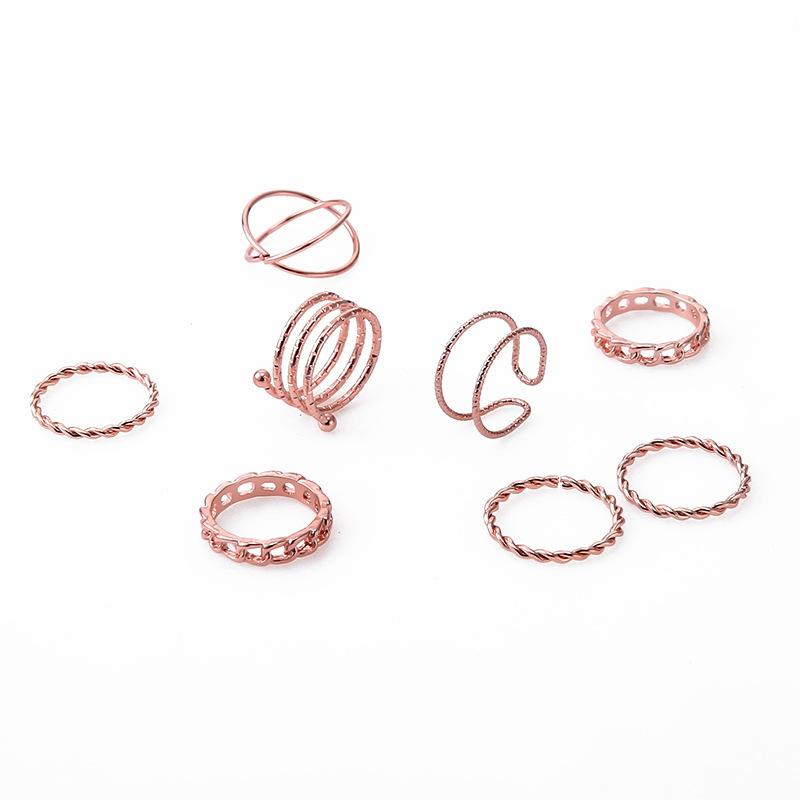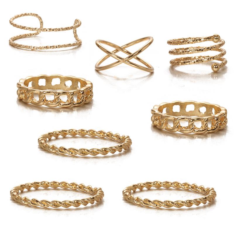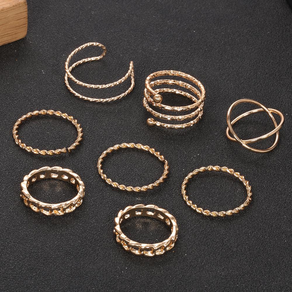 Europa y Estados Unidos para creativo retro simple multicapa de apertura cruzada juego de anillos de unión giratoria de 8 piezas