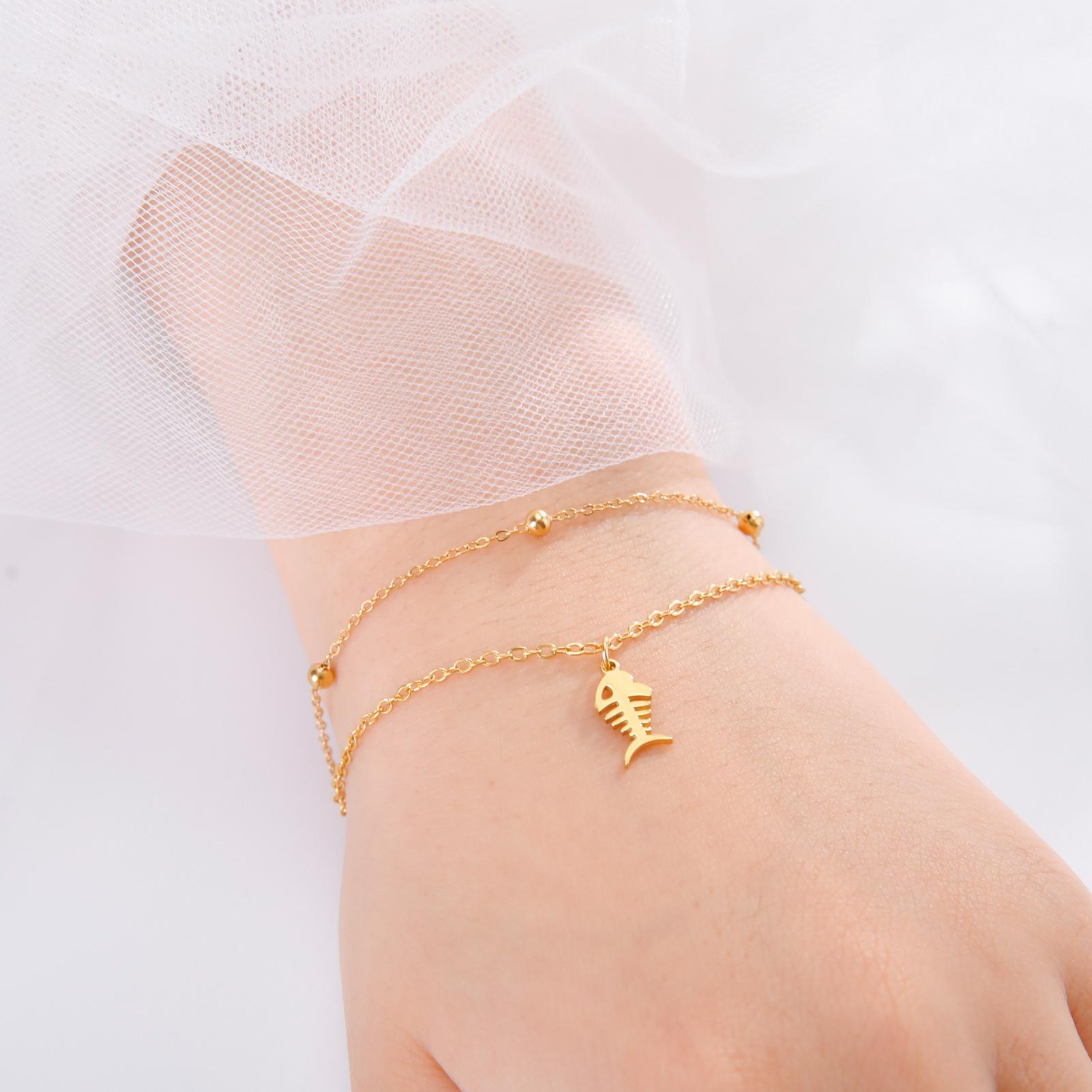 Linda pulsera colgante de espiga de pescado para mujer, acero de titanio, tendencia de moda, pulsera versátil, regalo, venta al por mayor, pulsera de acero inoxidable