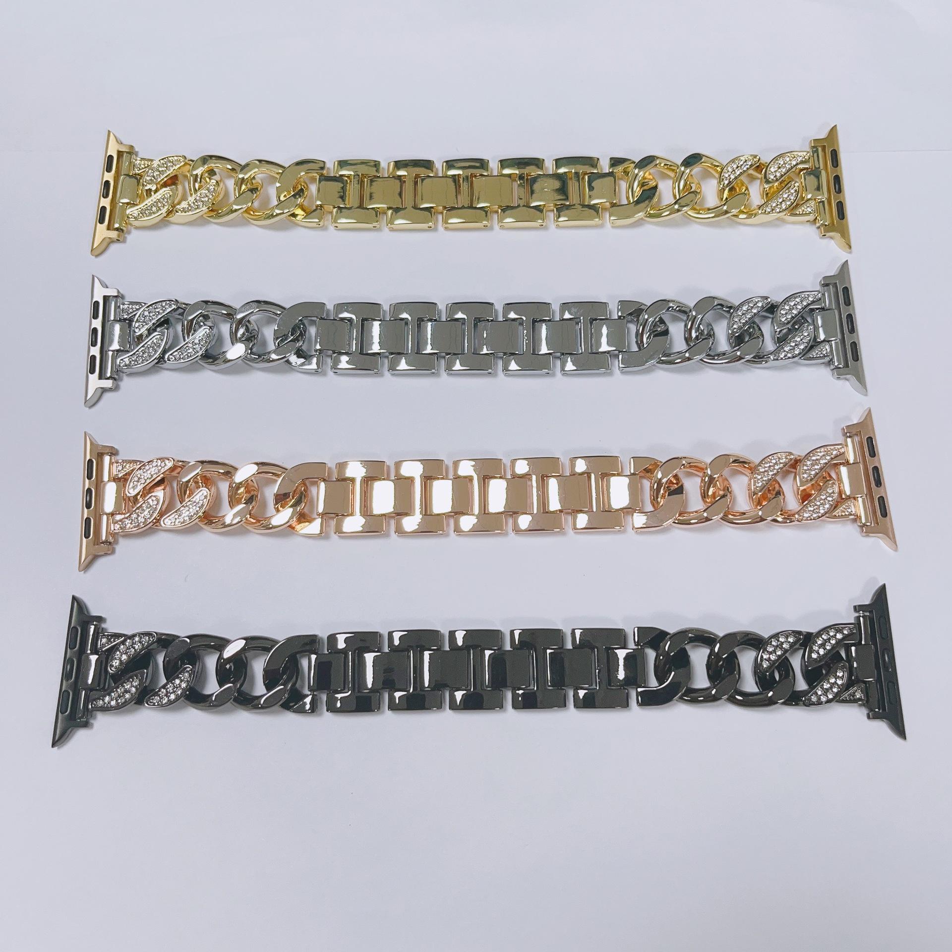 Adecuado para Apple Diamond Strap, cadena de mezclilla de una sola fila con diamantes de imitación, correa de reloj Apple Watch, correa de reloj iWatchse