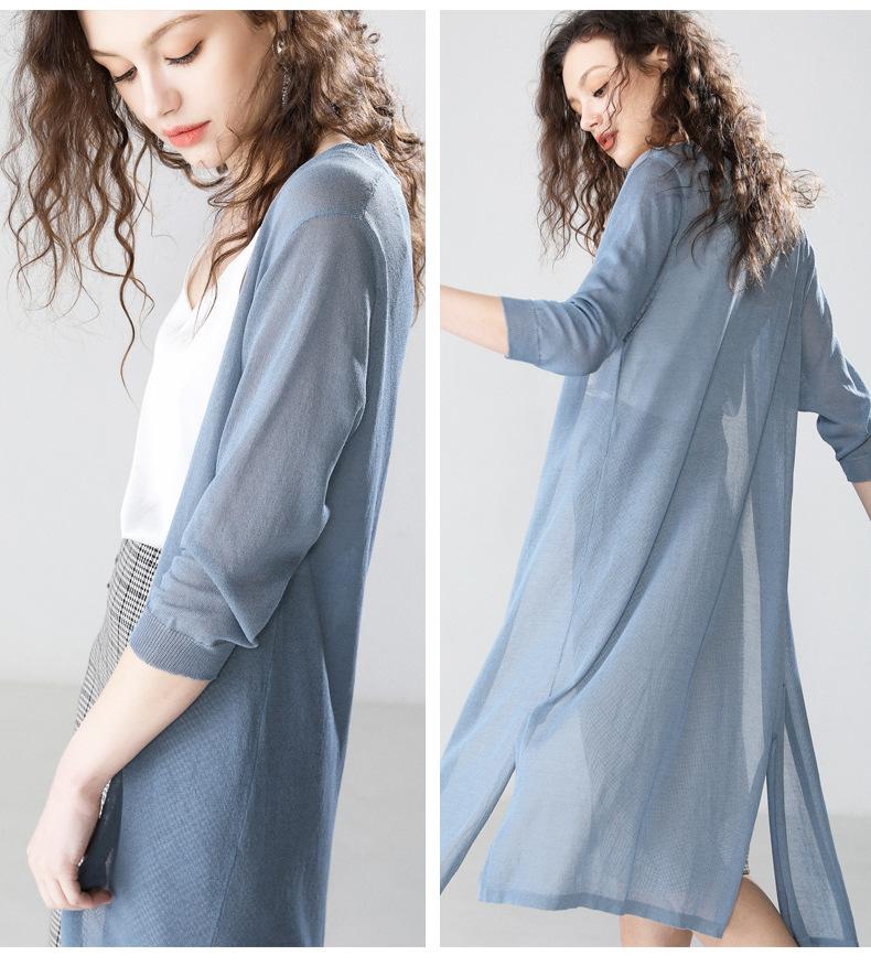 Chaqueta de verano para mujer, estilo coreano, fina, de algodón y lino, de punto, con protección solar, de longitud media y aire acondicionado