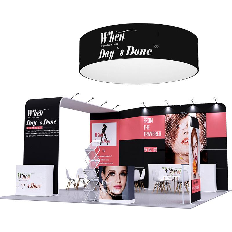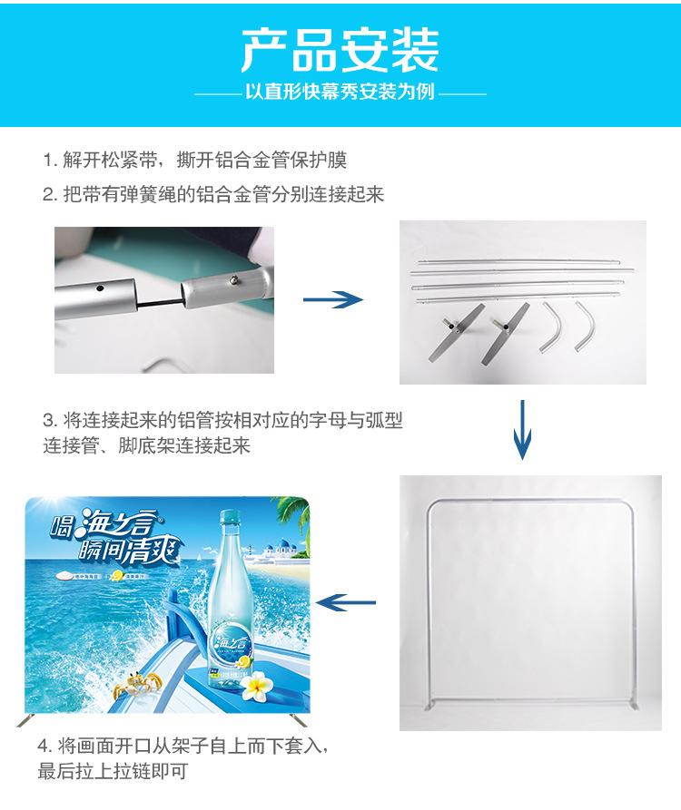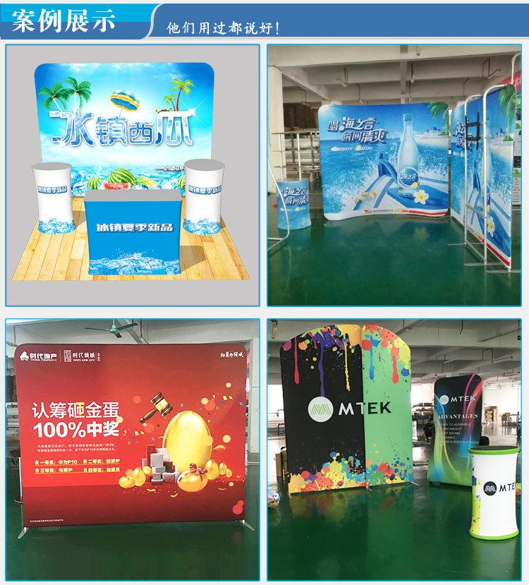Soporte de exhibición de publicidad plegable de transferencia térmica de tela elástica con imagen, cortina rápida, soporte retráctil, pared de fondo recto, aleación de aluminio