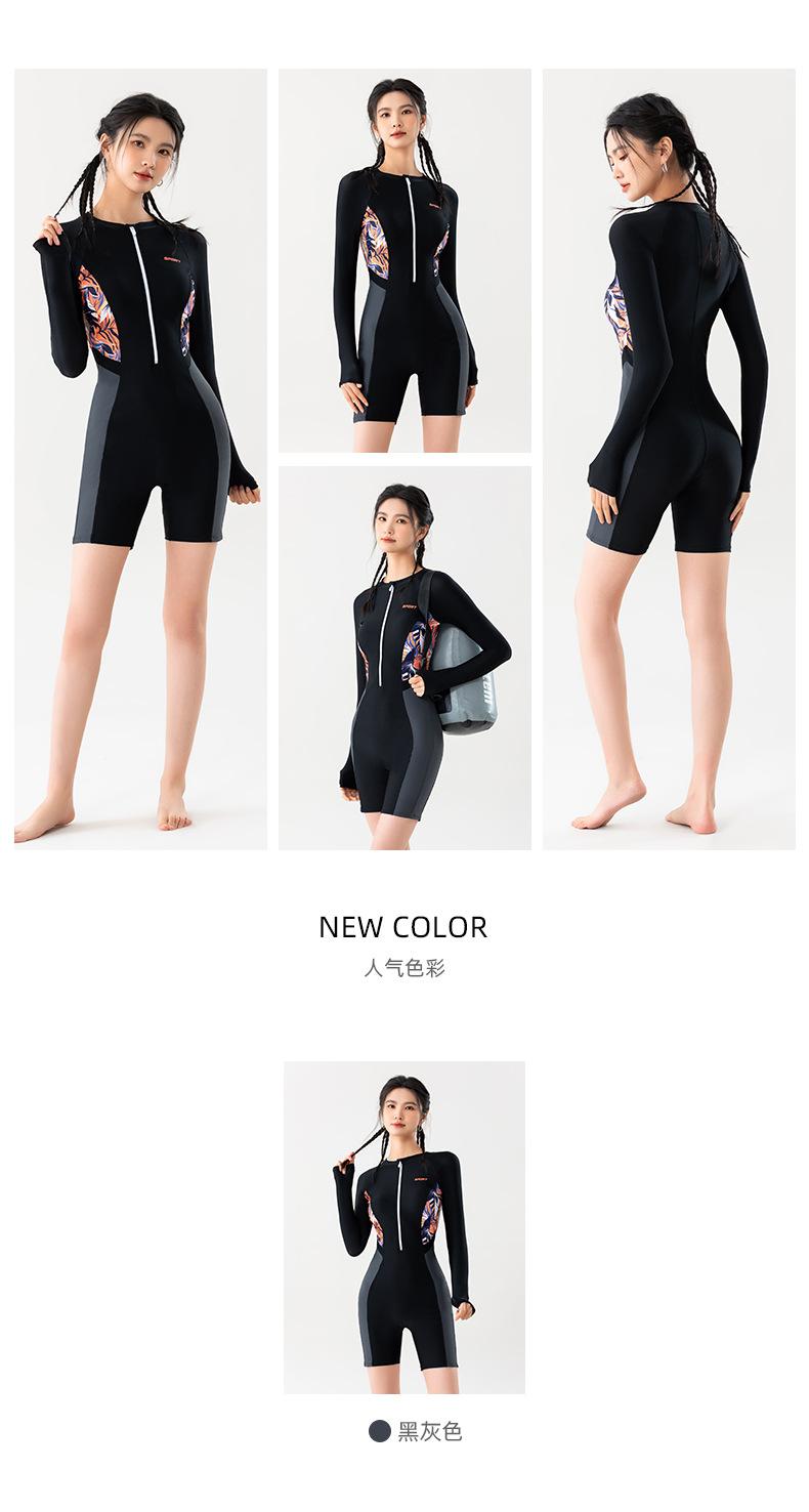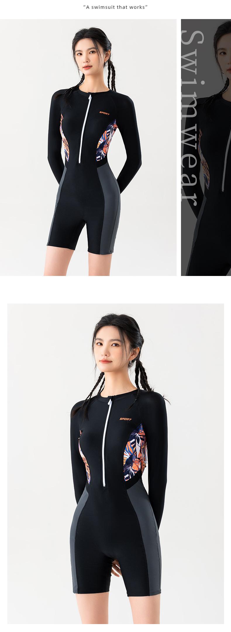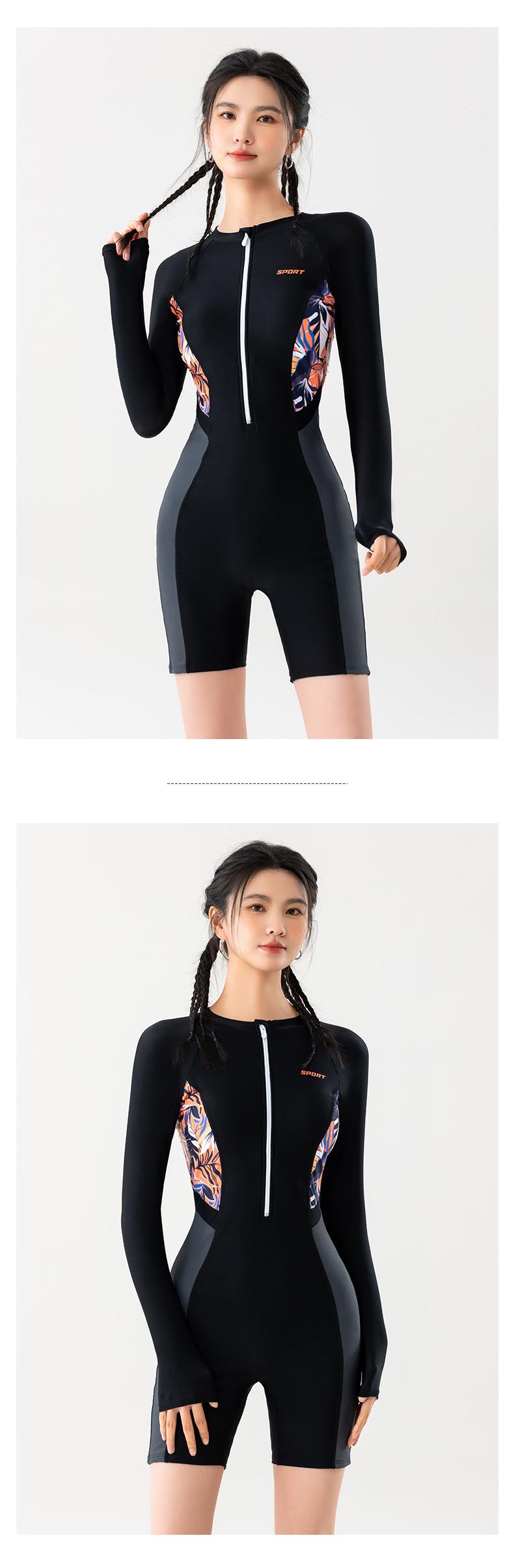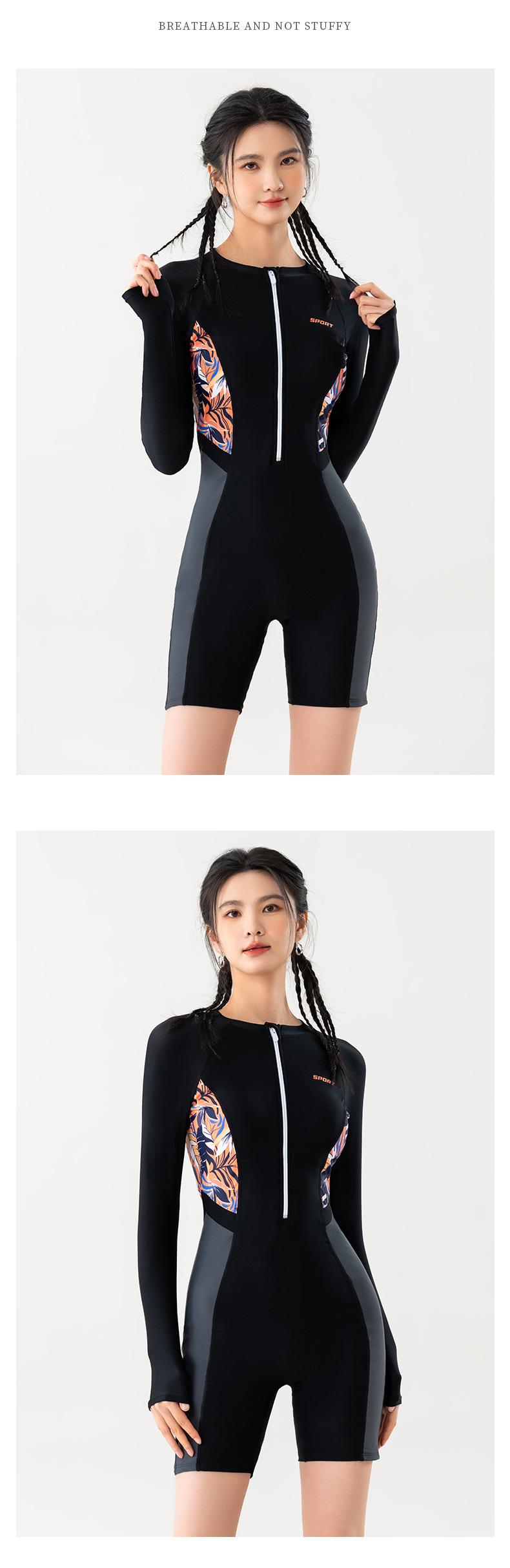 Bañador deportivo de una pieza, novedad de 2024, con estampado de cremallera frontal, sexy, de manga larga, con protección solar, talla grande para mujer.