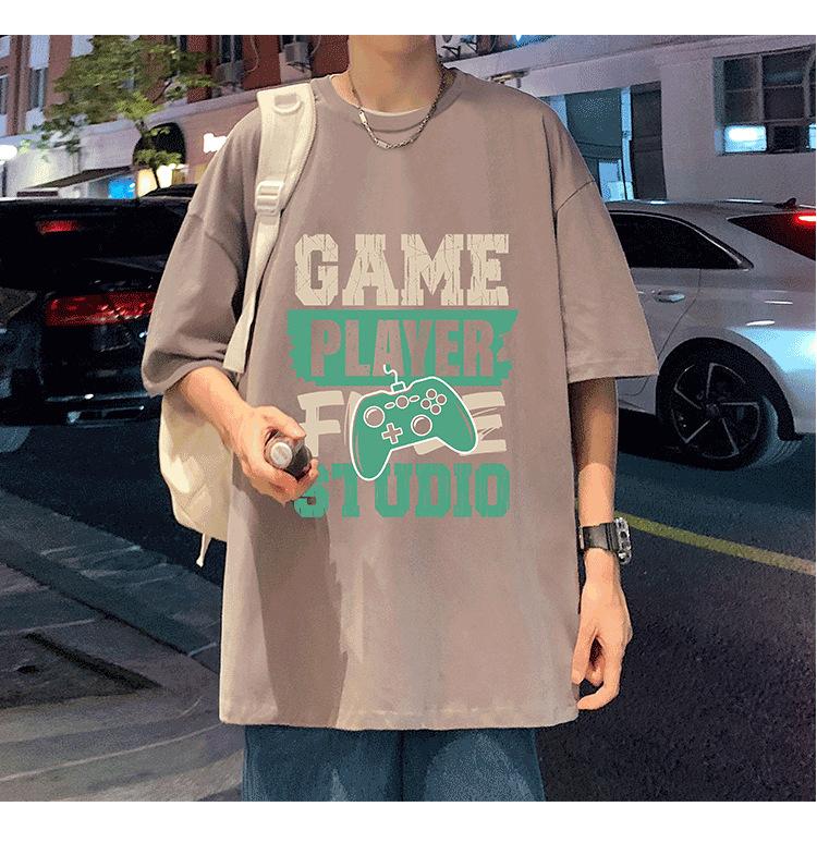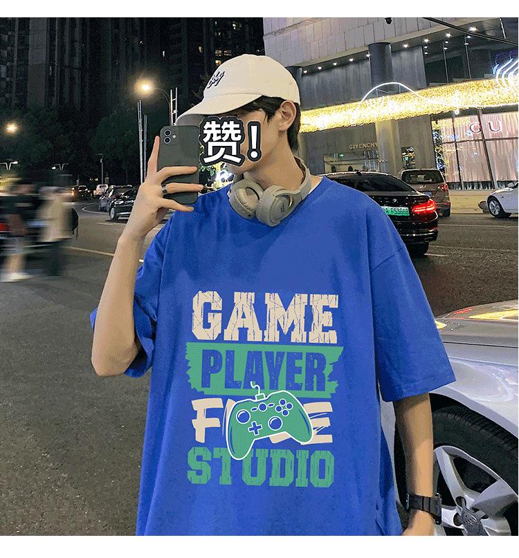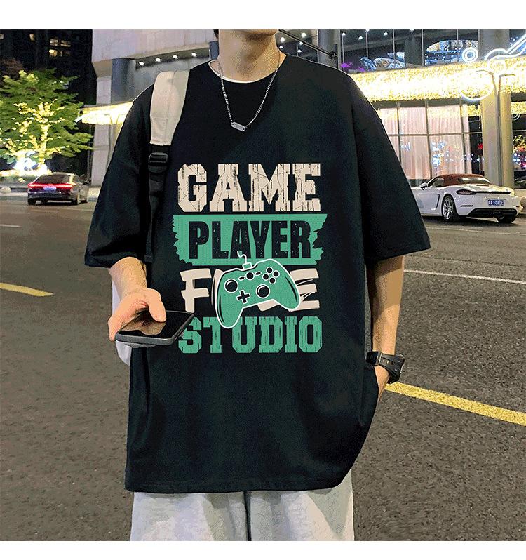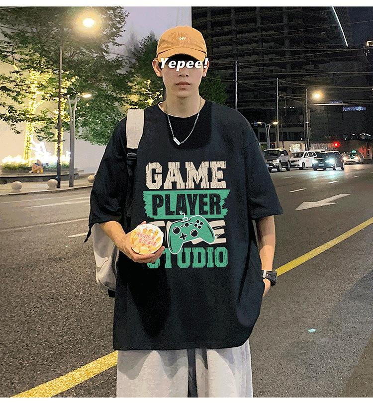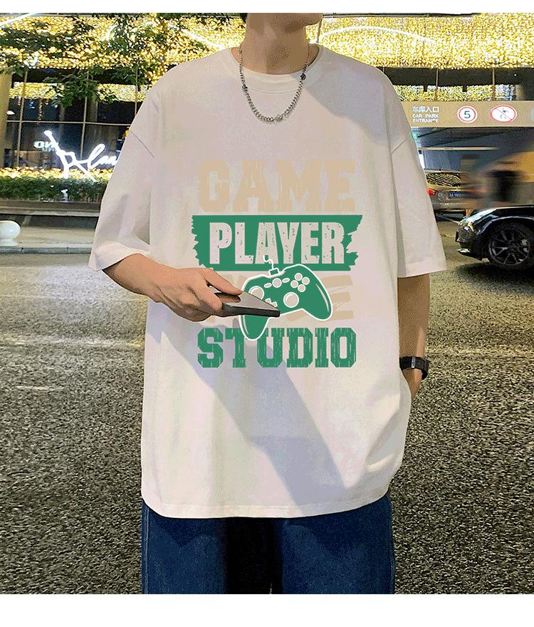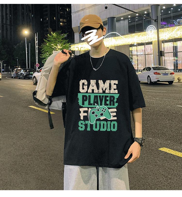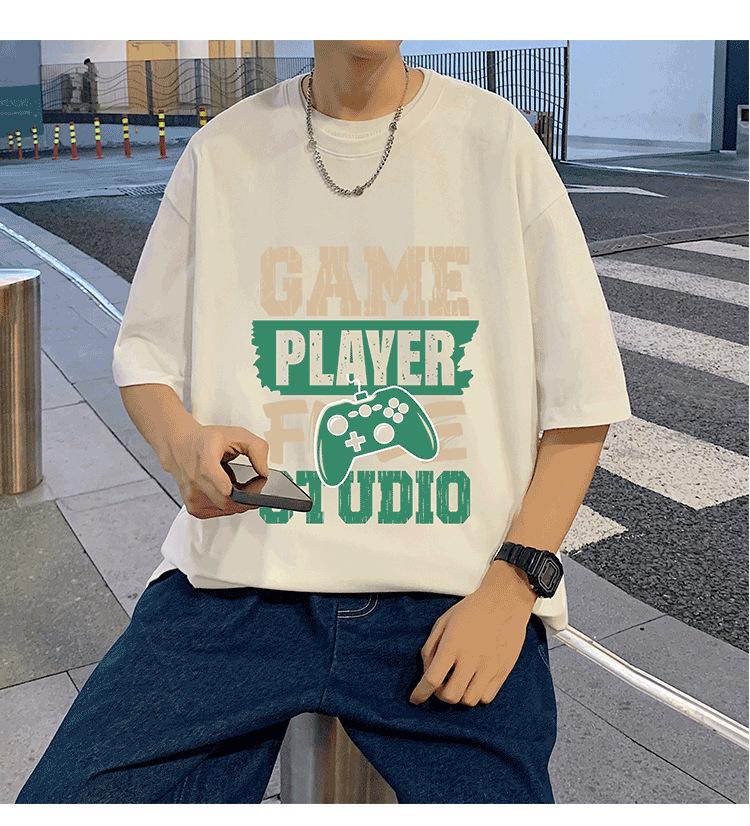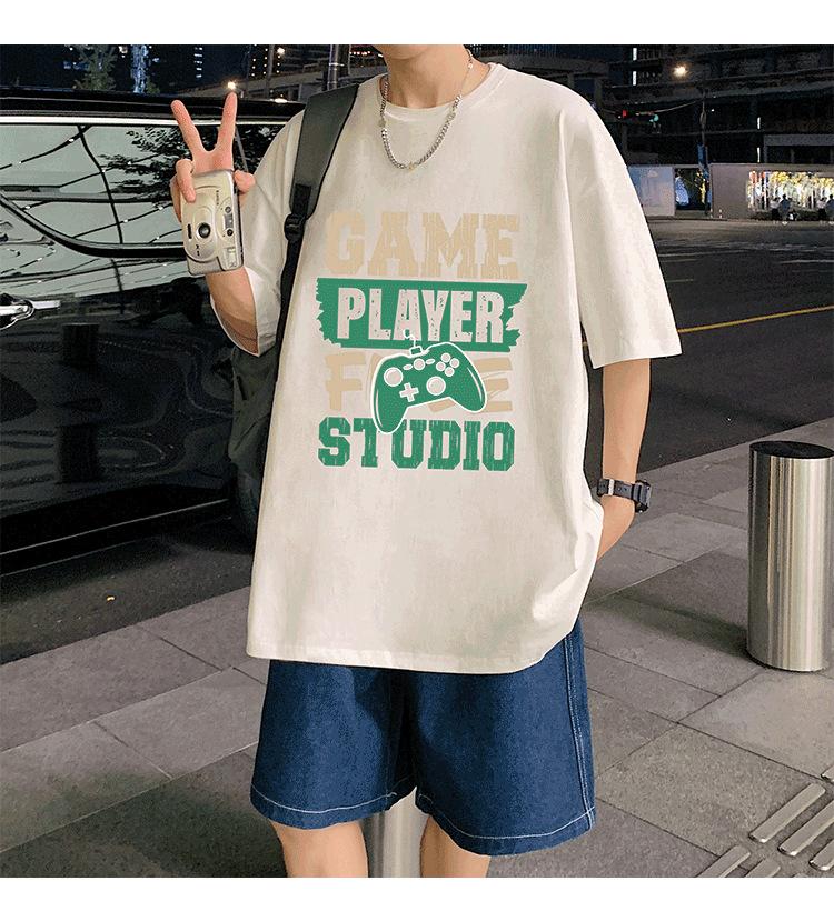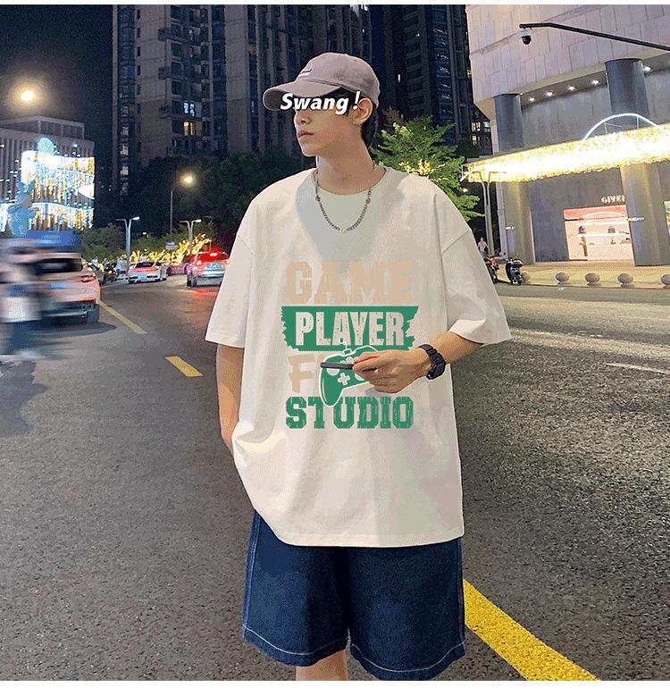 Camiseta de algodón de 220 g, ropa de verano para hombre, camiseta de manga corta de media manga de moda americana de calle principal para hombre