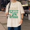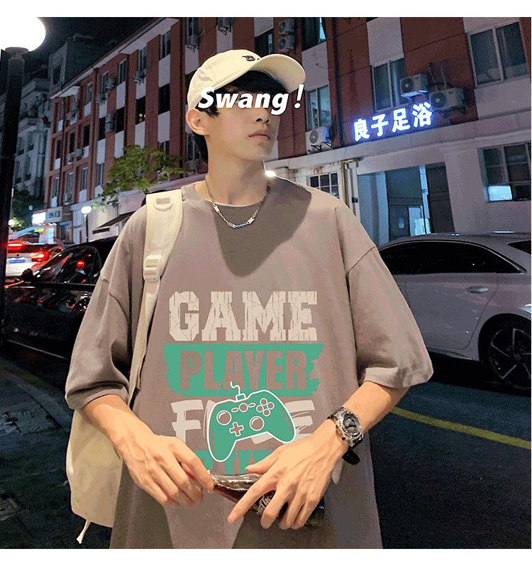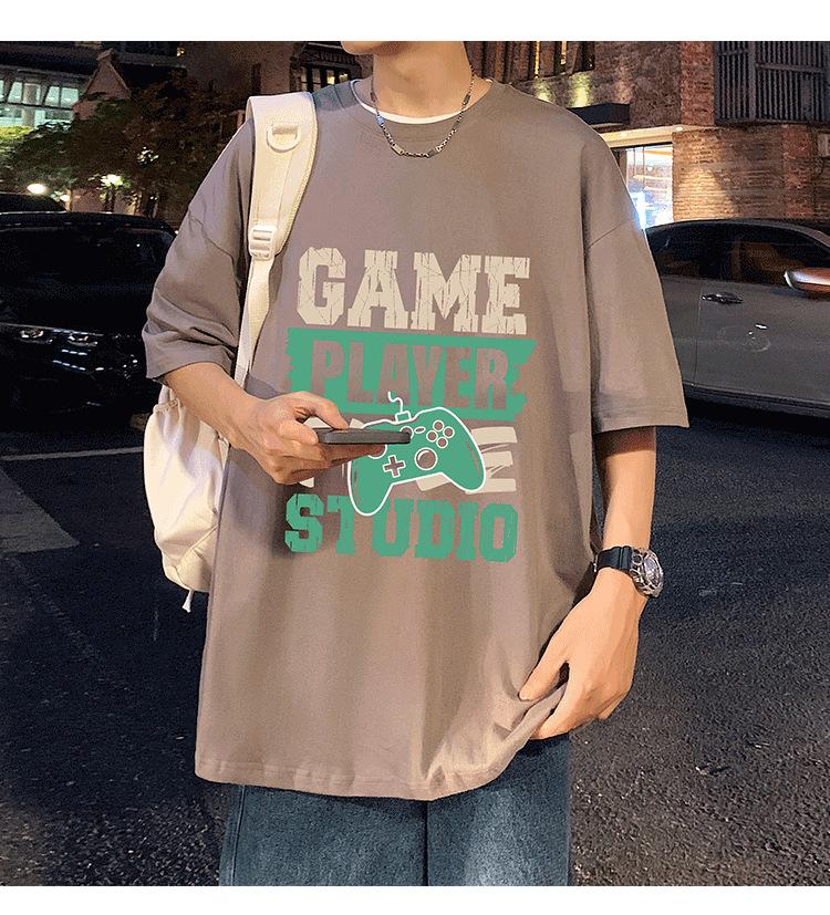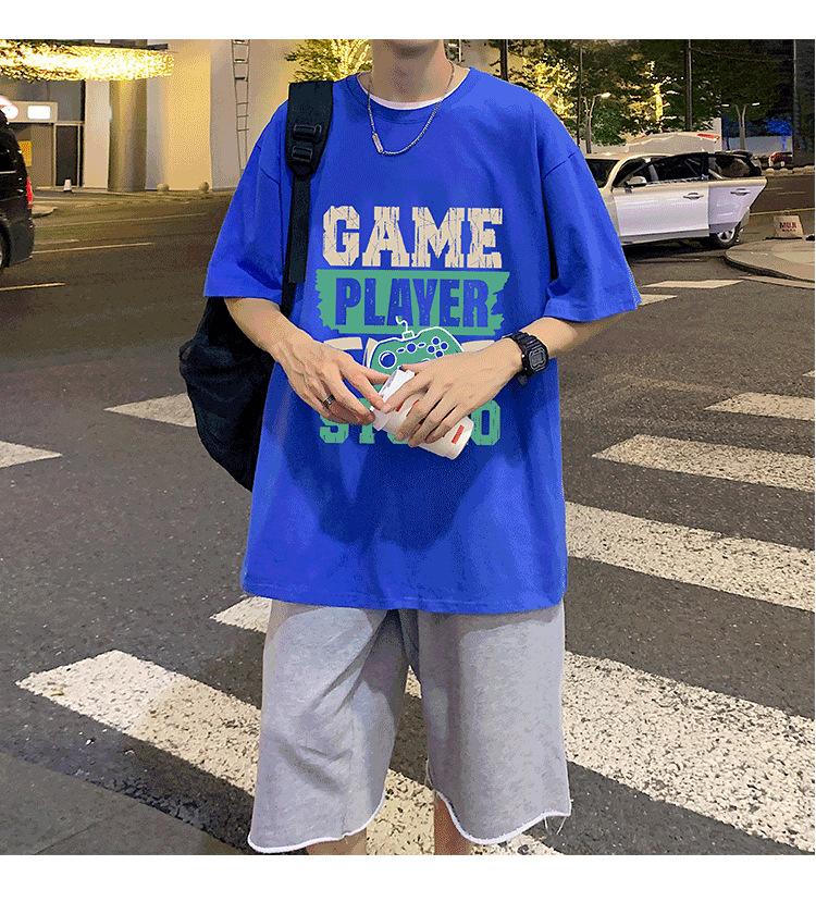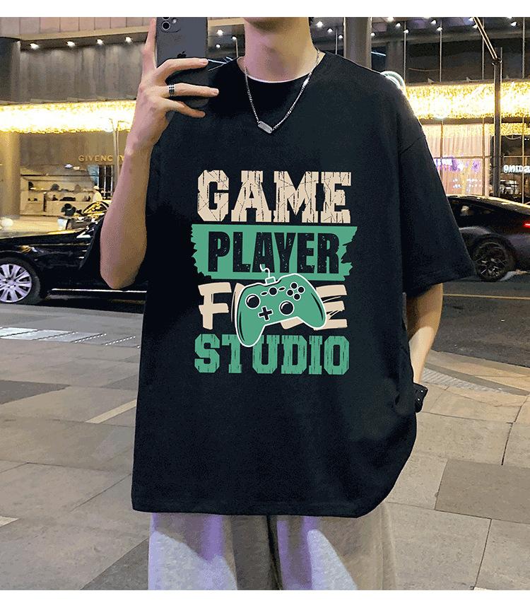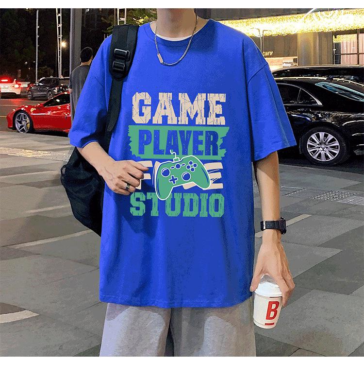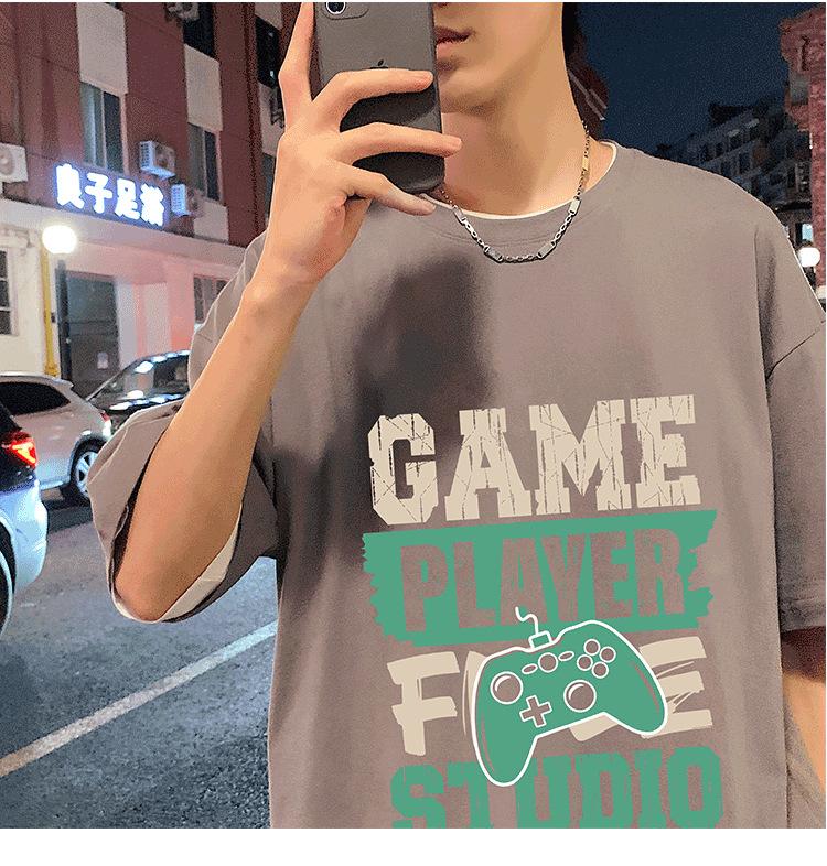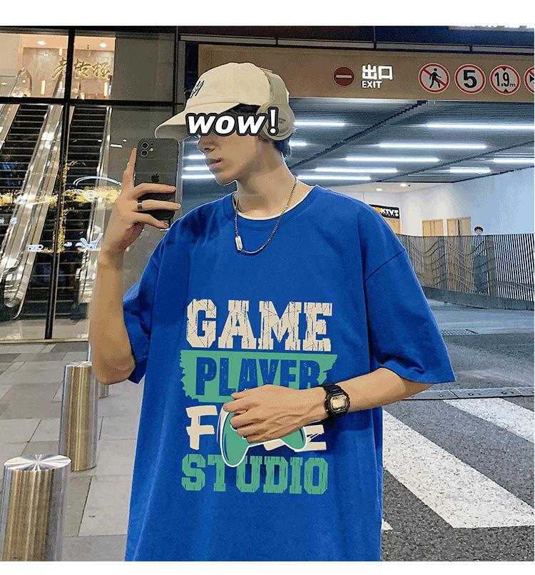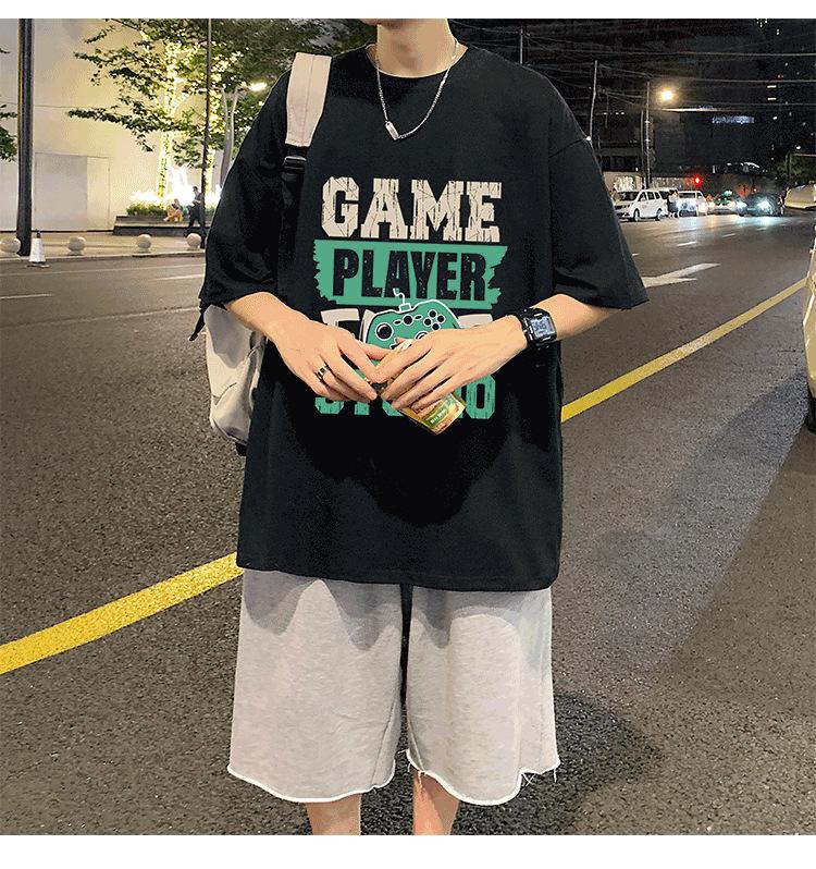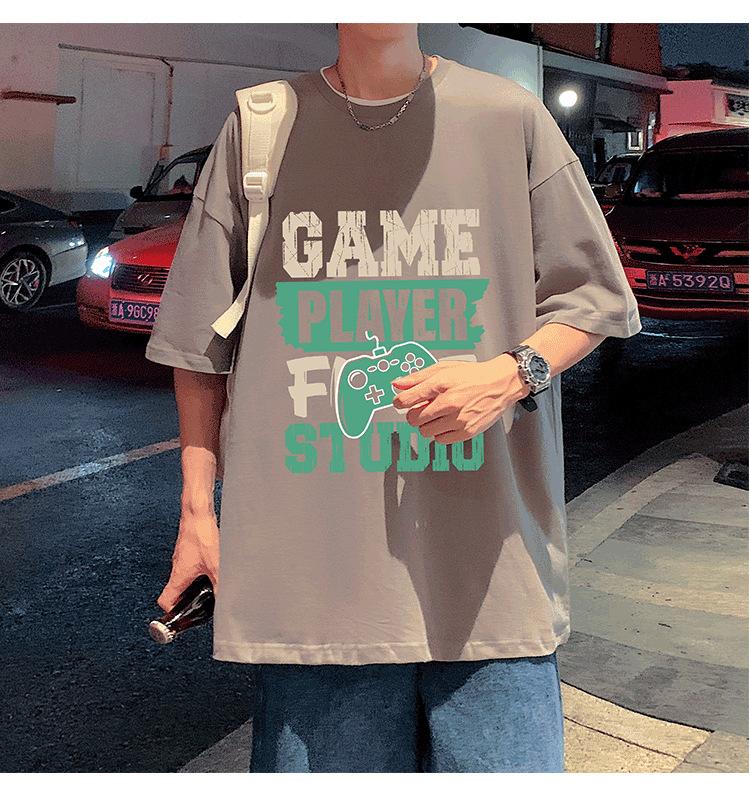 Camiseta de algodón de 220 g, ropa de verano para hombre, camiseta de manga corta de media manga de moda americana de calle principal para hombre