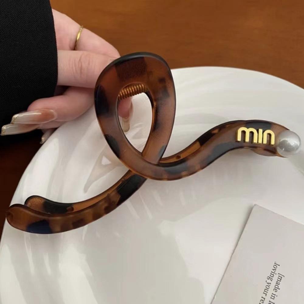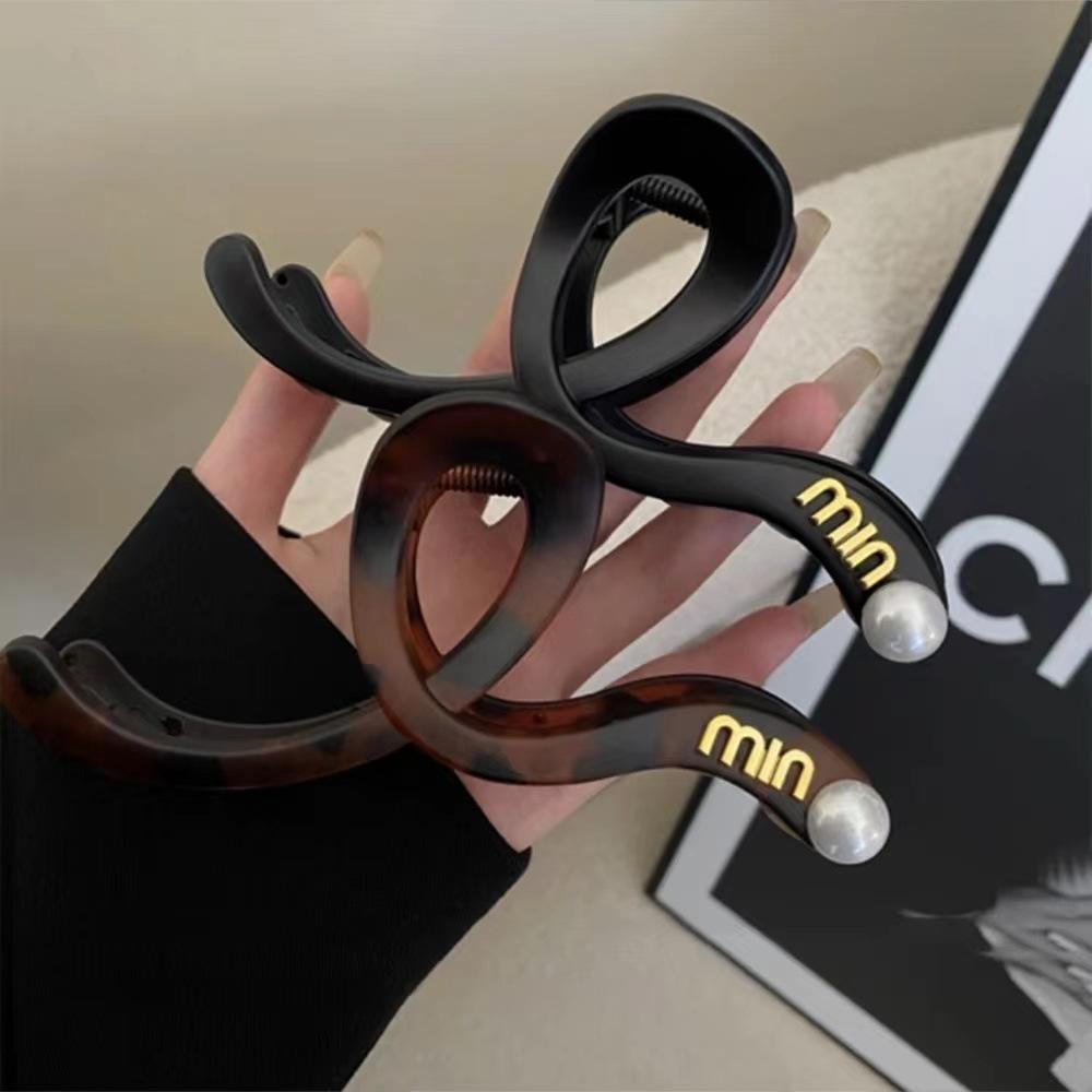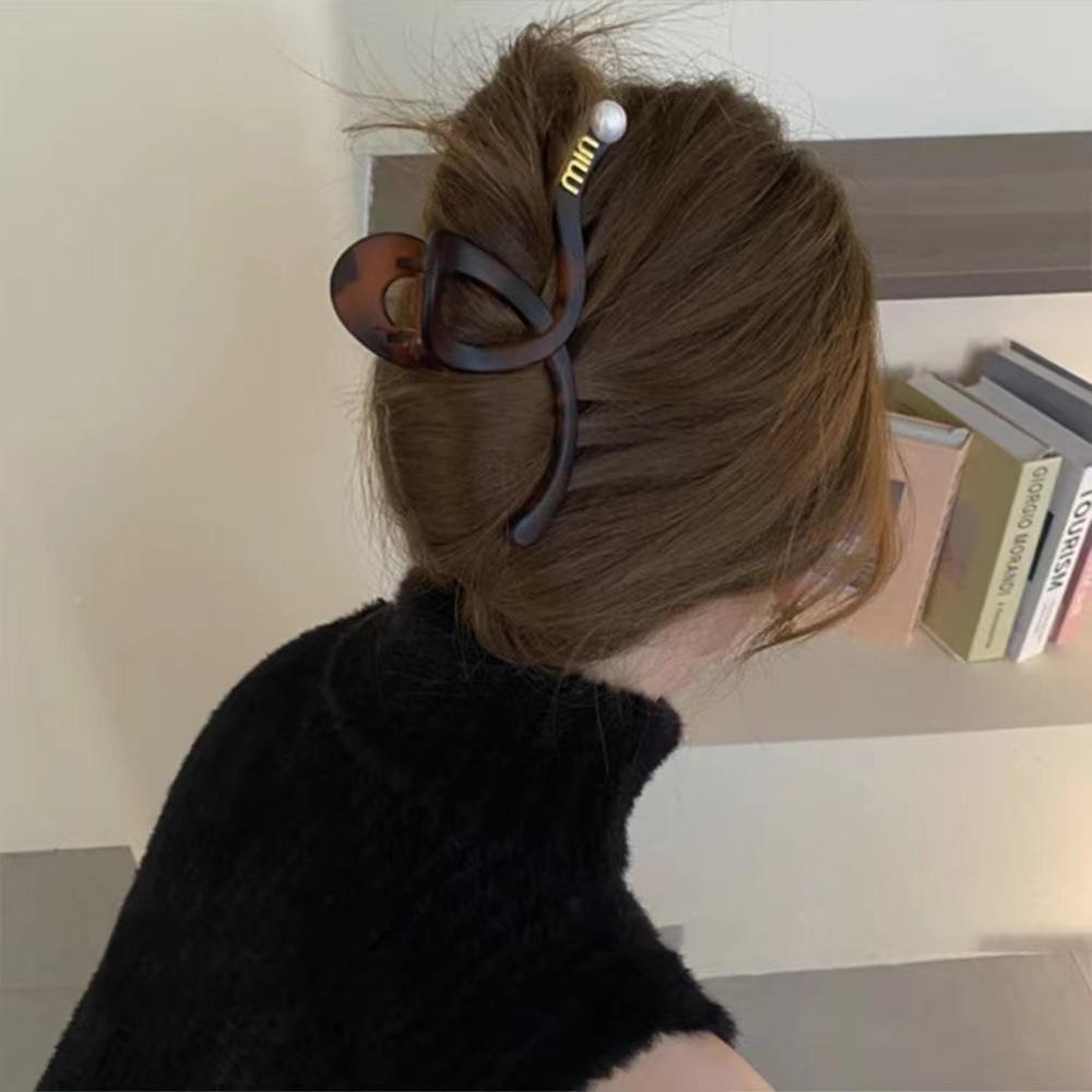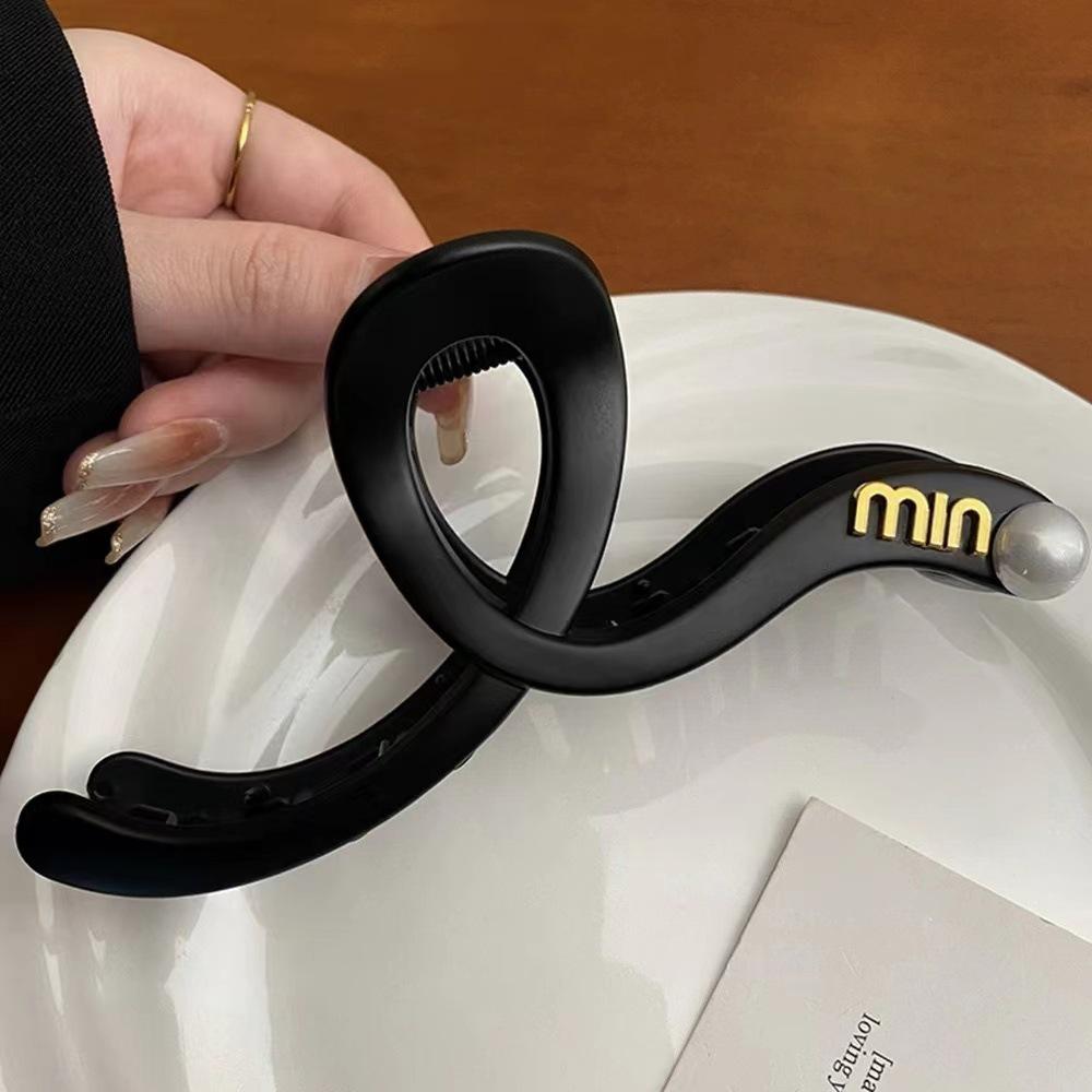 Horquilla de perla esmerilada para mujer, de alta calidad, con clip de tiburón grande, sencilla, negra, para la parte posterior de la cabeza, para recogido de cabello