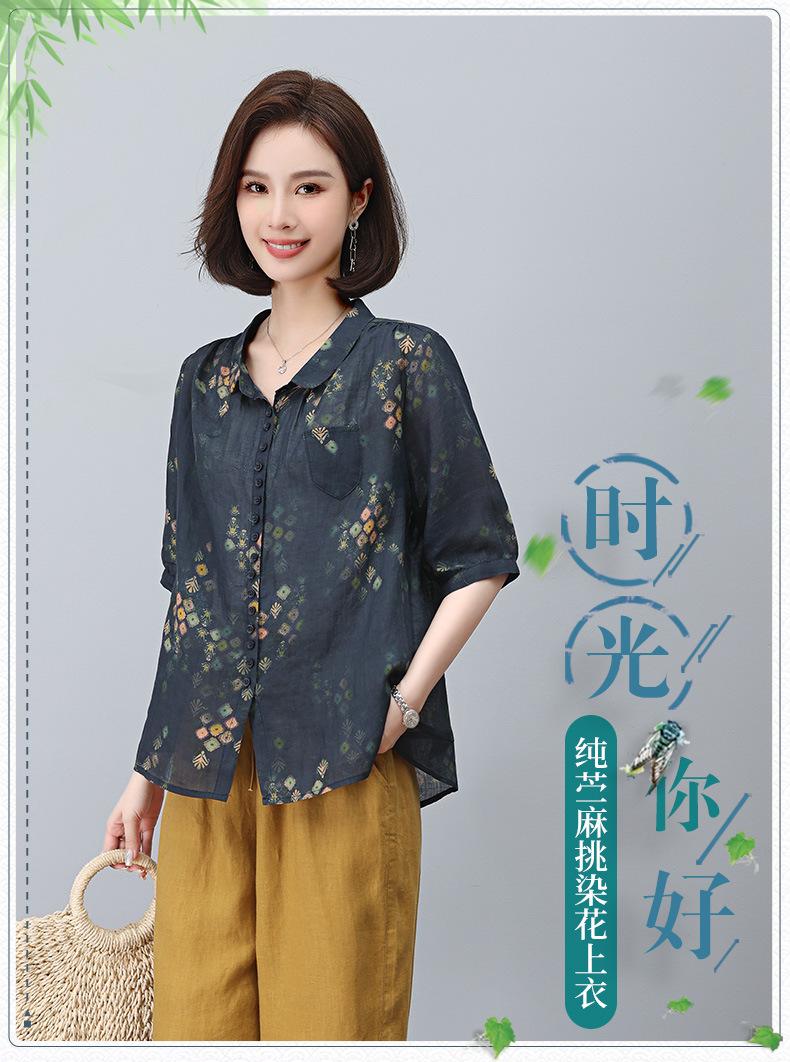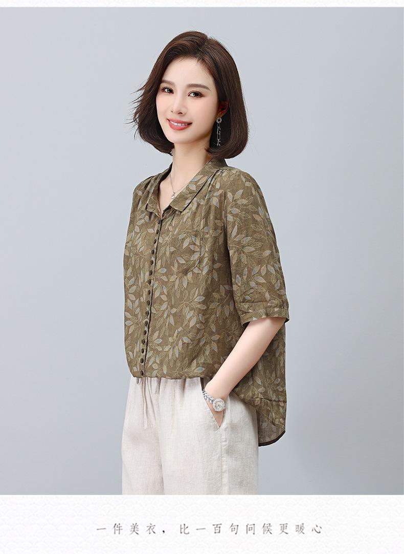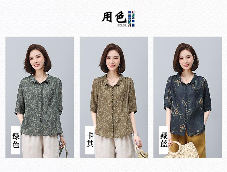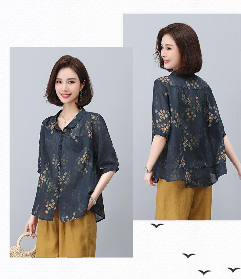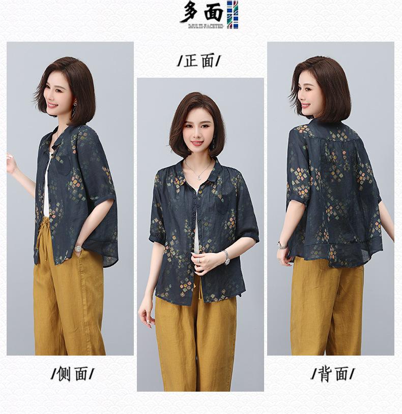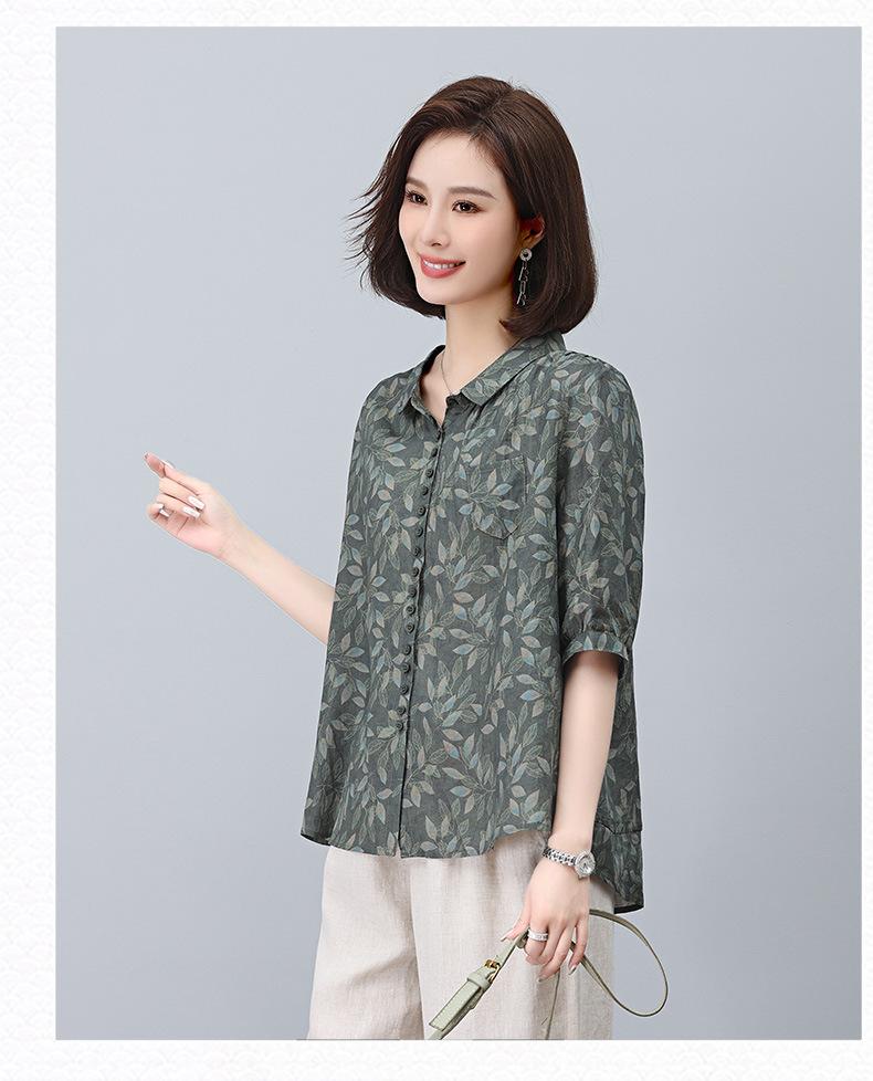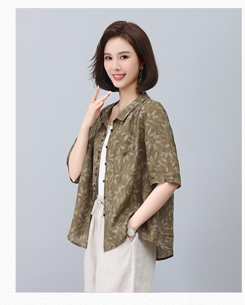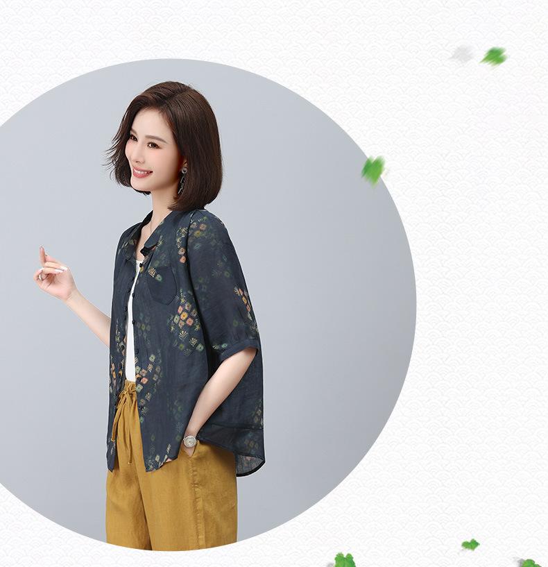 Camisa de Ramio Puro para Mujer Verano Manga Corta 2024 Nueva Moda Suelta Elegante Pequeño Cárdigan de Madre Top Floral