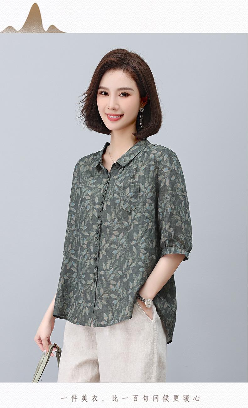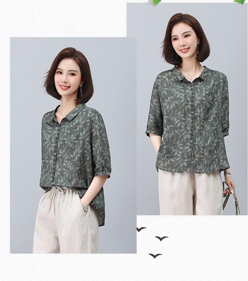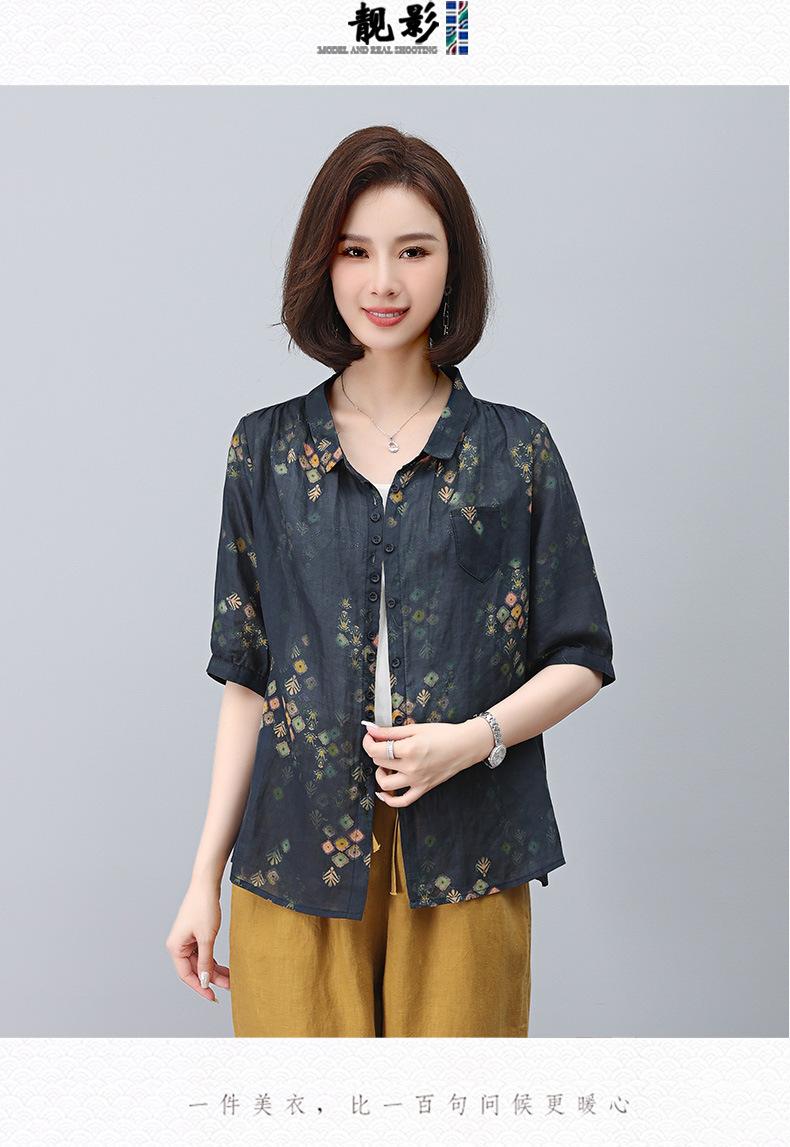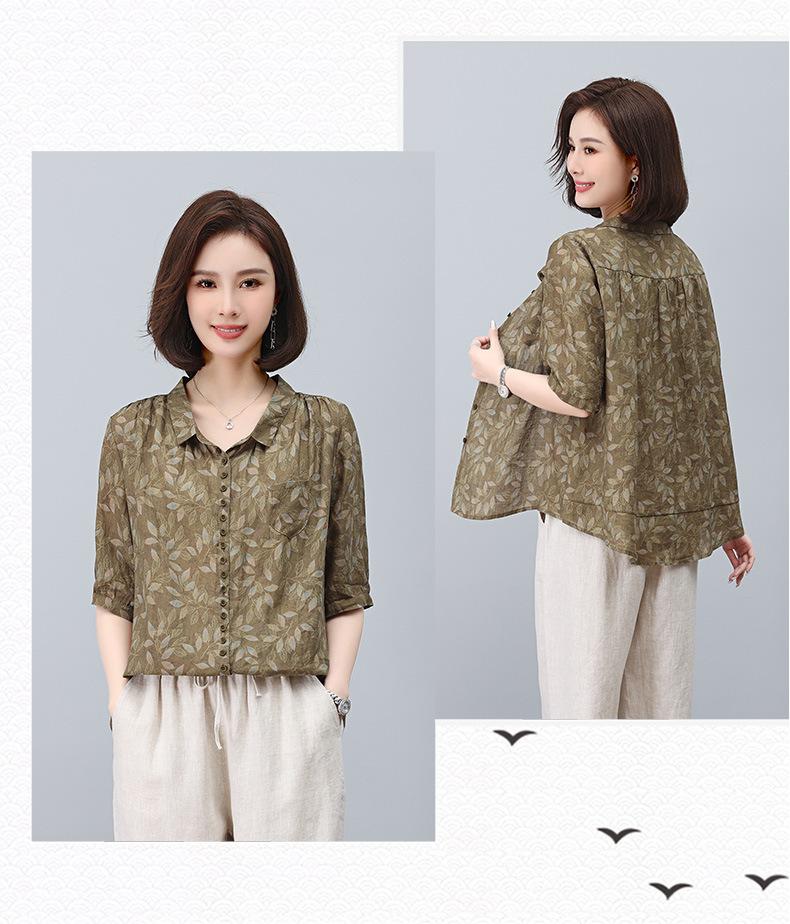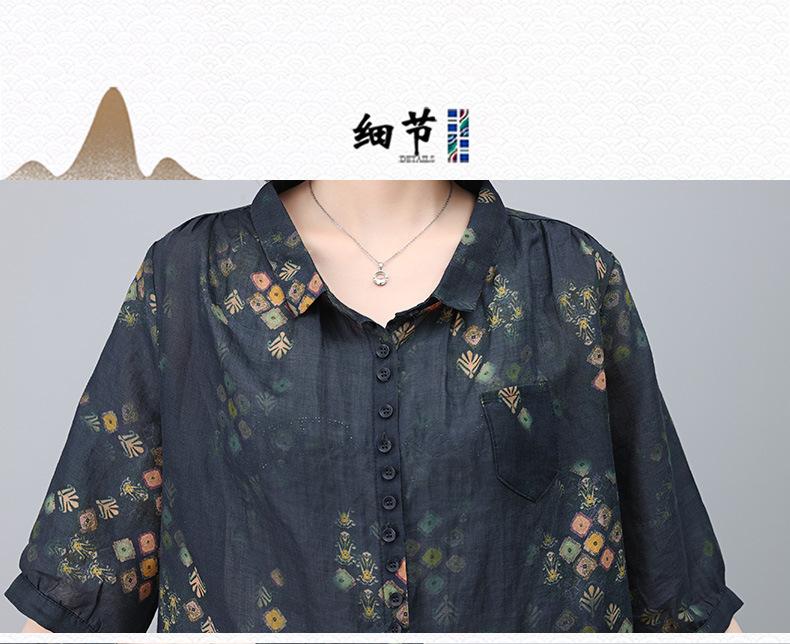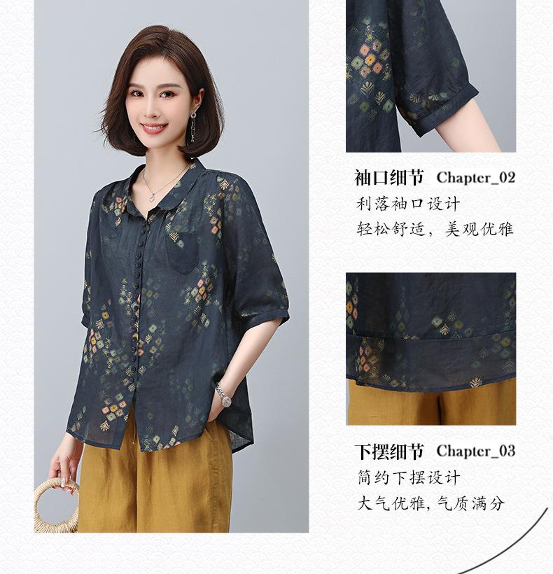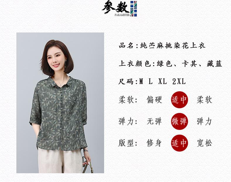 Camisa de Ramio Puro para Mujer Verano Manga Corta 2024 Nueva Moda Suelta Elegante Pequeño Cárdigan de Madre Top Floral