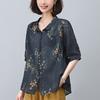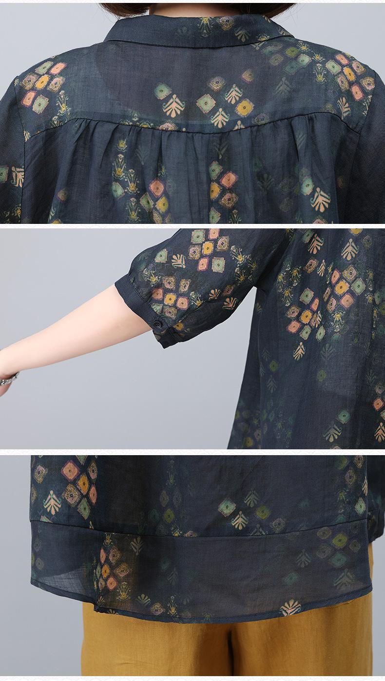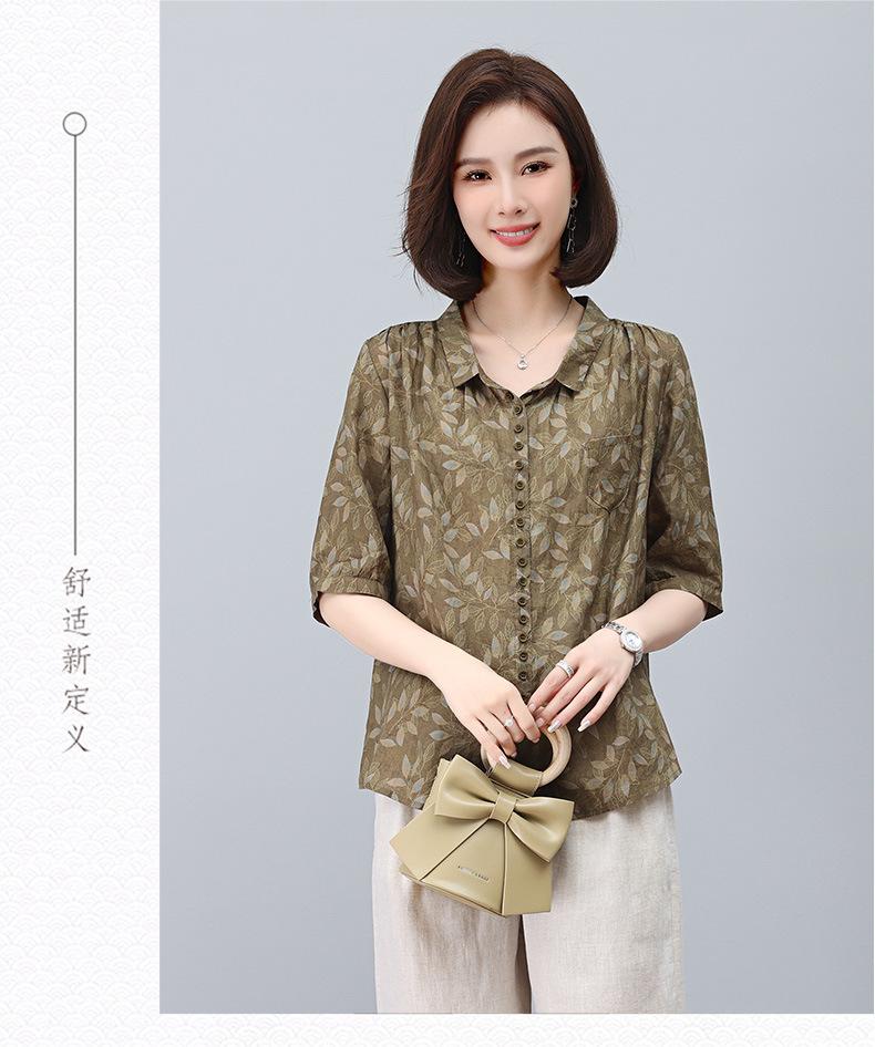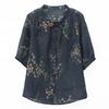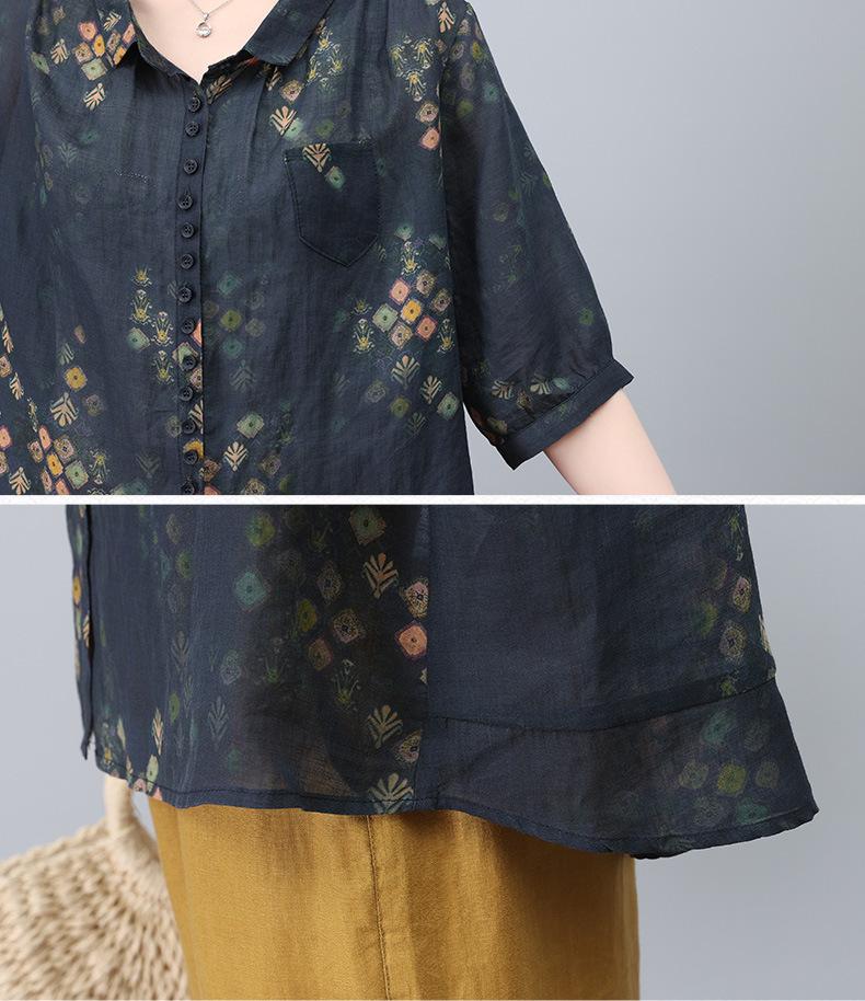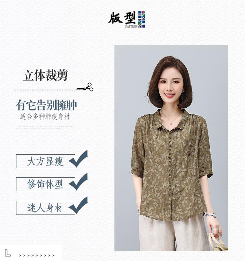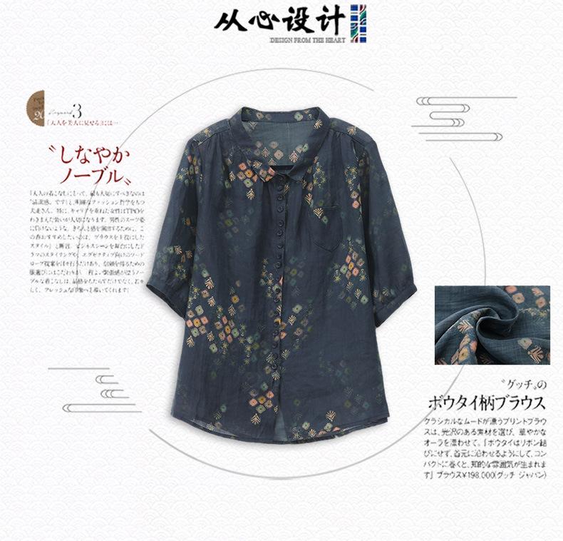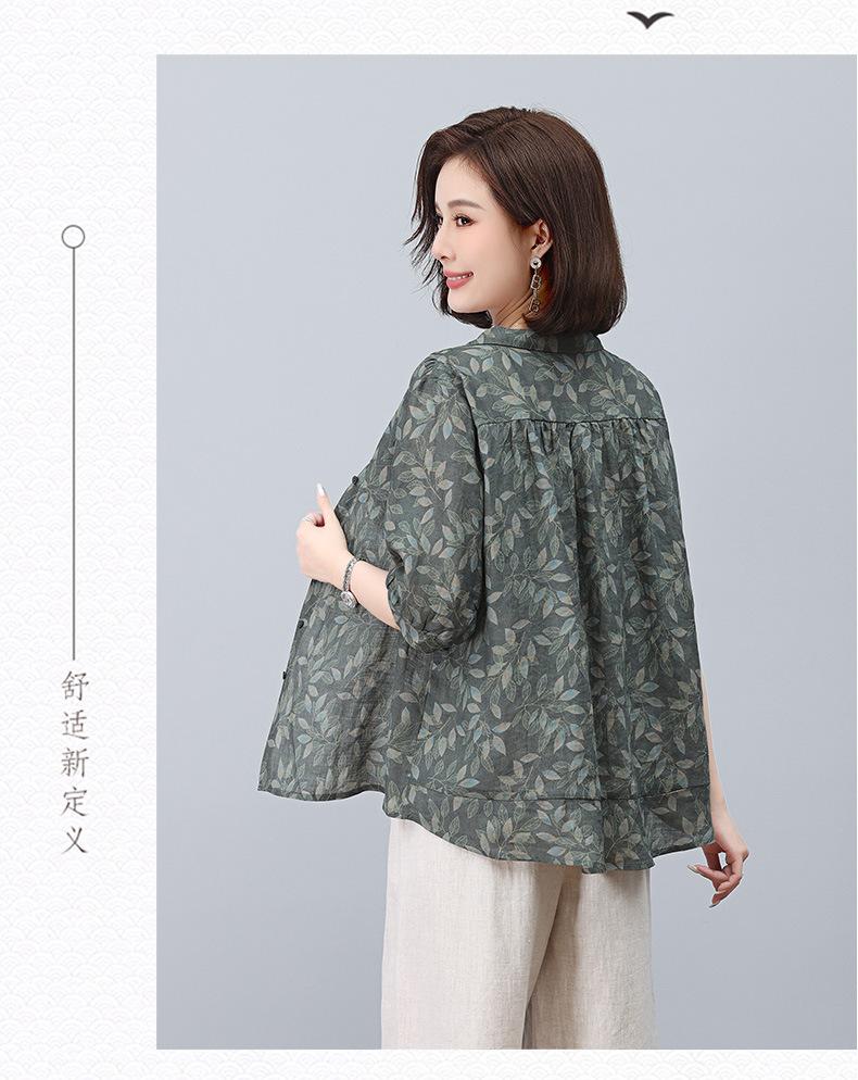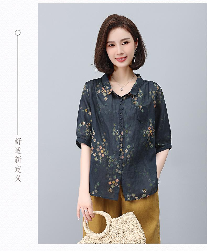 Camisa de Ramio Puro para Mujer Verano Manga Corta 2024 Nueva Moda Suelta Elegante Pequeño Cárdigan de Madre Top Floral