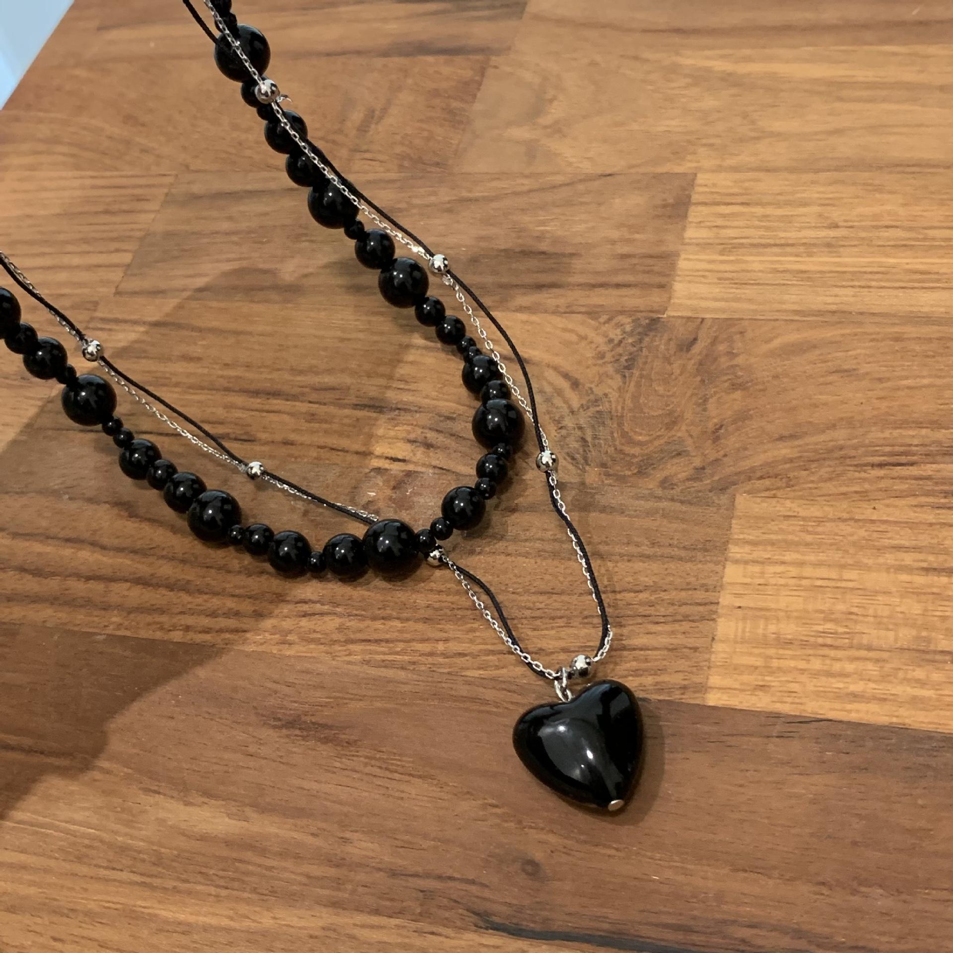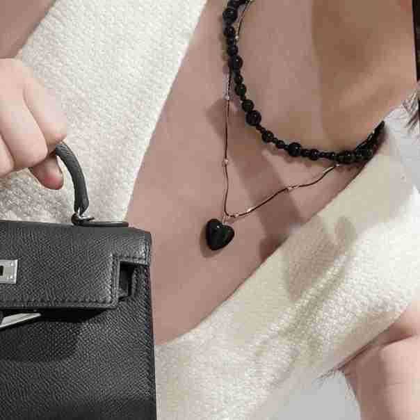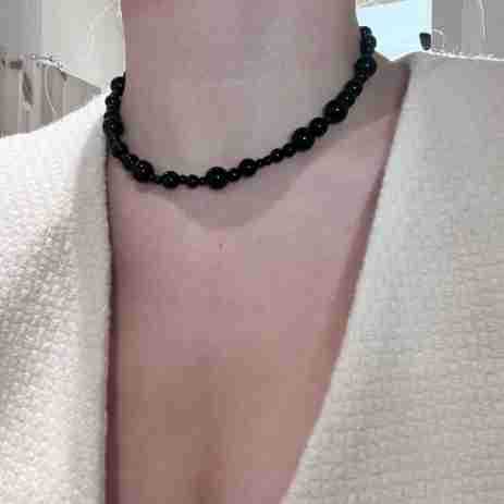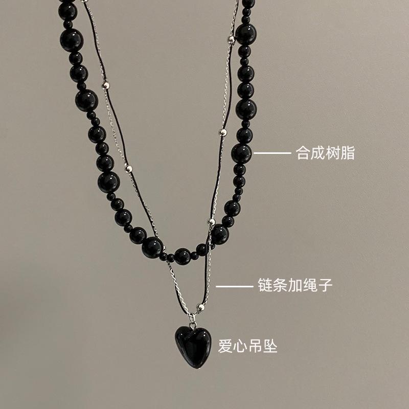 Collar de Amor estilo coreano simple hecho a mano con cuentas resina sintética negro personalidad retro moda collar cadena clavícula
