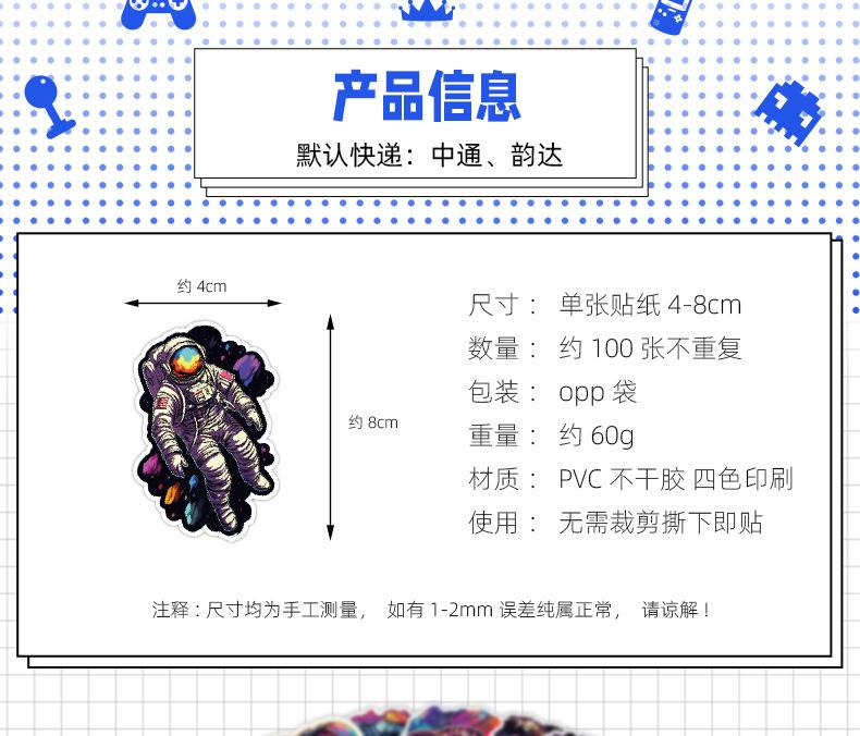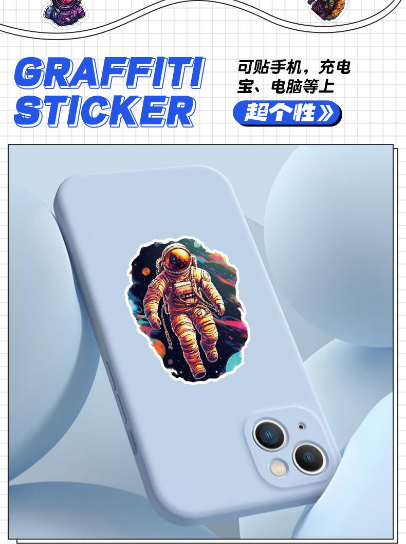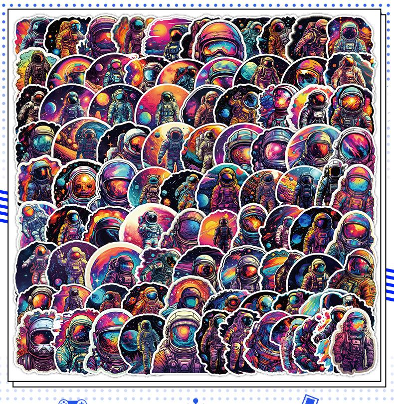 100 Pegatinas Graffiti de Astronautas Equipaje Refrigerador Teléfono Móvil Pegatinas de Decoración Impermeables Creativas Pegatinas de Papelería para Niños