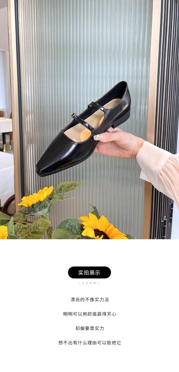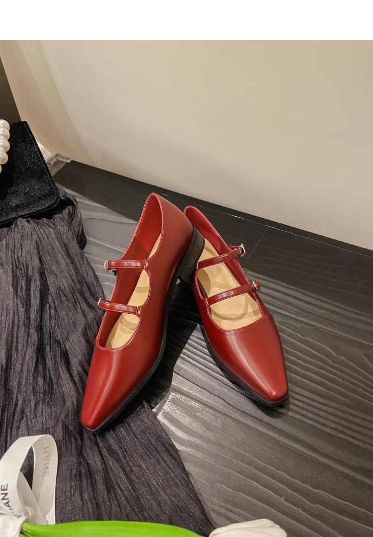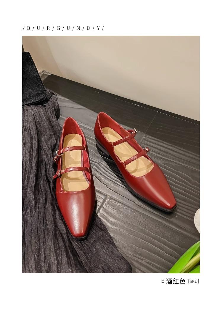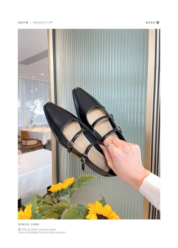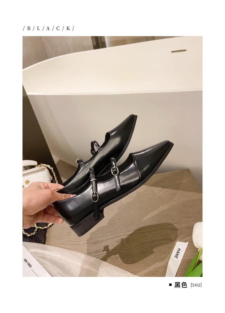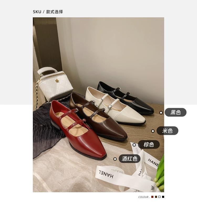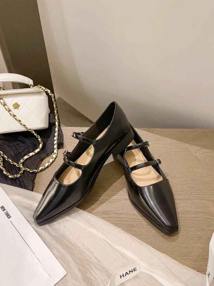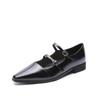 Zapatos Mary Jane de punta para mujer para uso exterior, estilo retro francés de una línea, boca poco profunda, zapatos pequeños de cuero, talla grande para mujer, zapatos de mujer 2024 nuevo estilo