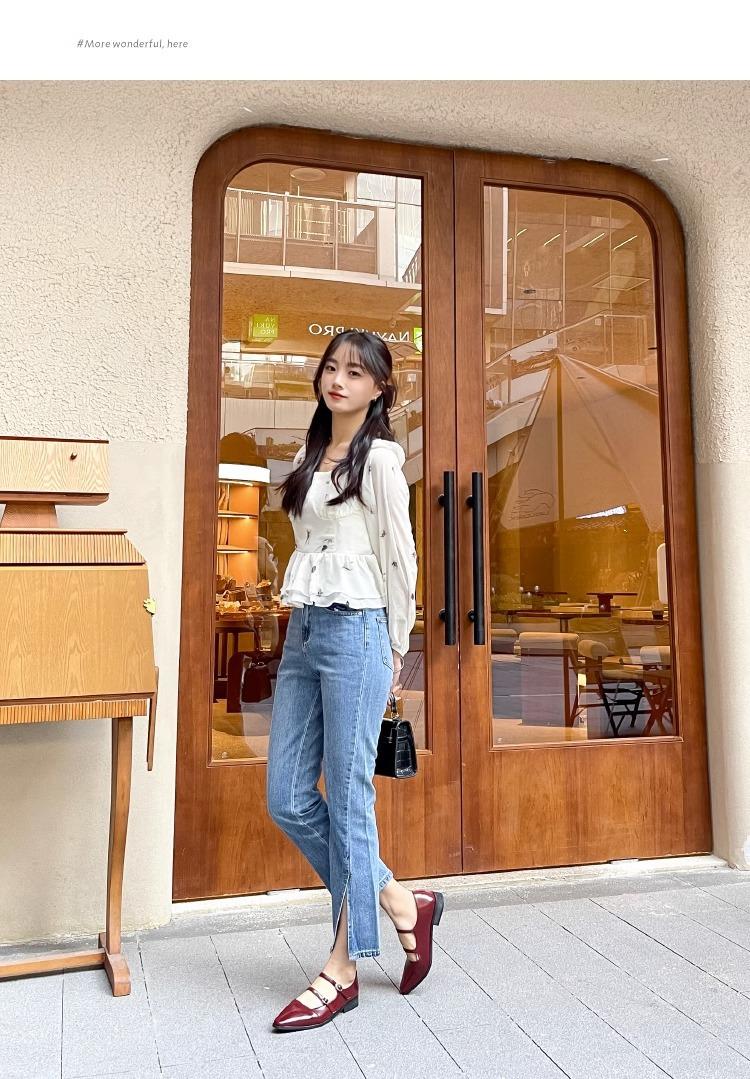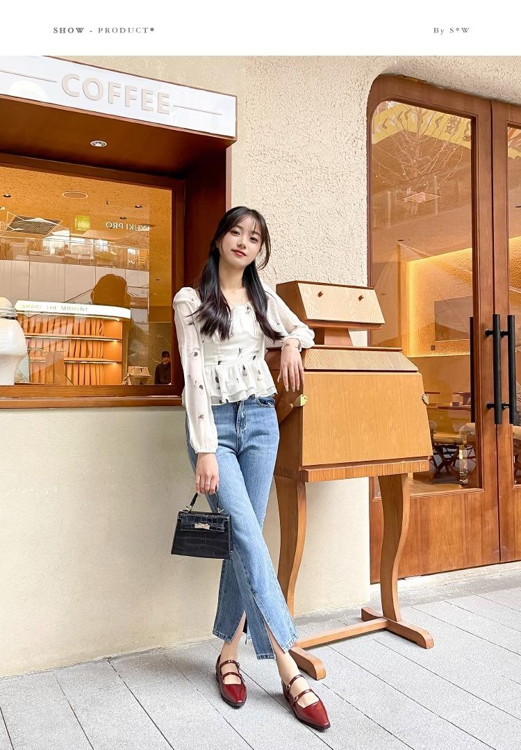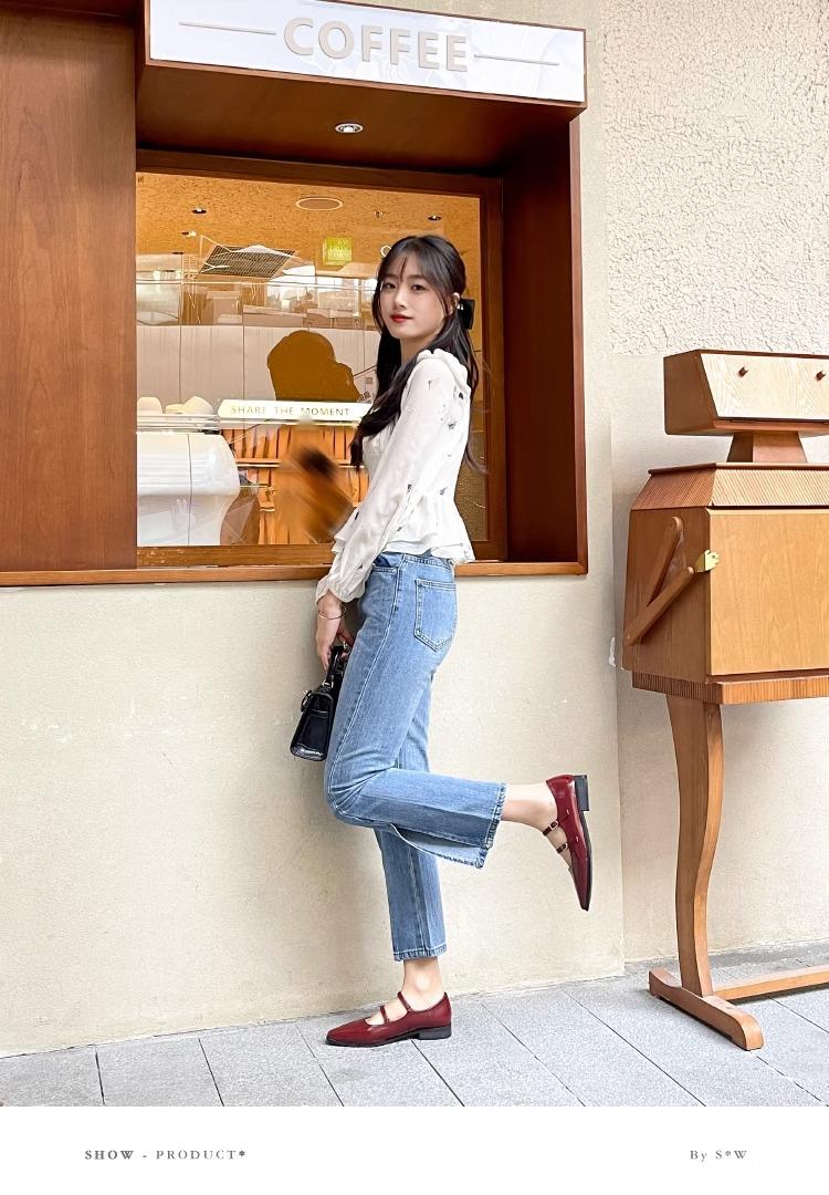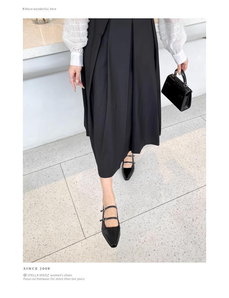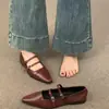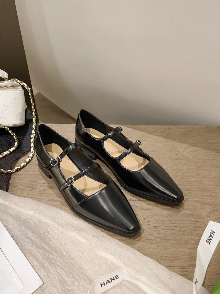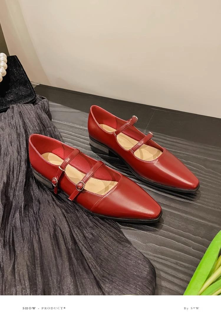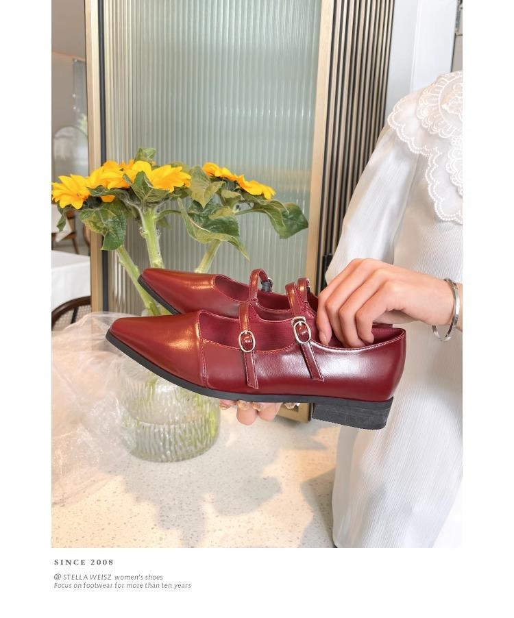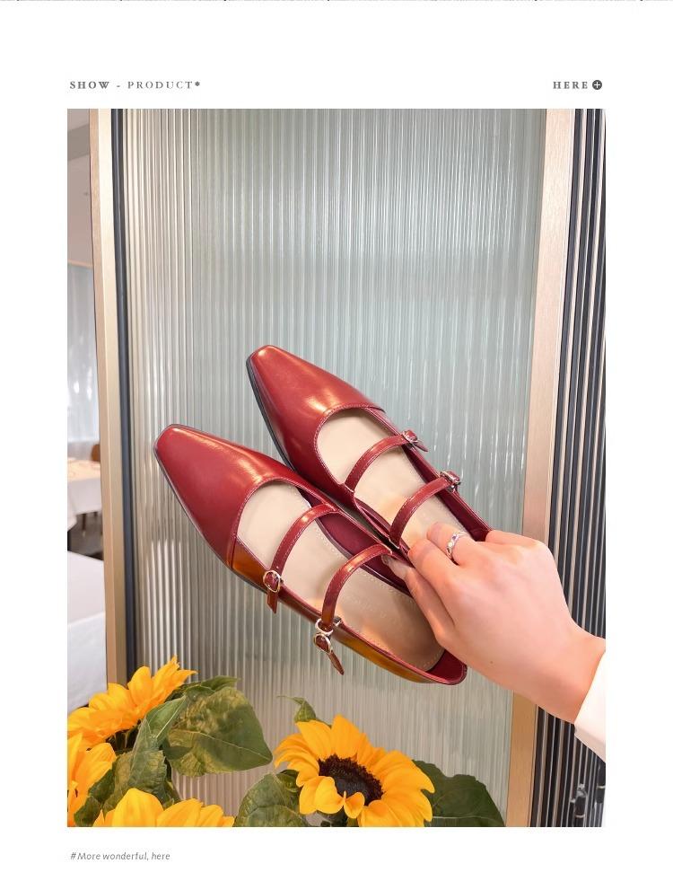 Zapatos Mary Jane de punta para mujer para uso exterior, estilo retro francés de una línea, boca poco profunda, zapatos pequeños de cuero, talla grande para mujer, zapatos de mujer 2024 nuevo estilo