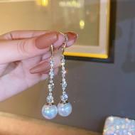 Aretes largos de borla de perlas de temperamento de lujo ligero Aretes de celebridad francesa de alta gama Aretes de nicho de moda de celebridad de internet femenina