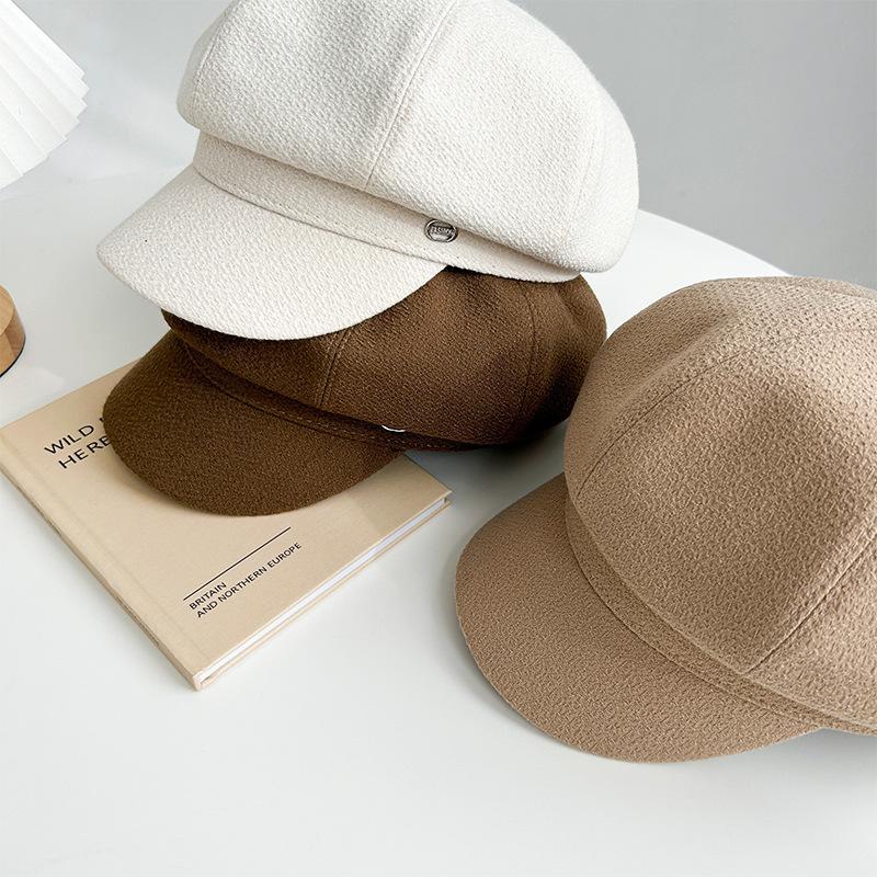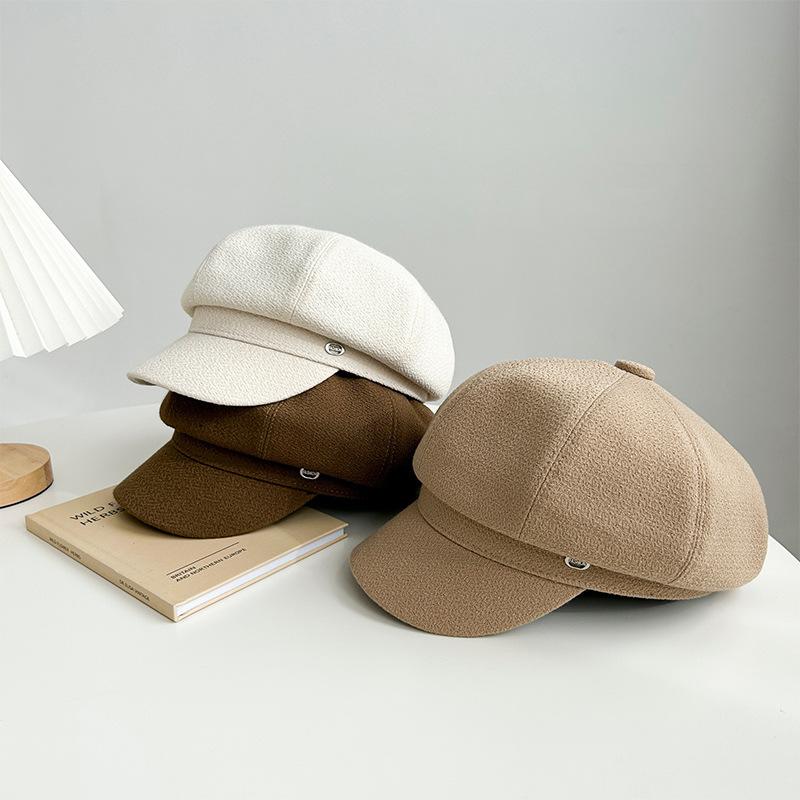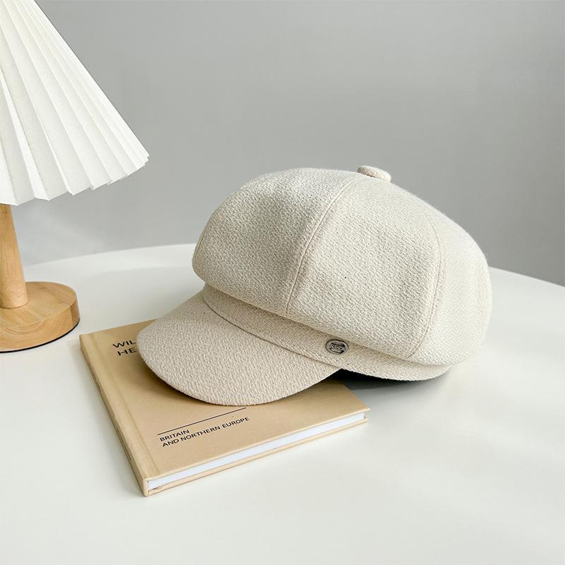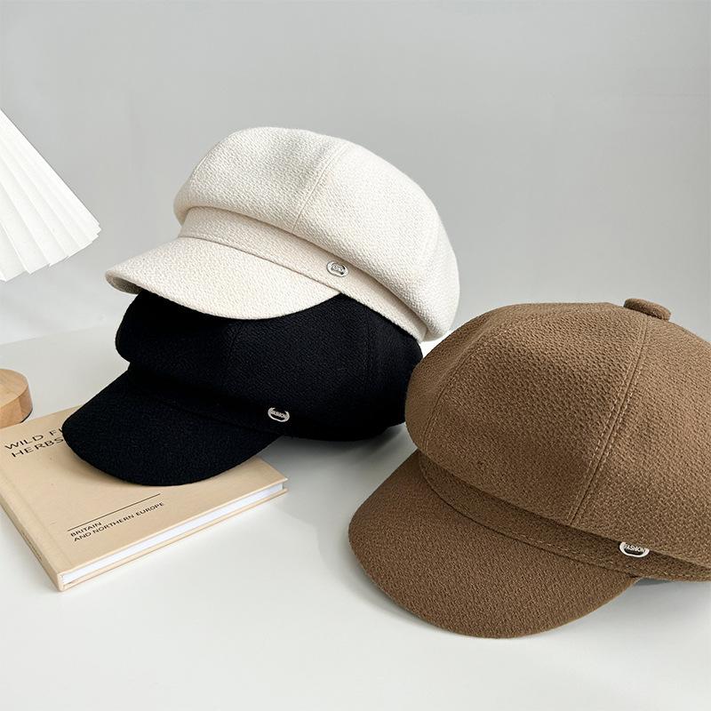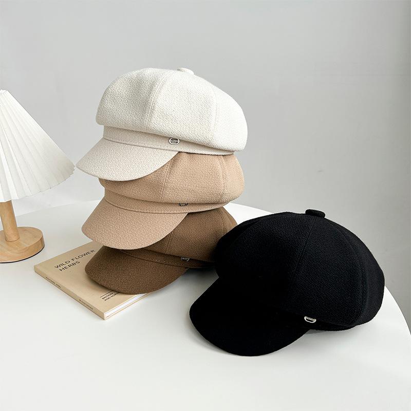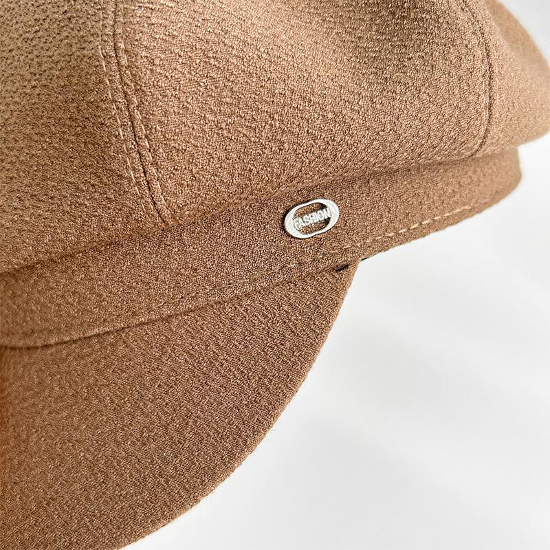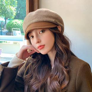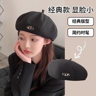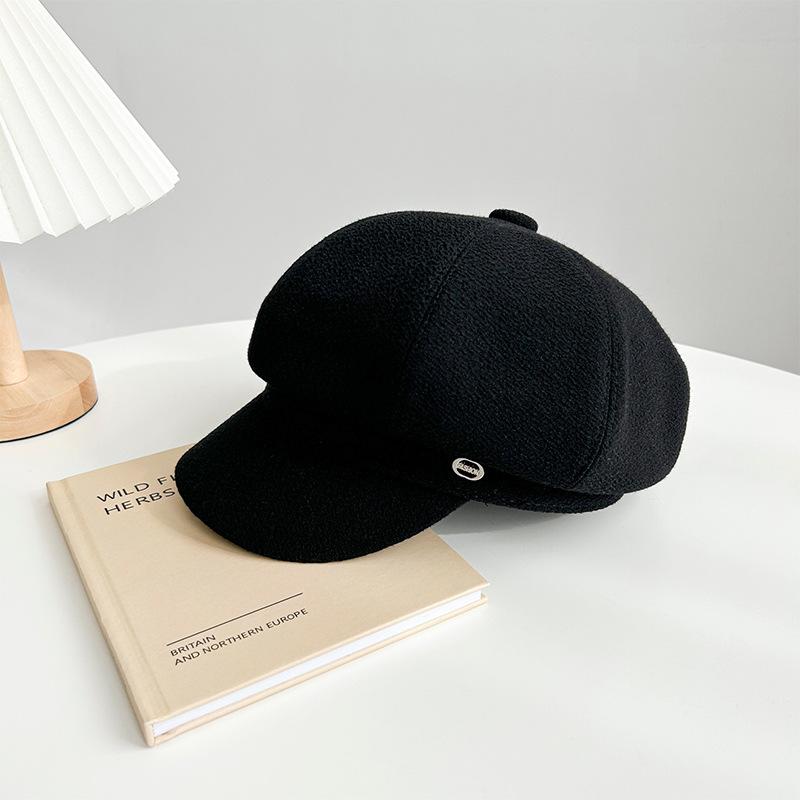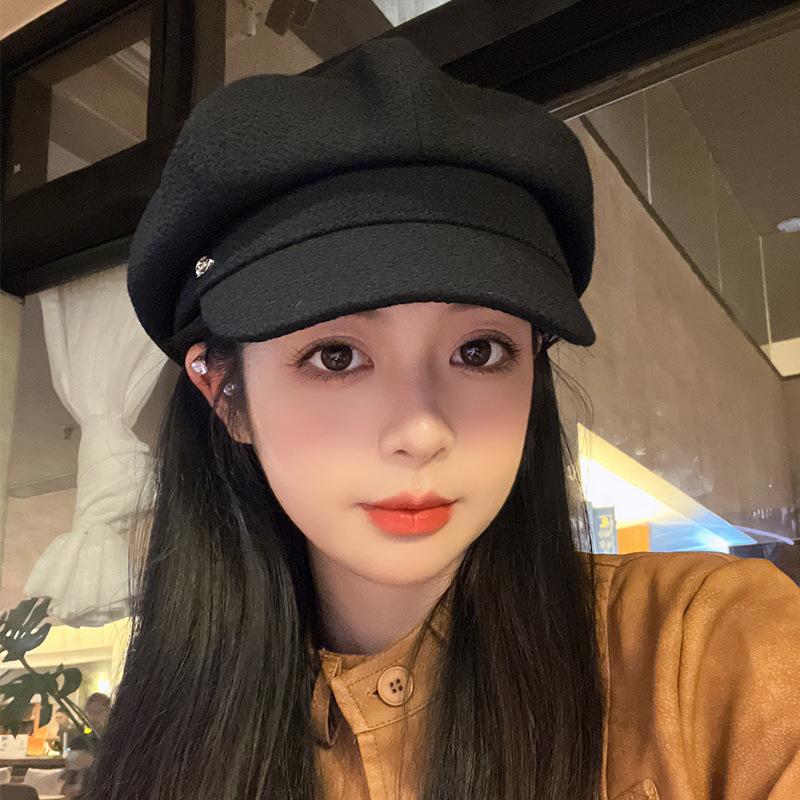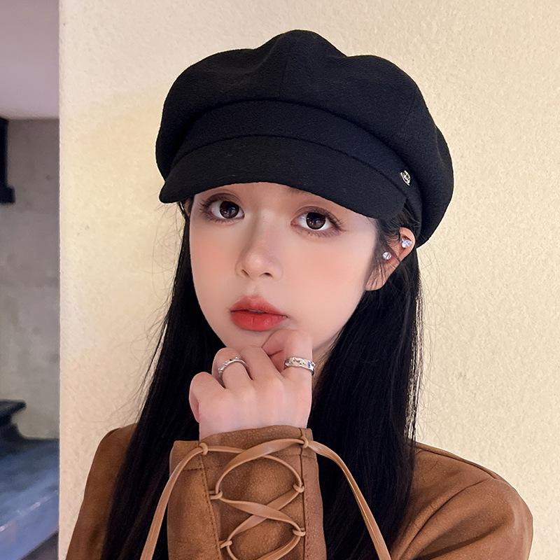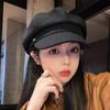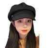 Gorra octogonal negra de etiqueta pequeña de primavera y otoño, temperamento femenino, estilo británico que combina con todo, gorra de vendedor de periódicos con lengüeta de pato, boina de pintor pequeña con cara de espectáculo