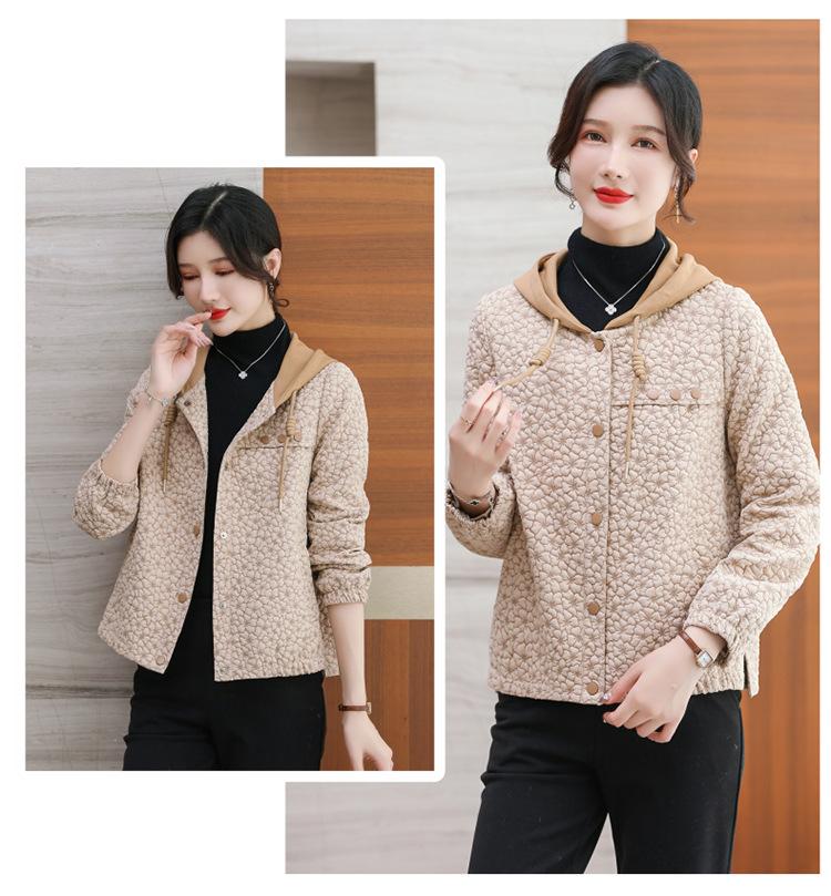 Abrigo corto estilo occidental para mamás pequeñas, primavera y otoño, para mujeres de mediana edad y mayores, 2023, nuevo abrigo fino acolchado de algodón