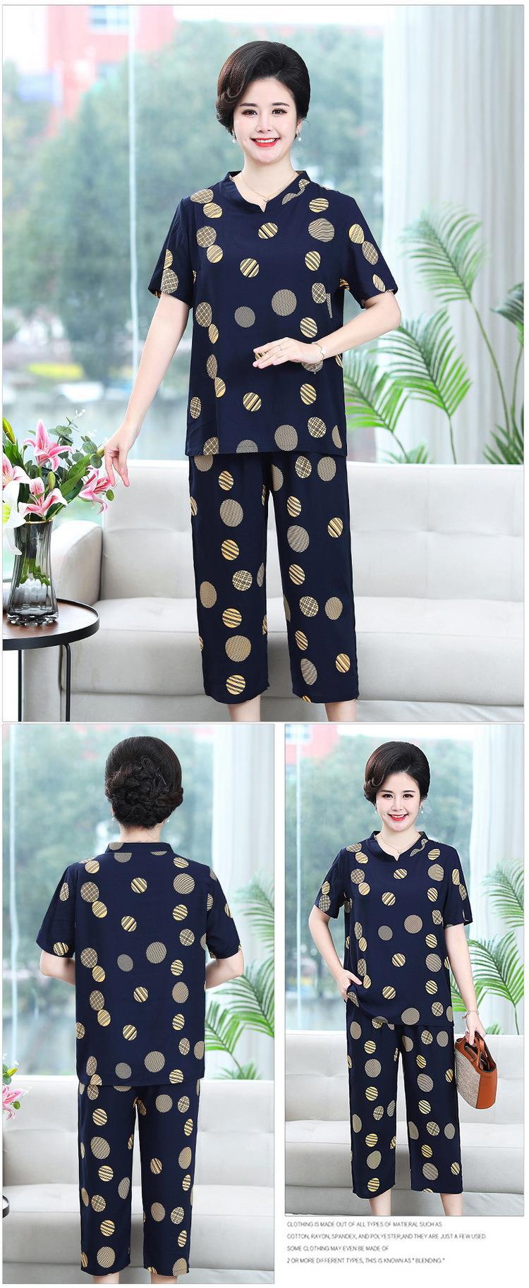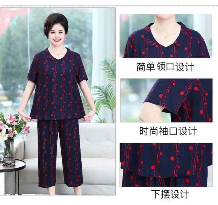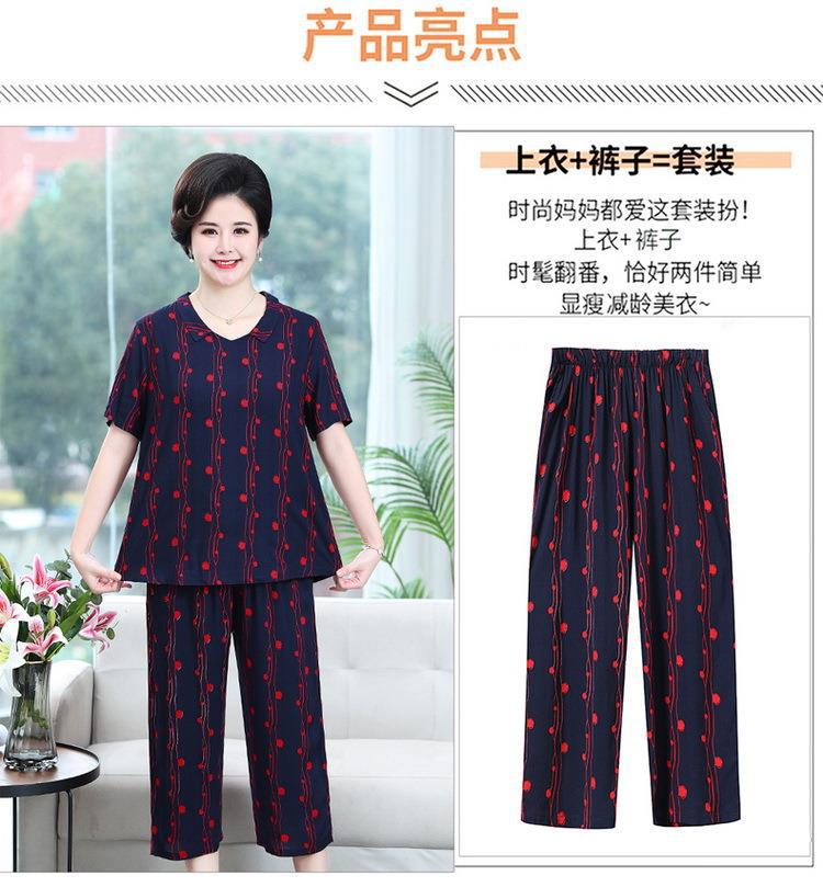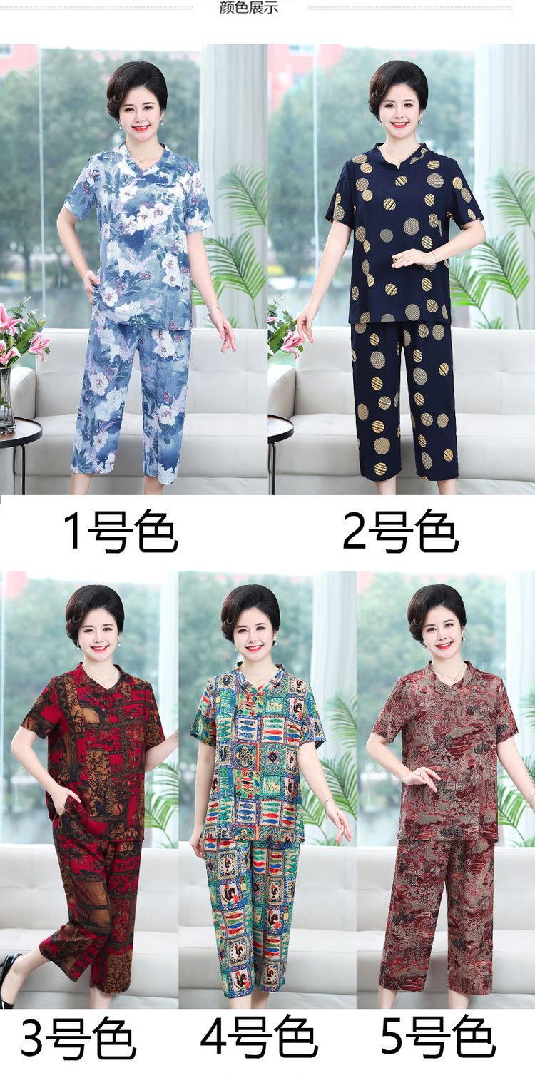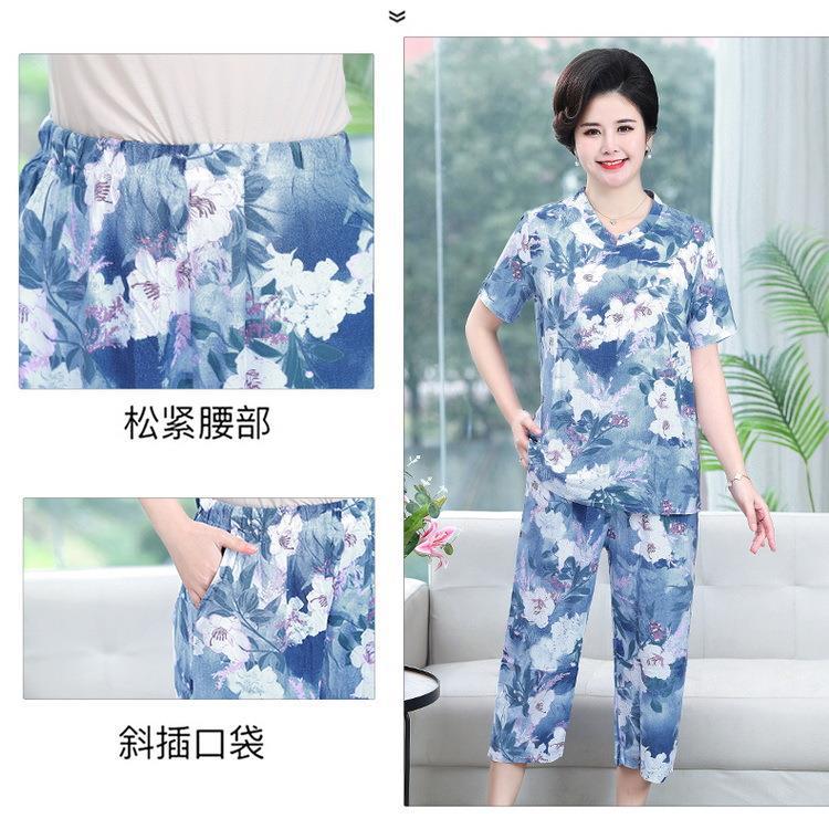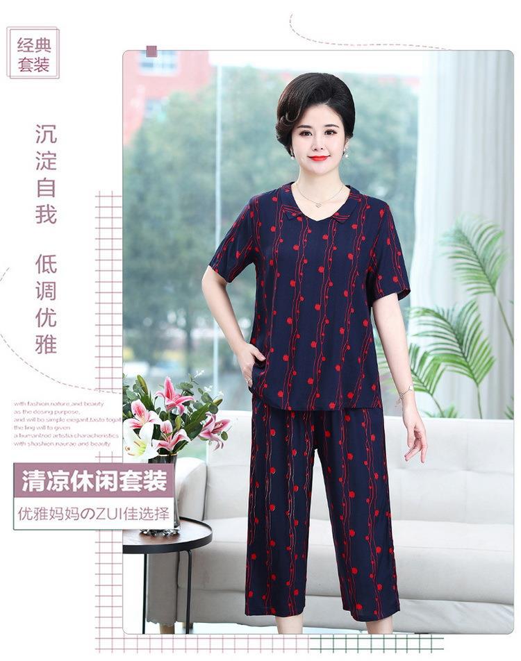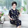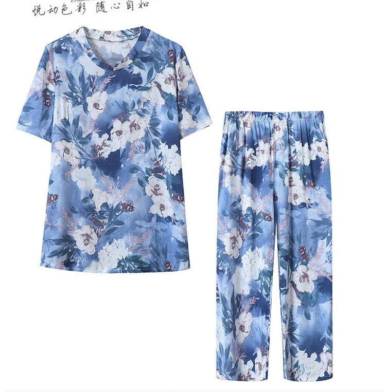 Pijama de Algodón Seda para Mujeres de Mediana Edad y Ancianas Algodón Artificial Verano Algodón Seda Traje de Manga Corta Talla Grande Dos Piezas Ropa para el Hogar Delgada