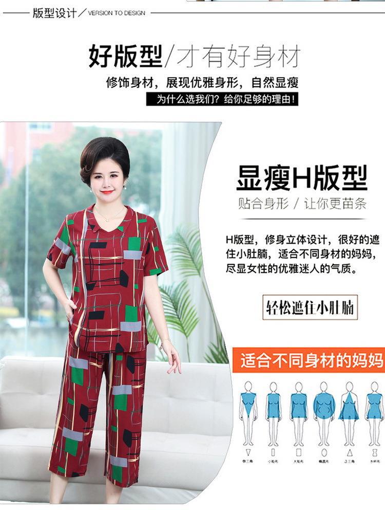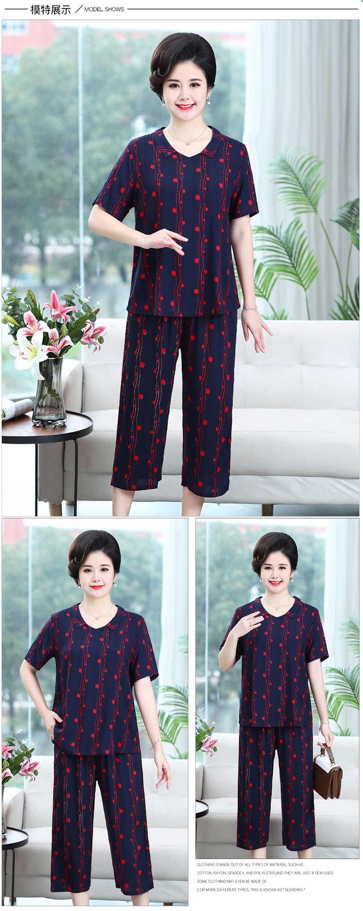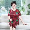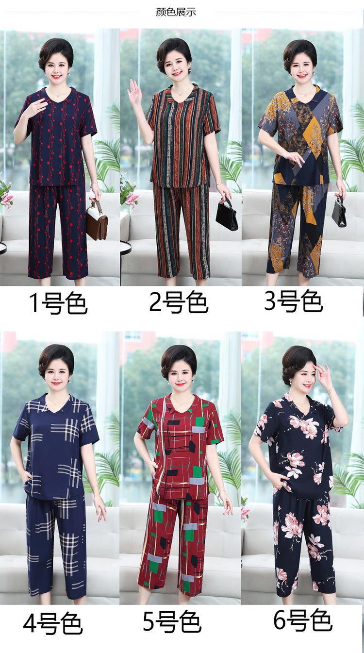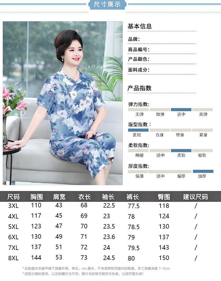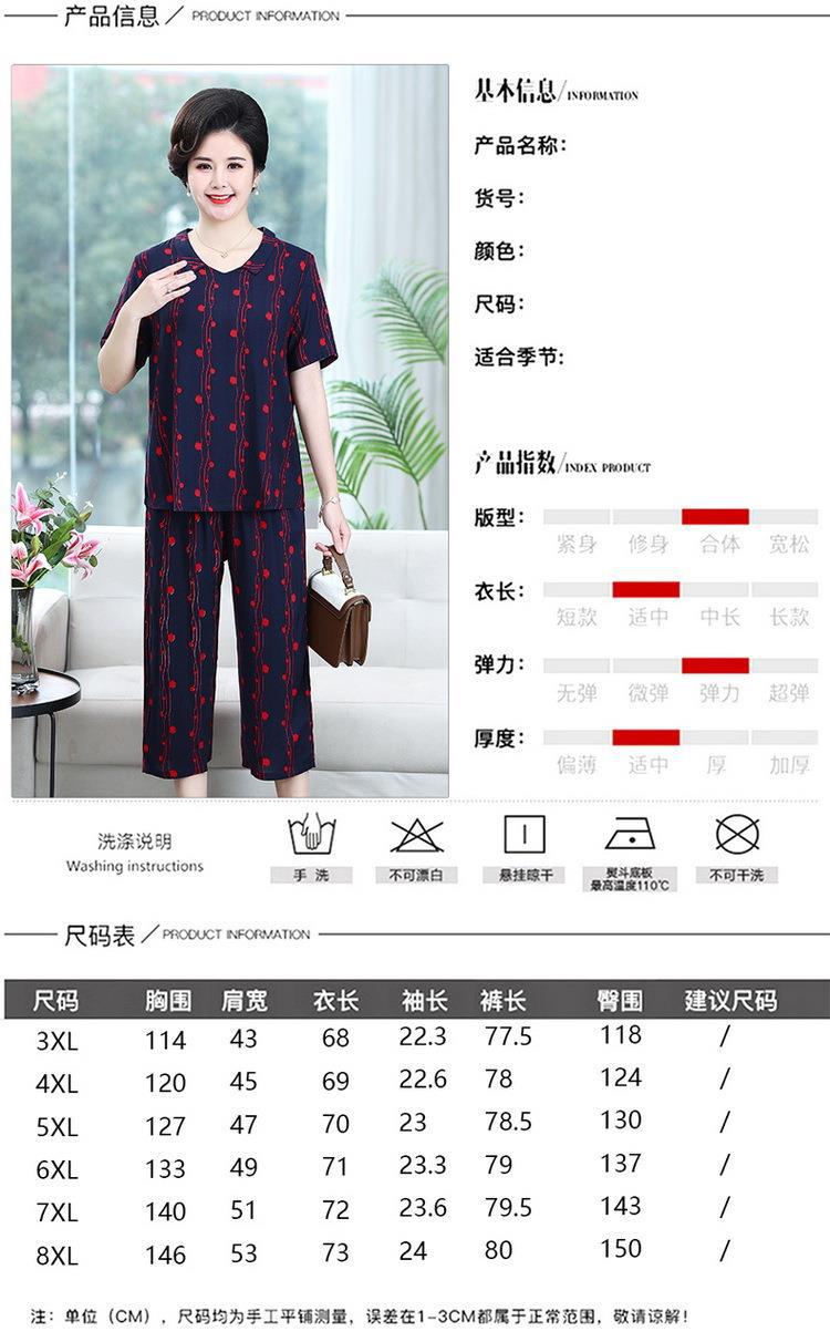 Pijama de Algodón Seda para Mujeres de Mediana Edad y Ancianas Algodón Artificial Verano Algodón Seda Traje de Manga Corta Talla Grande Dos Piezas Ropa para el Hogar Delgada