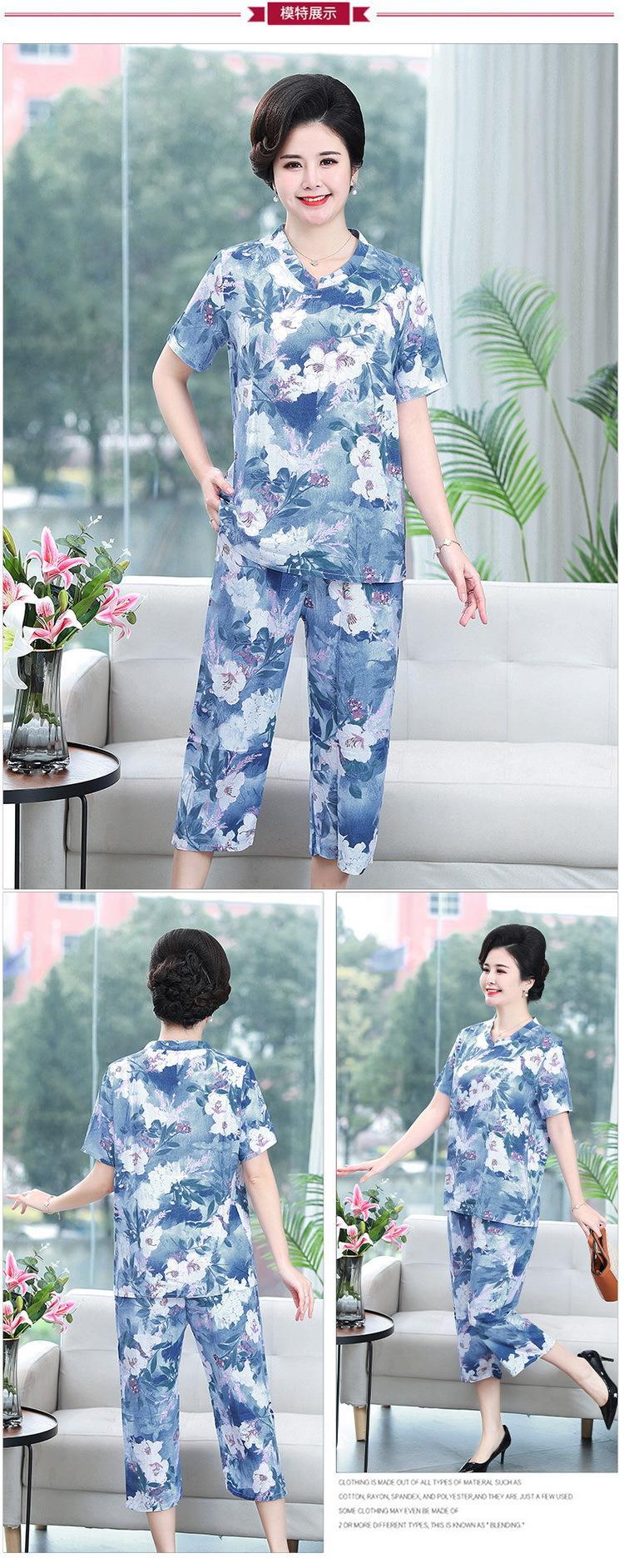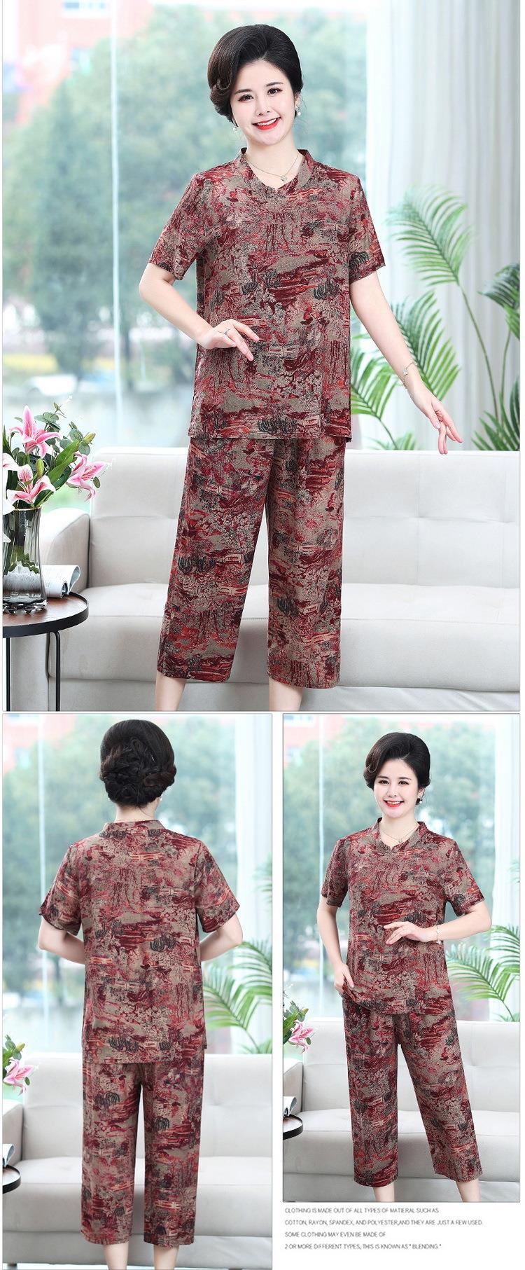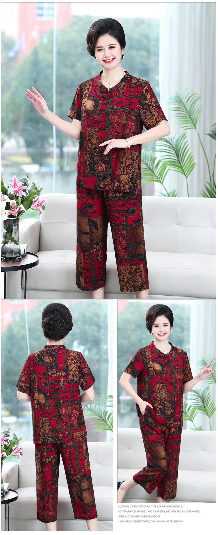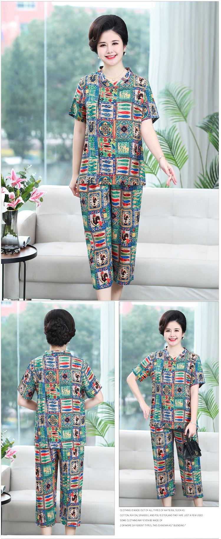 Pijama de Algodón Seda para Mujeres de Mediana Edad y Ancianas Algodón Artificial Verano Algodón Seda Traje de Manga Corta Talla Grande Dos Piezas Ropa para el Hogar Delgada