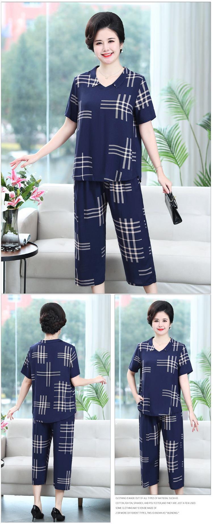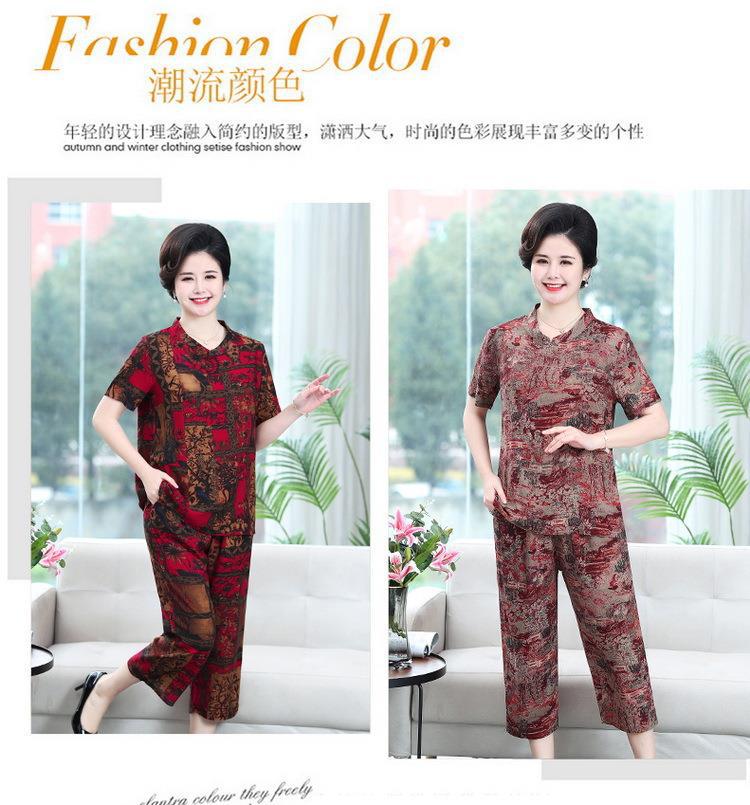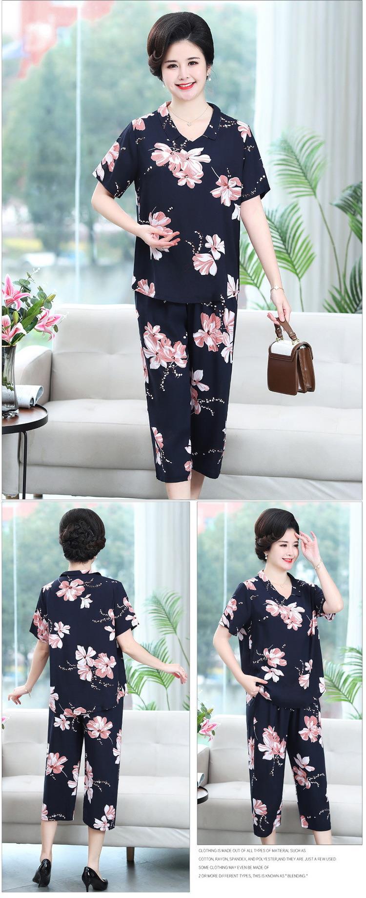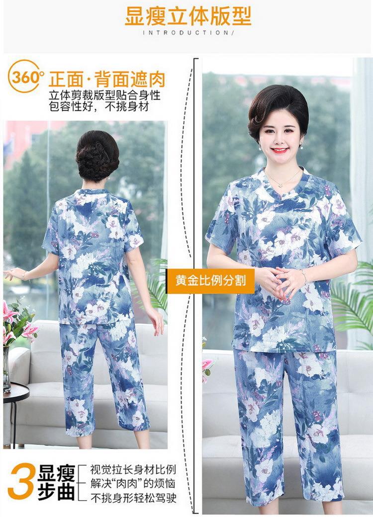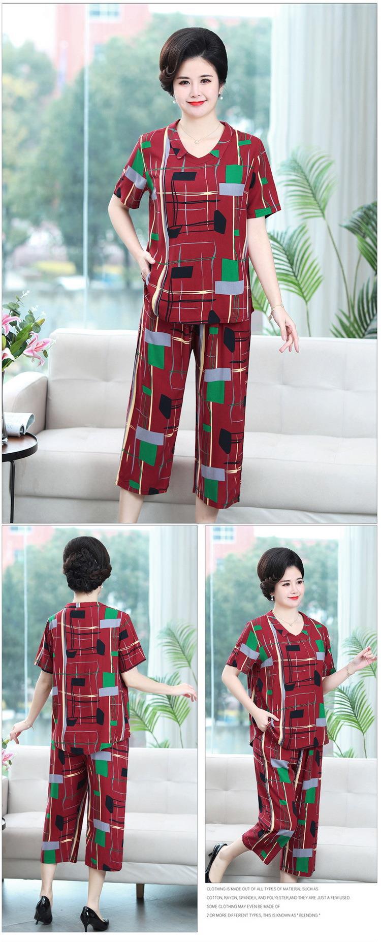 Pijama de Algodón Seda para Mujeres de Mediana Edad y Ancianas Algodón Artificial Verano Algodón Seda Traje de Manga Corta Talla Grande Dos Piezas Ropa para el Hogar Delgada