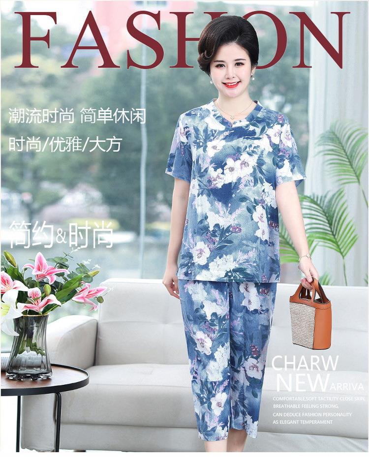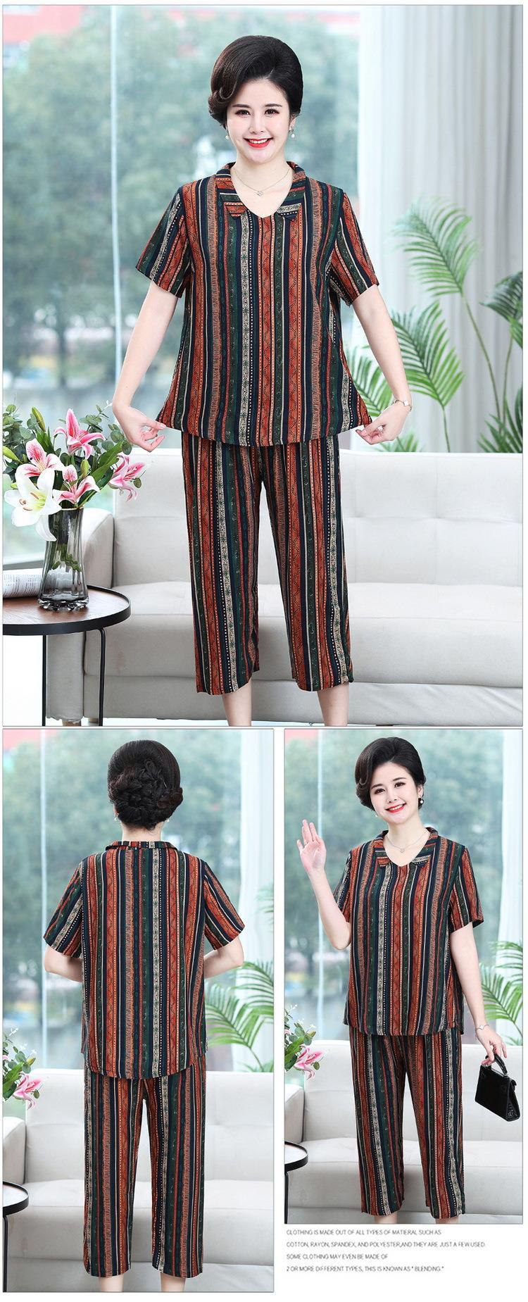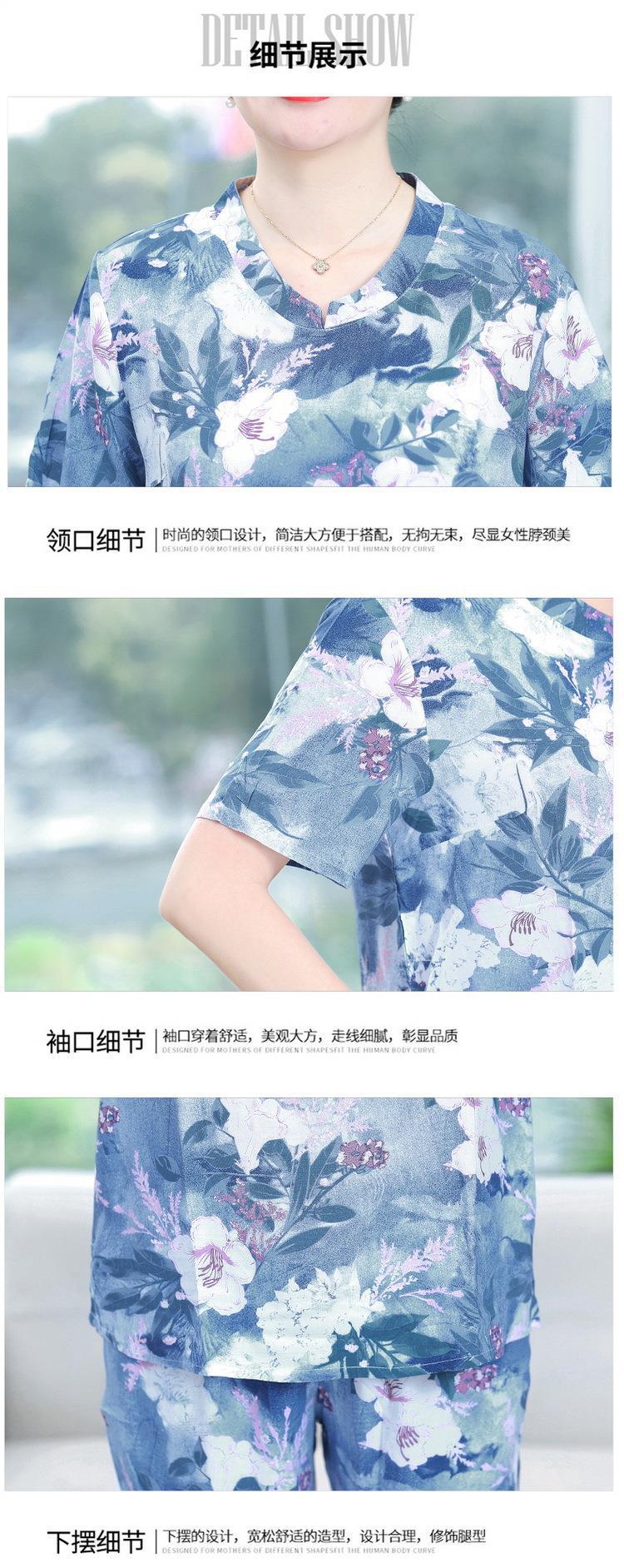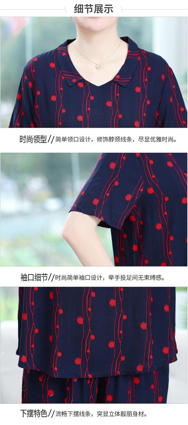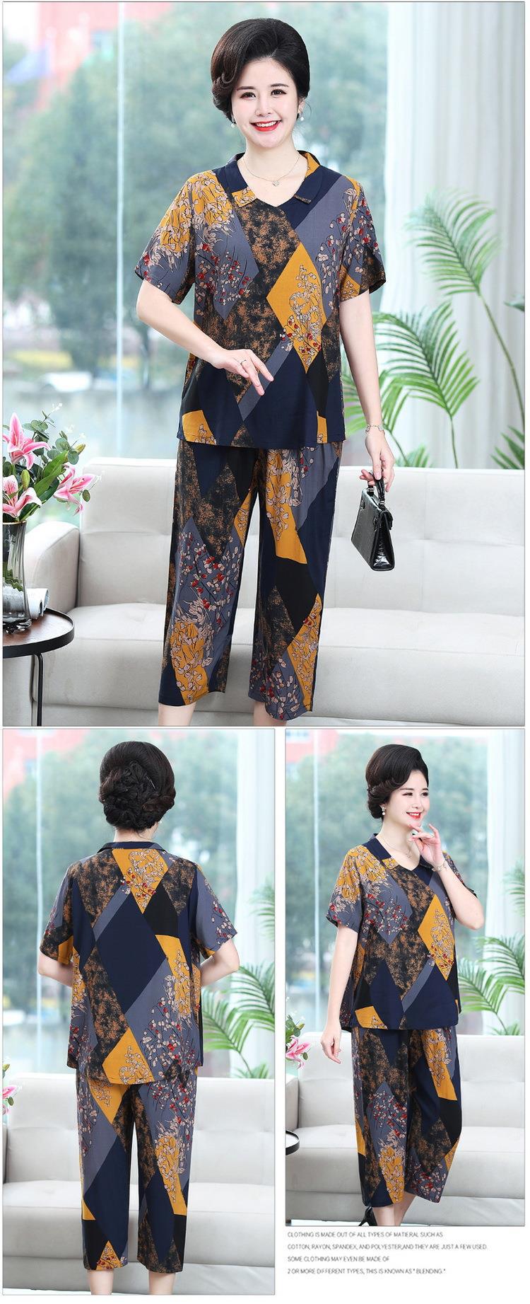 Pijama de Algodón Seda para Mujeres de Mediana Edad y Ancianas Algodón Artificial Verano Algodón Seda Traje de Manga Corta Talla Grande Dos Piezas Ropa para el Hogar Delgada