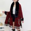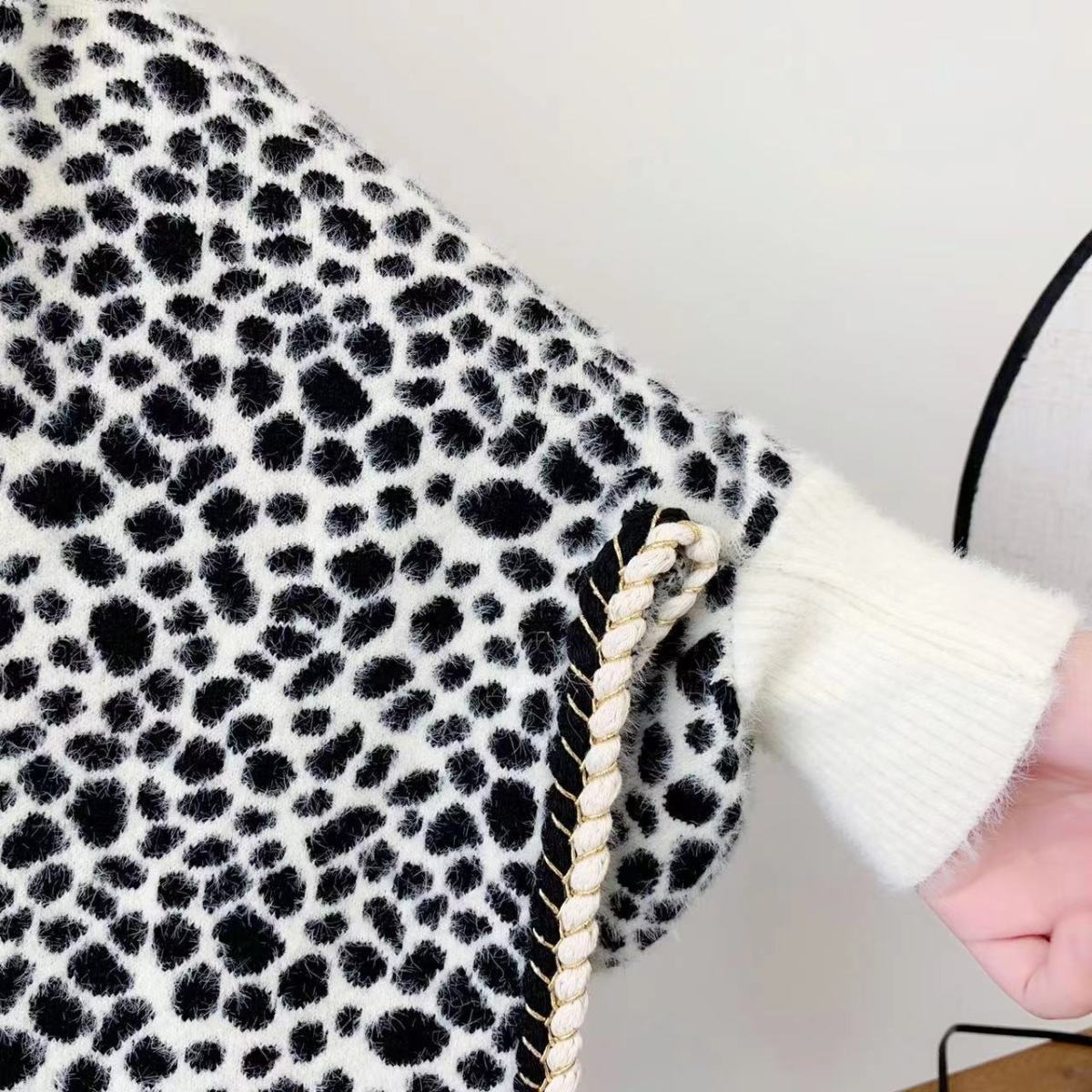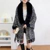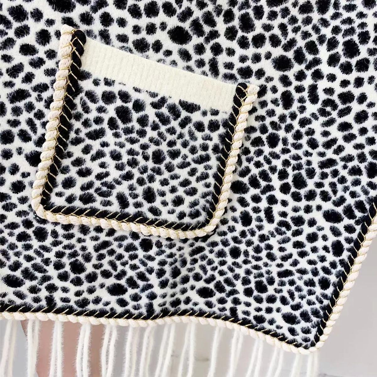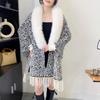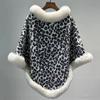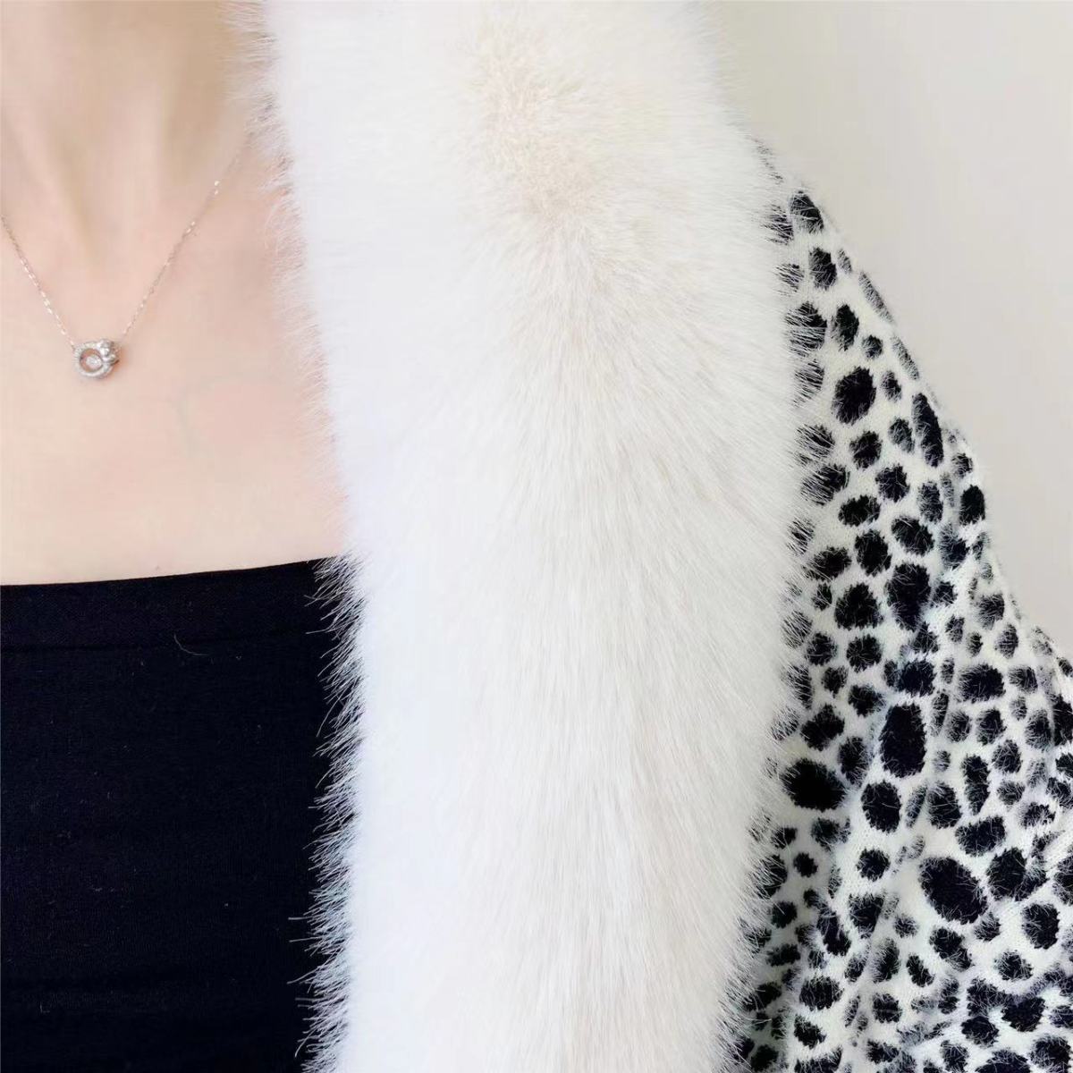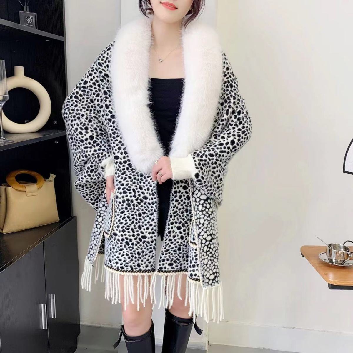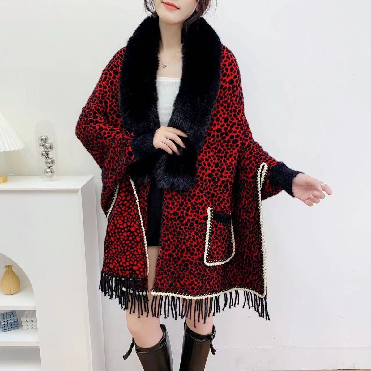 Chal de piel sintética de visón con mangas anudadas y estampado de leopardo, estilo capa, bufanda, estilo Chanel con bolsillo, abrigo suéter holgado para mujer