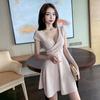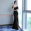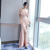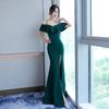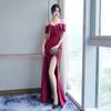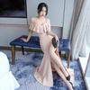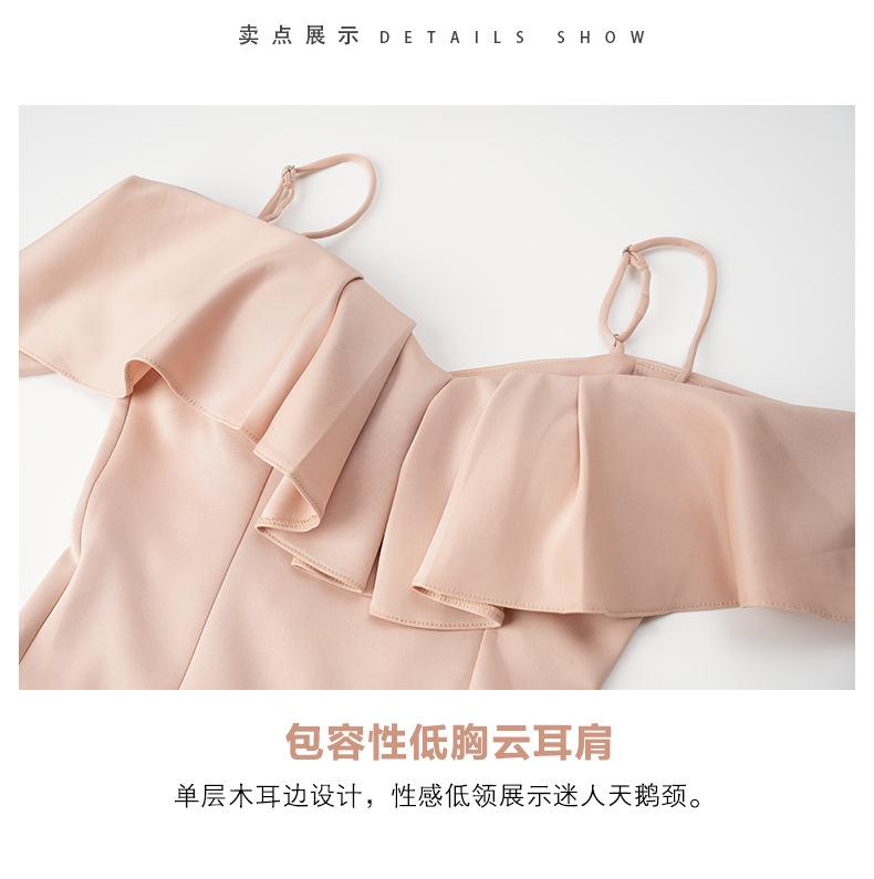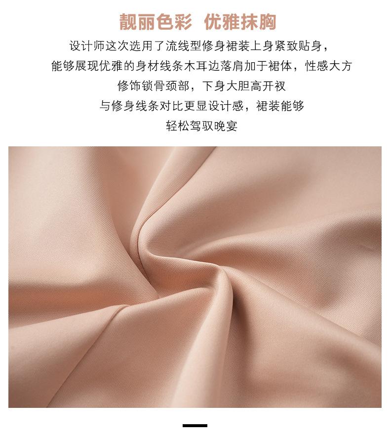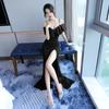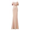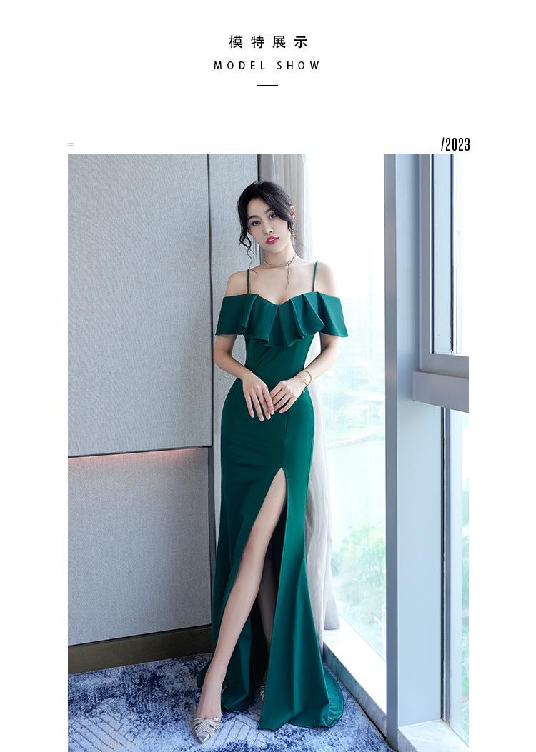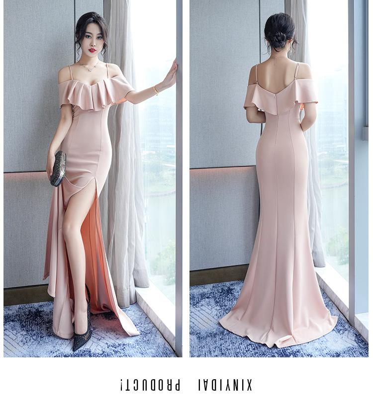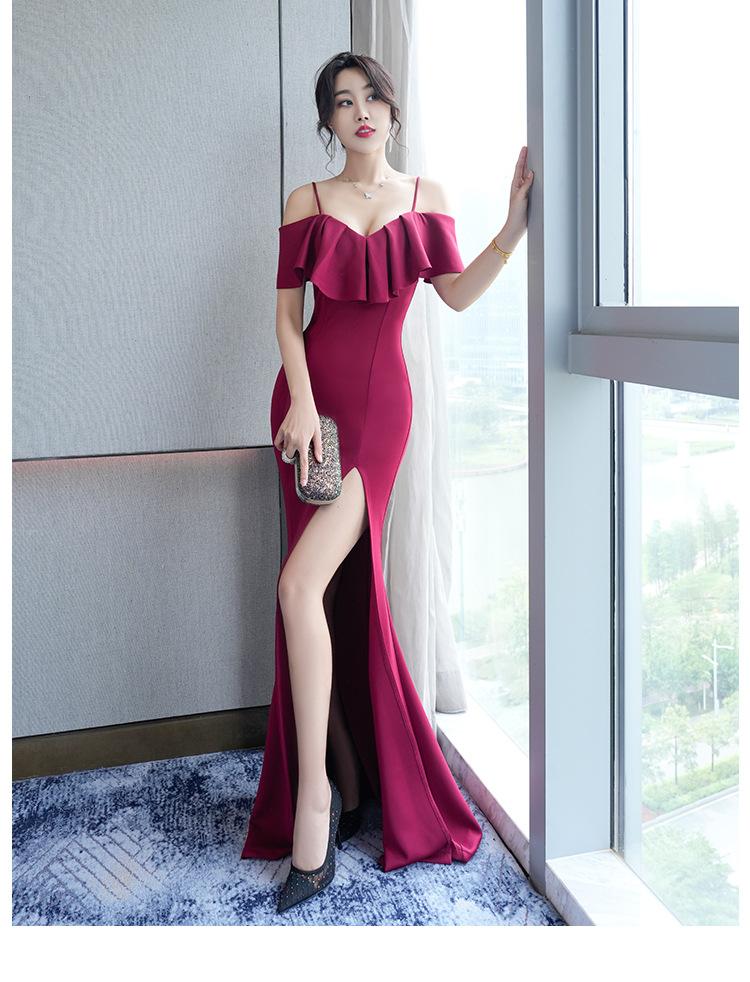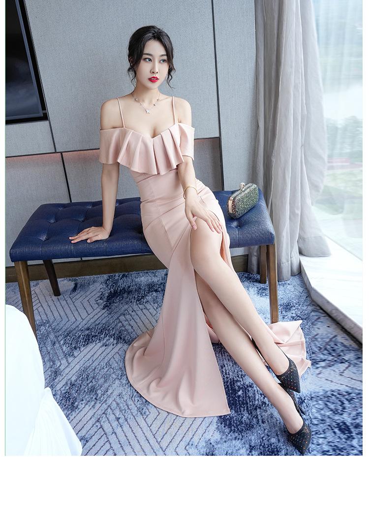 Sexy Tirantes Escote Bajo Un Hombro Manga Hoja de Loto Falda Larga Ajustada Abertura Alta Club Nocturno Cóctel Fiesta Modelo Brindis Vestido de Noche