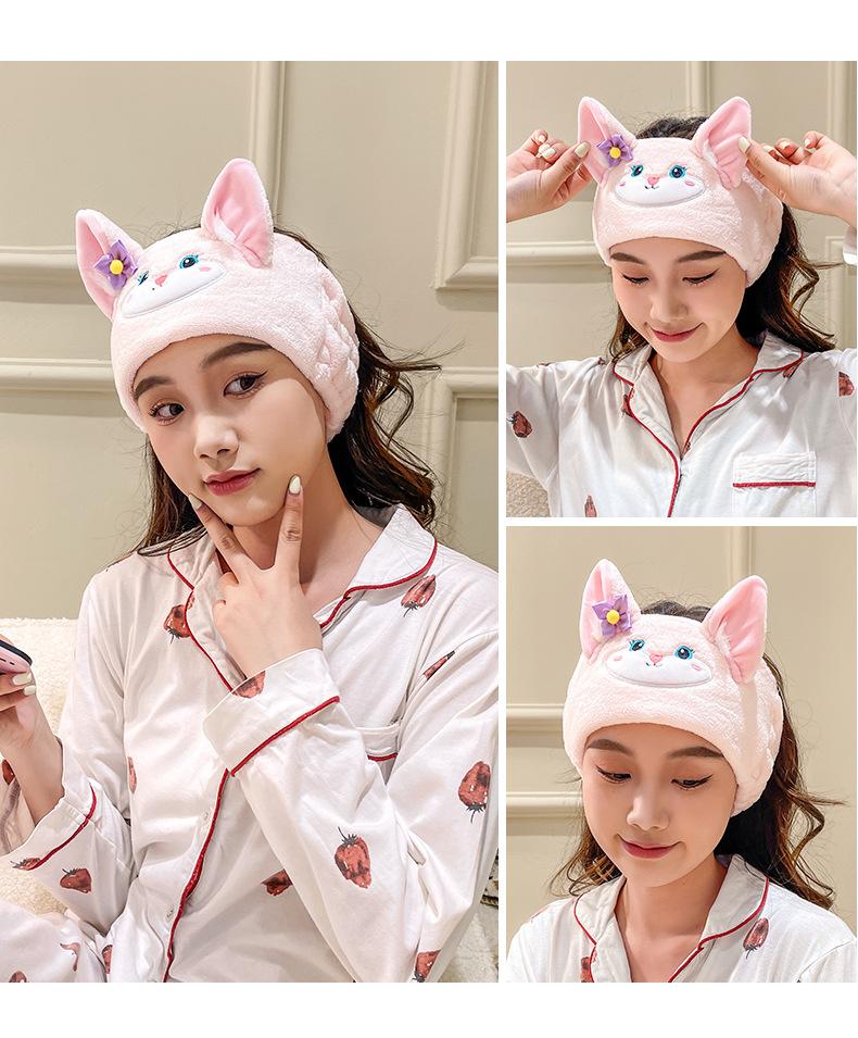 Campana caricatura lavado de cara banda para el cabello al por mayor niñas borde ancho banda para el cabello celebridad de internet orejas de gato lazo accesorios para el cabello de felpa