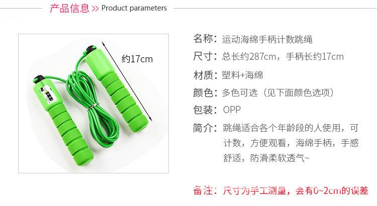 Nombre del producto: Cuerda para saltar con contador N.º de artículo: HD-8079 Material del producto: plástico + esponja. Peso del producto: 98g Peso de lanzamiento: 122 g Cantidad de embalaje: 200 piezas Tamaño de la caja: 71 x 54 x 32 cm