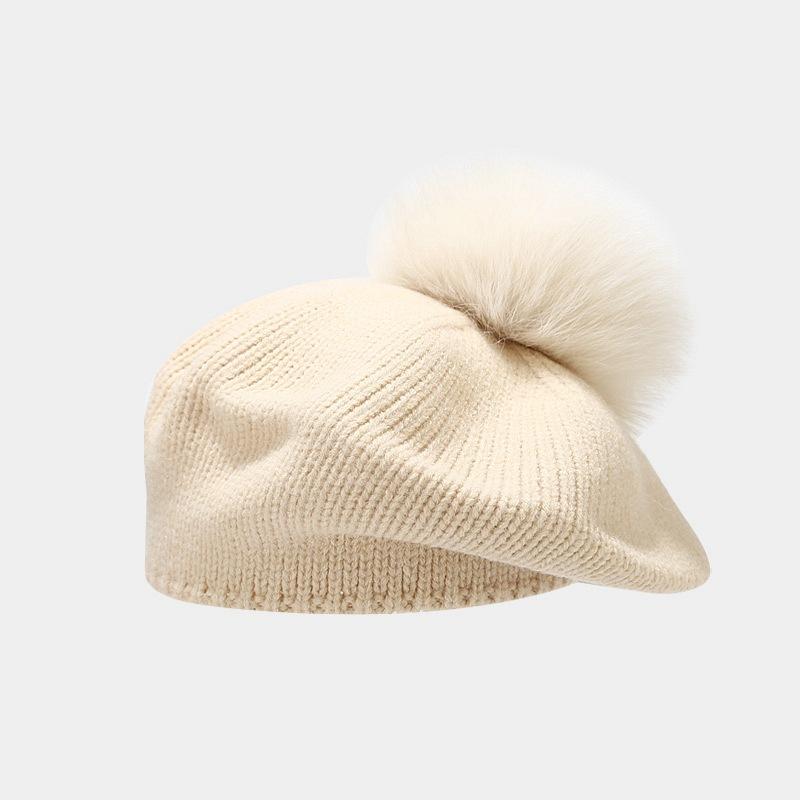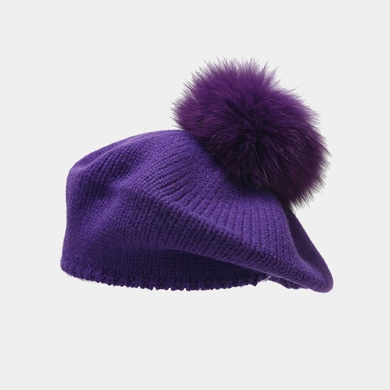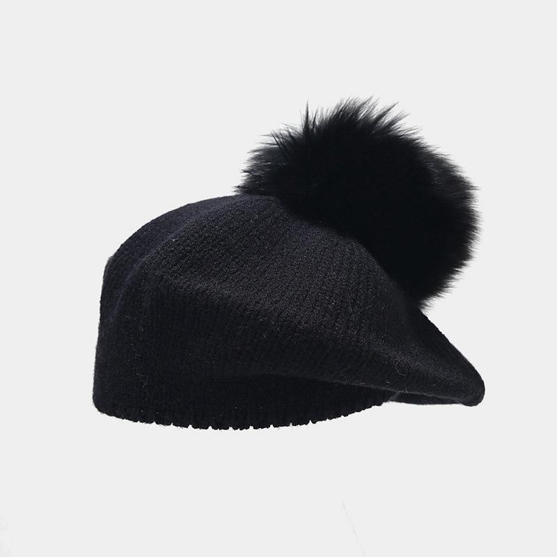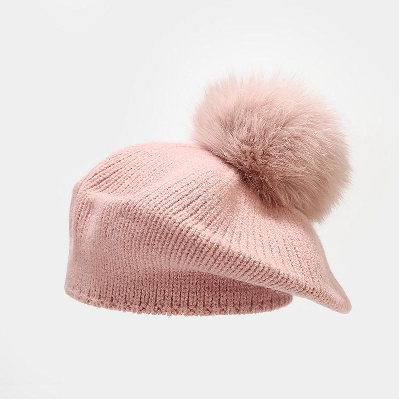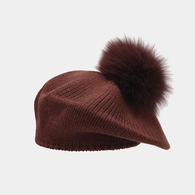 Versión coreana del nuevo gorro Bailey de punto con bola de piel de zorro para mujer, otoño e invierno, para exteriores, versátil, cálido, tipo boina, venta al por mayor