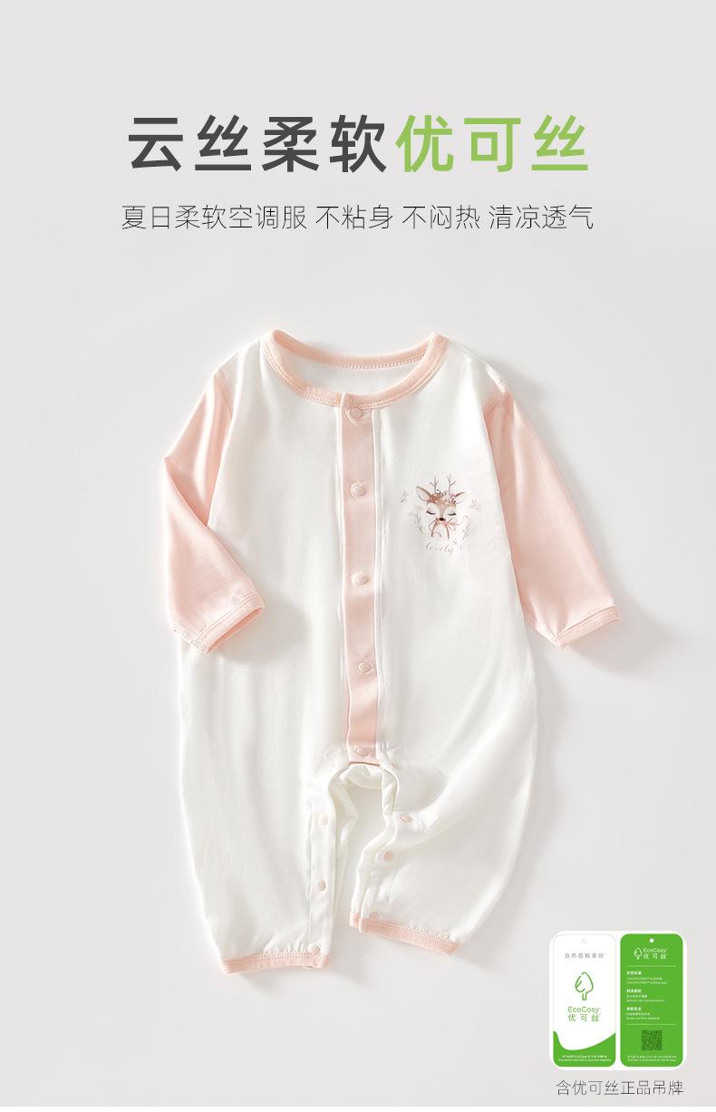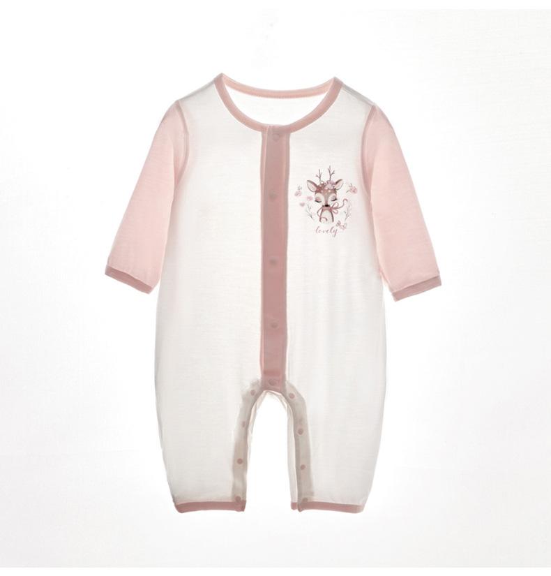 Ropa de bebé primavera y verano fina manga larga Youke seda sin hueso bebé aire acondicionado ropa pijamas bebé recién nacido mono