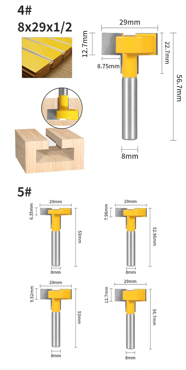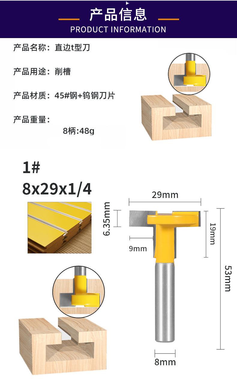 Fresa de corte en forma de T de borde recto, vástago 8, diámetro de 29 mm, fresa de ranurado, fresa de corte recto en forma de T, fresa para carpintería