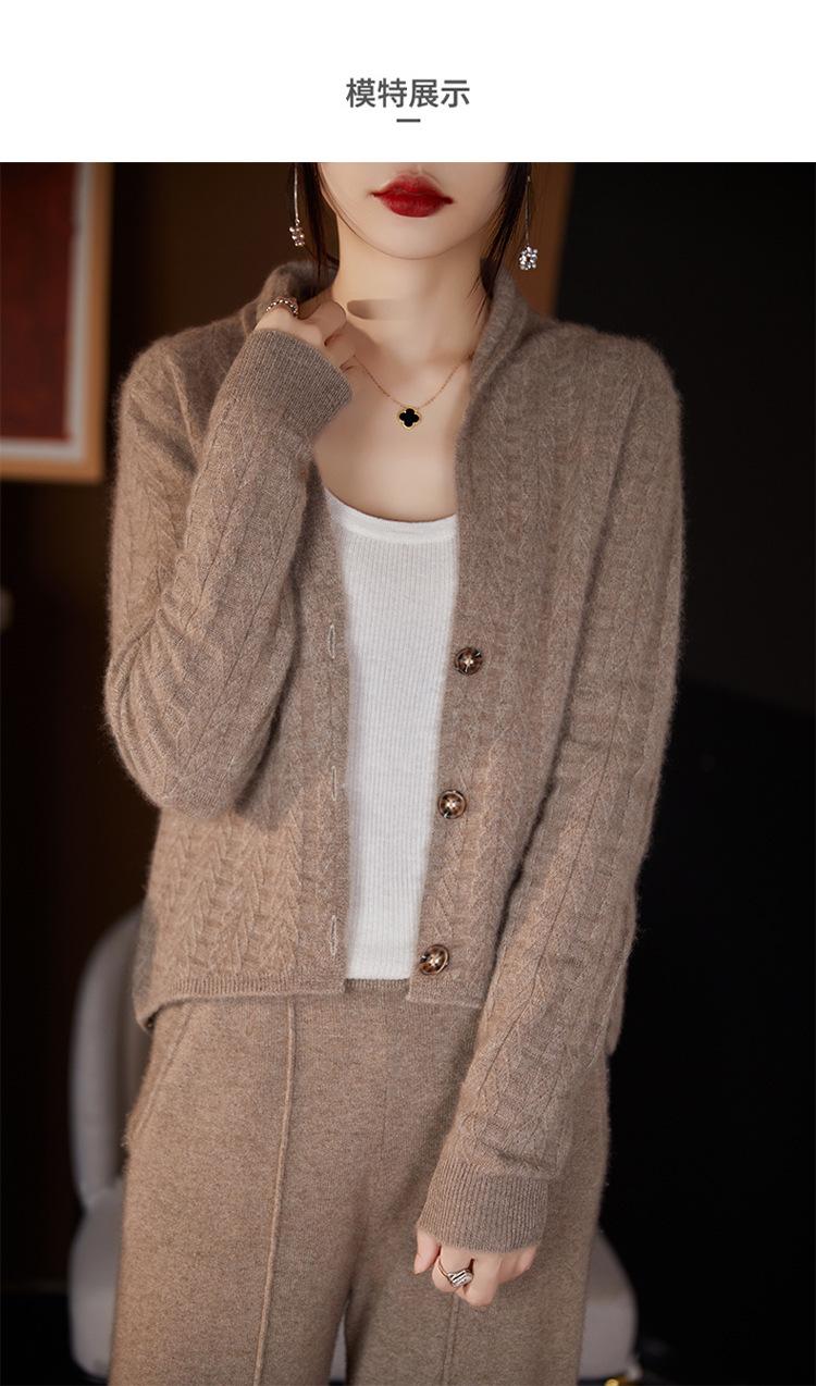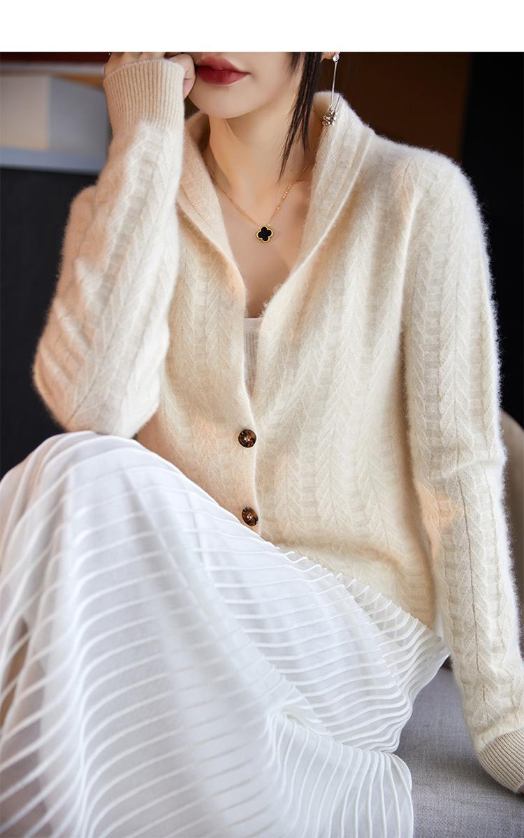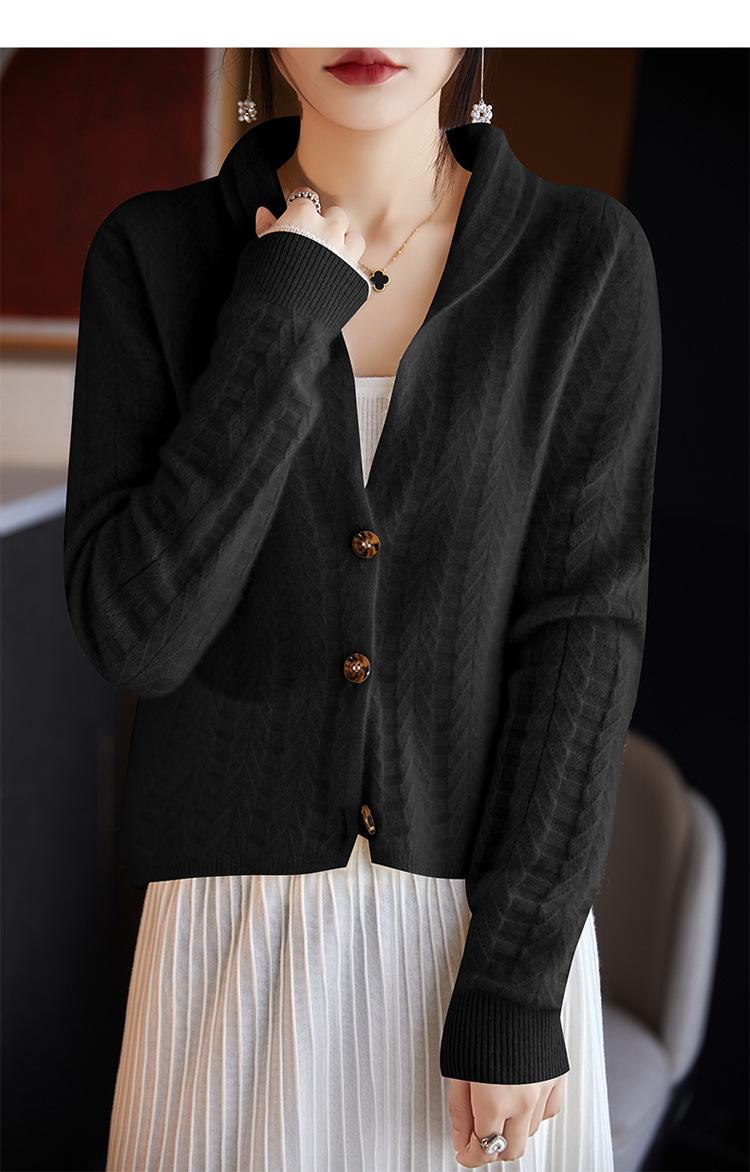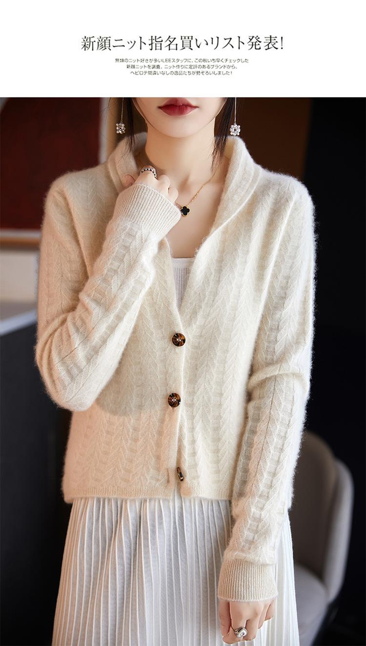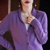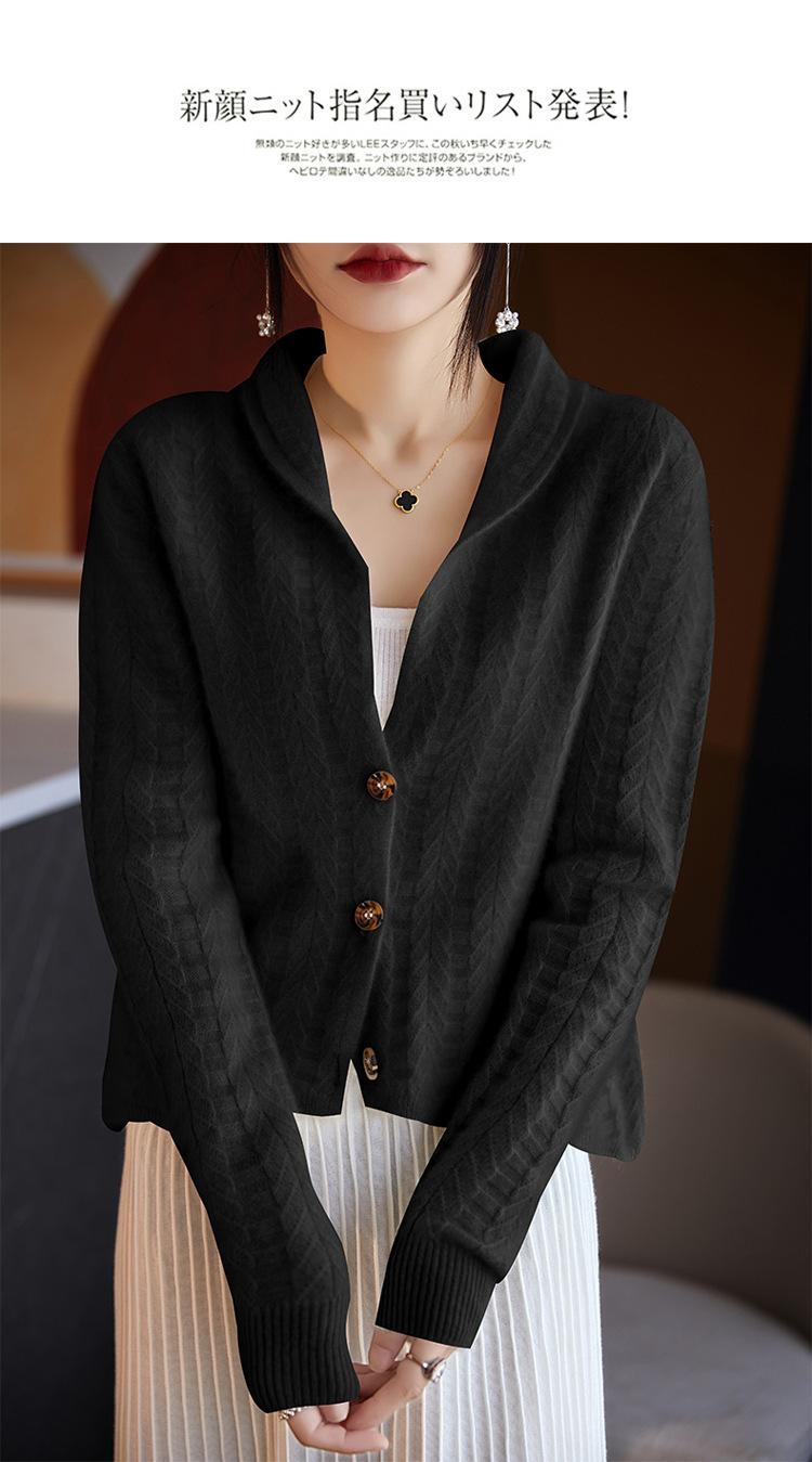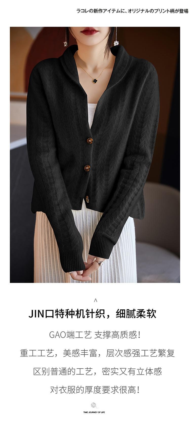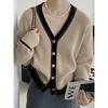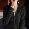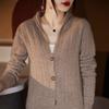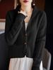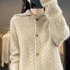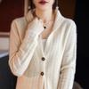 Cárdigan de punto de lana para otoño e invierno, nuevo, grueso, con cuello en V, sencillo, de color sólido, con diseño de jacquard de diamantes, holgado y adelgazante.