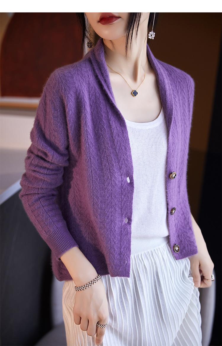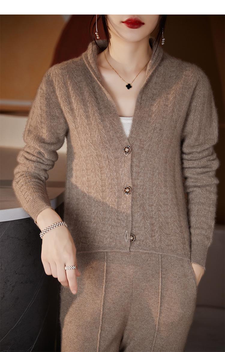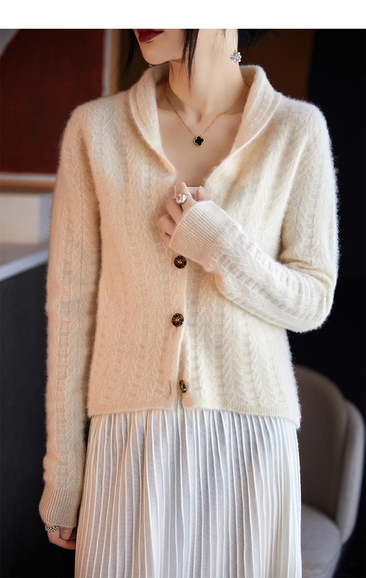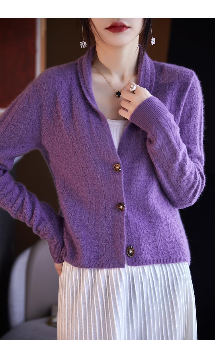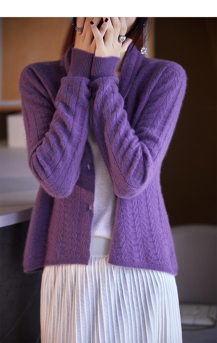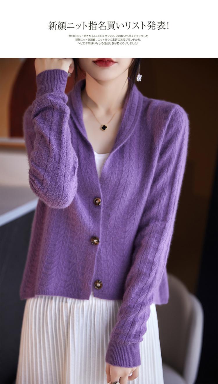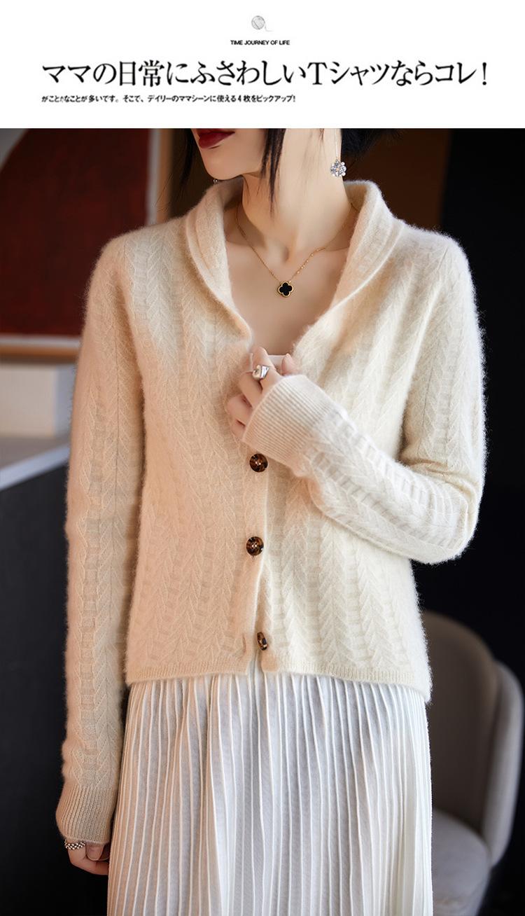 Cárdigan de punto de lana para otoño e invierno, nuevo, grueso, con cuello en V, sencillo, de color sólido, con diseño de jacquard de diamantes, holgado y adelgazante.