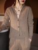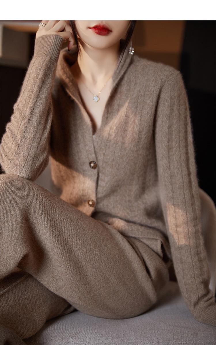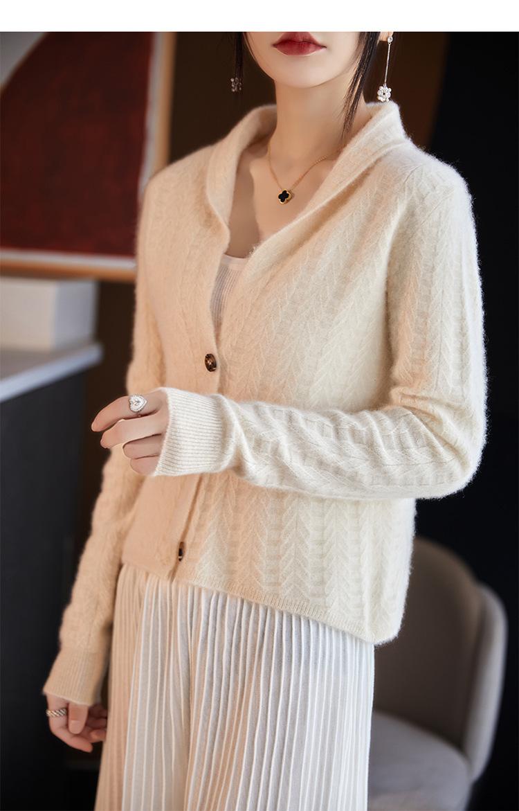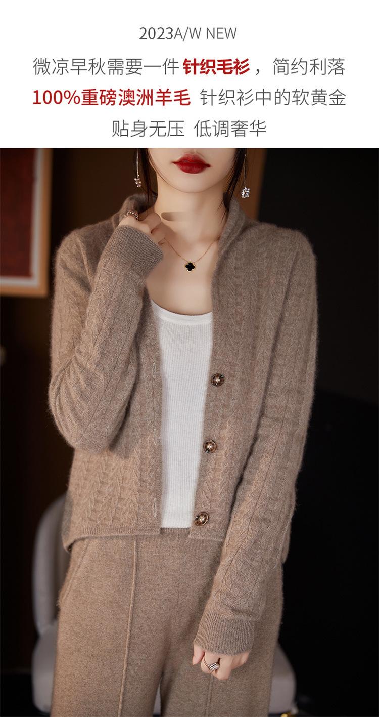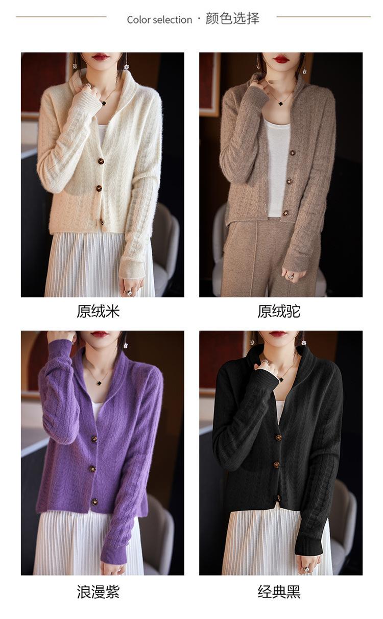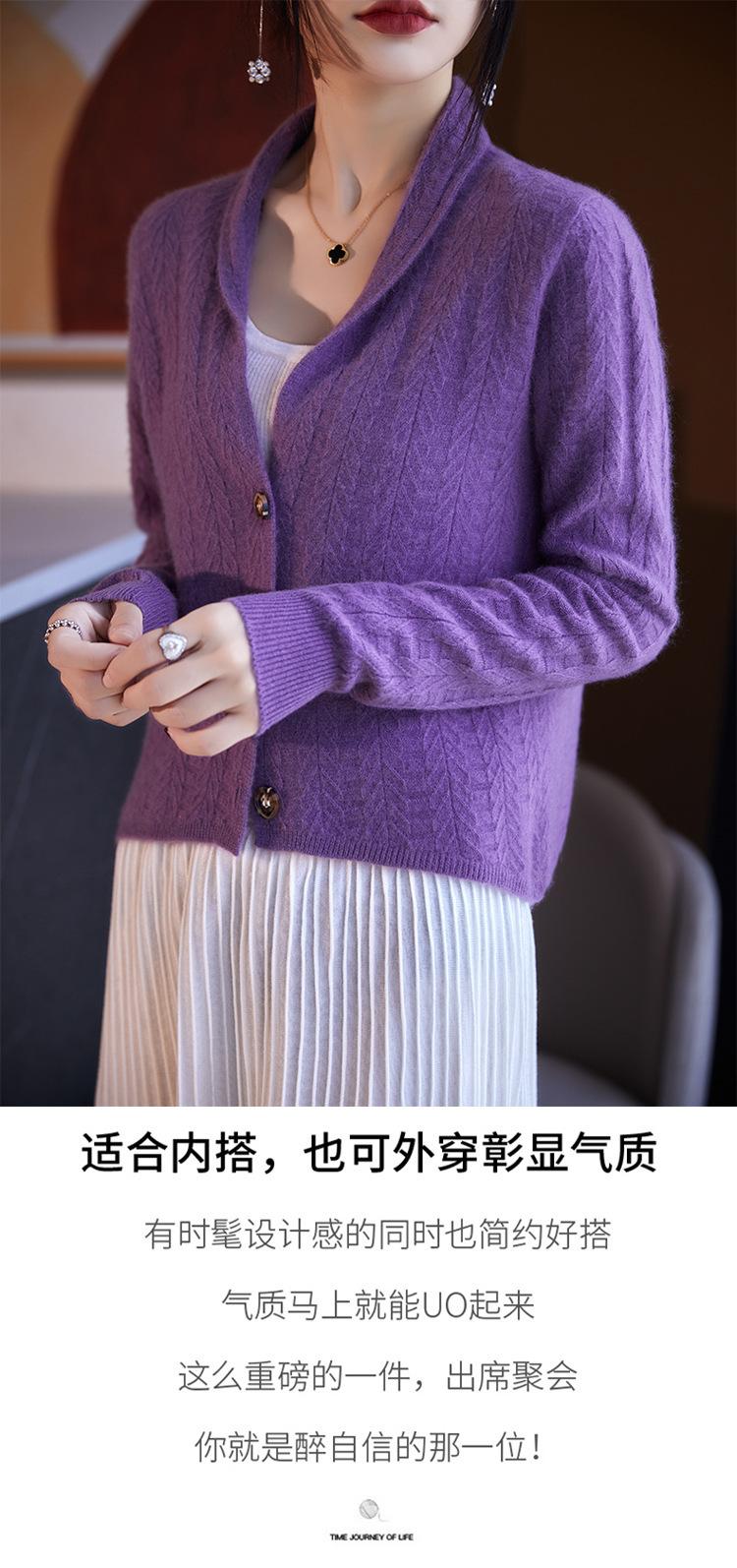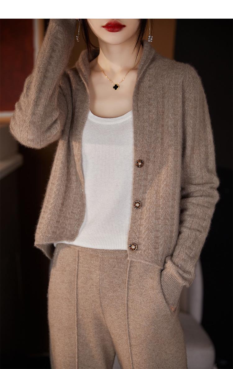 Cárdigan de punto de lana para otoño e invierno, nuevo, grueso, con cuello en V, sencillo, de color sólido, con diseño de jacquard de diamantes, holgado y adelgazante.