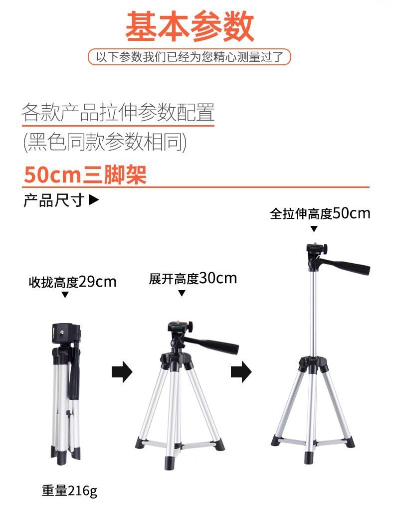 65cm silver aluminum alloy tripod + U-shaped clip + cloth bag, 110cm silver aluminum alloy tripod + U-shaped c...