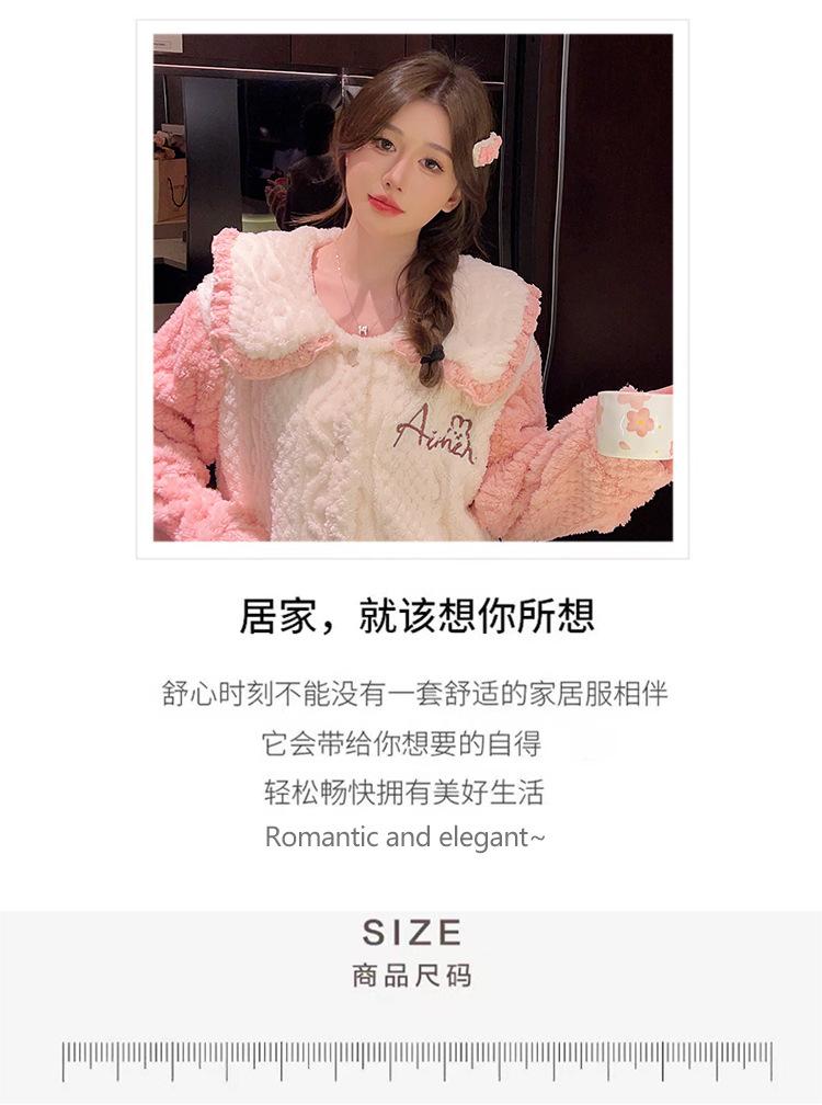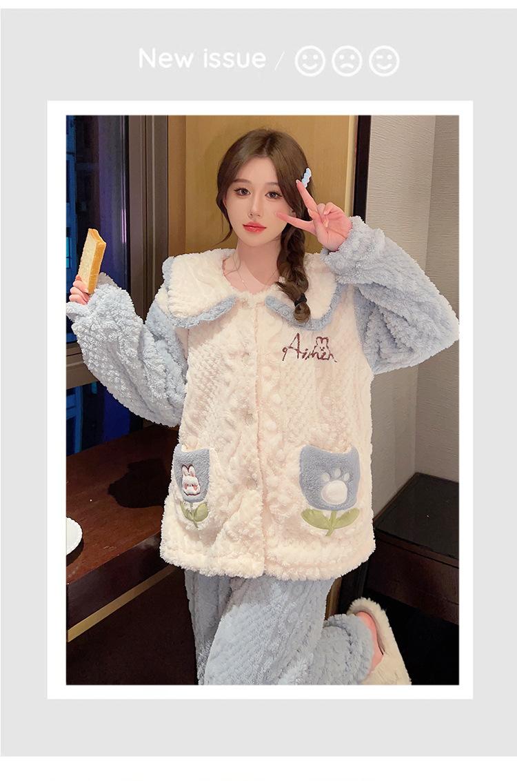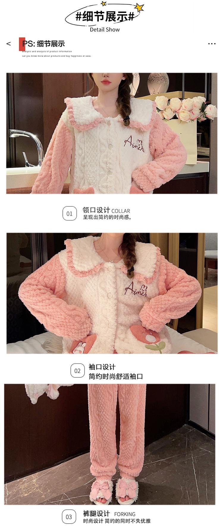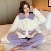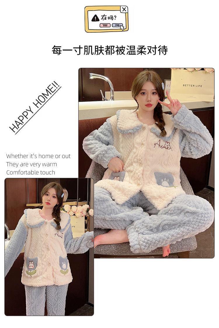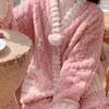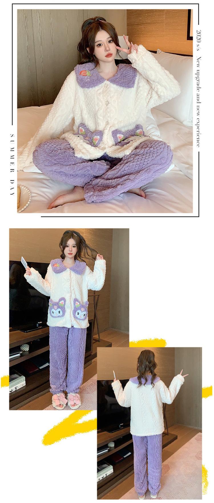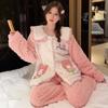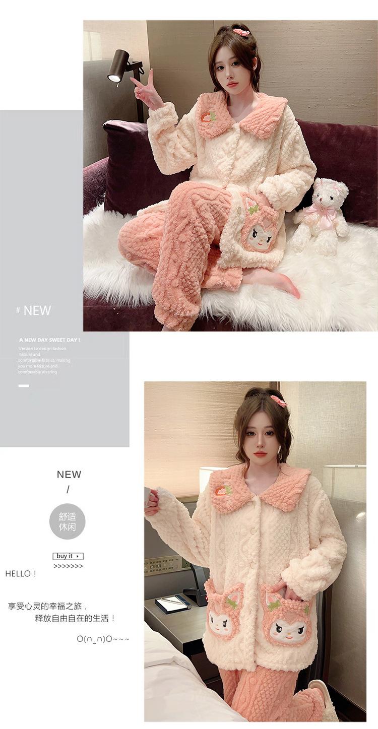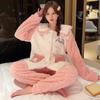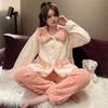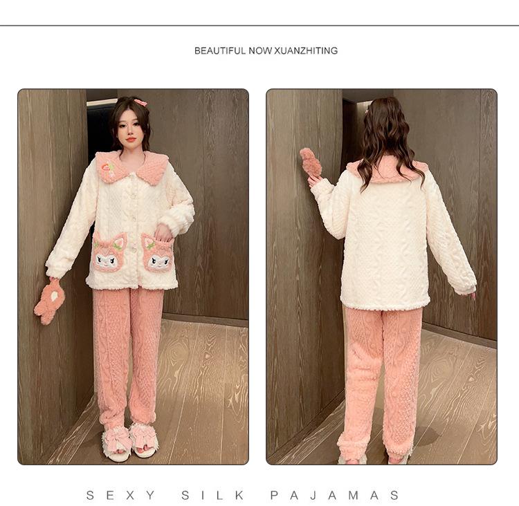 Pijama de otoño e invierno para mujer, felpa dulce, cárdigan, pantalones de manga larga, forro polar de coral, talla grande para chica gordita, ropa para el hogar